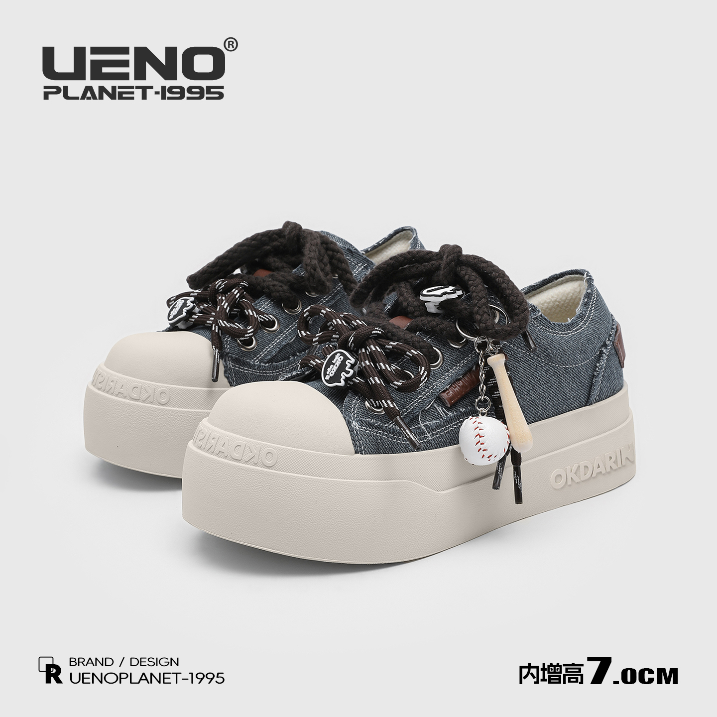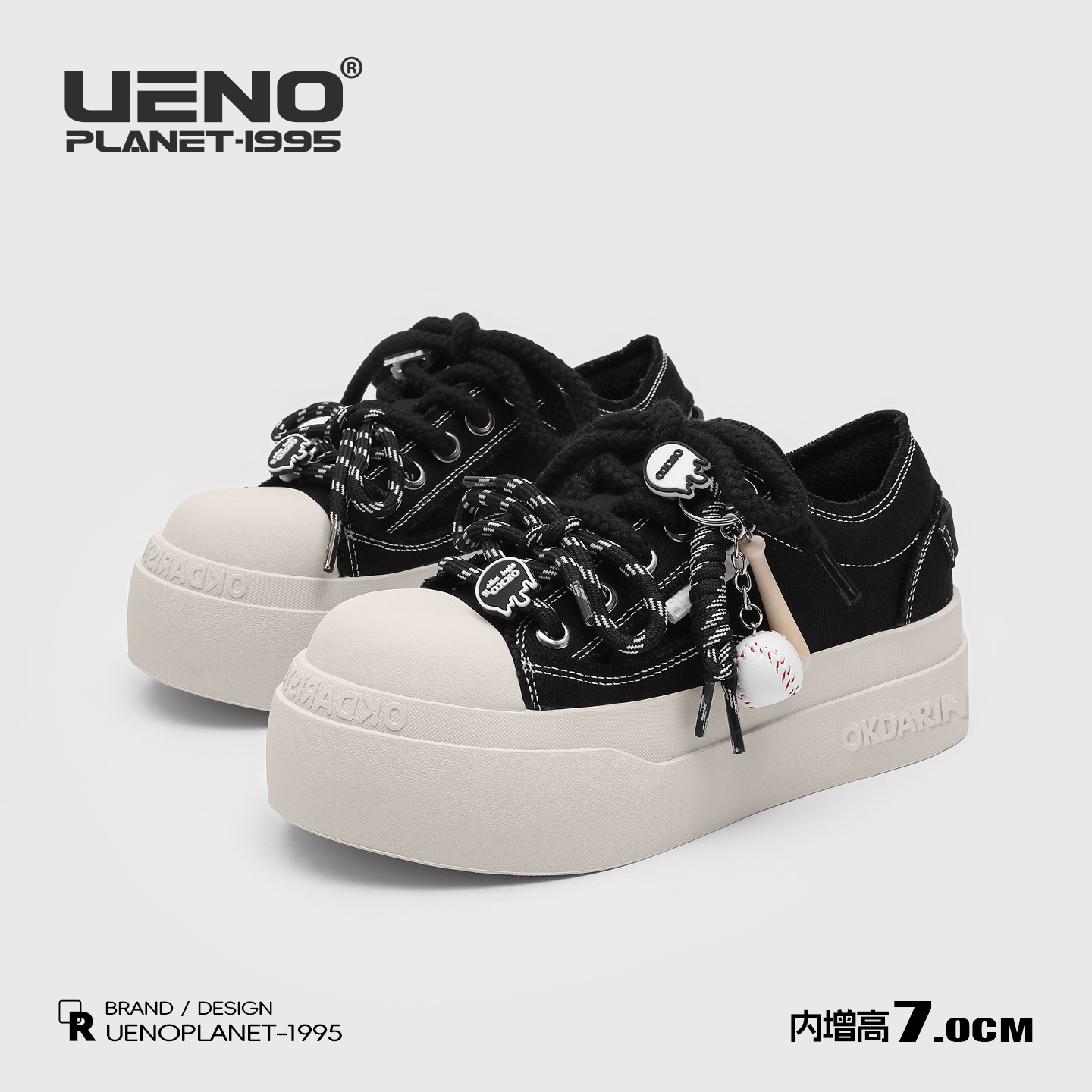 UENO American black and white platform shoes women's breathable big-toe canvas shoes height-increasing casual shoes men's versatile sports shoes