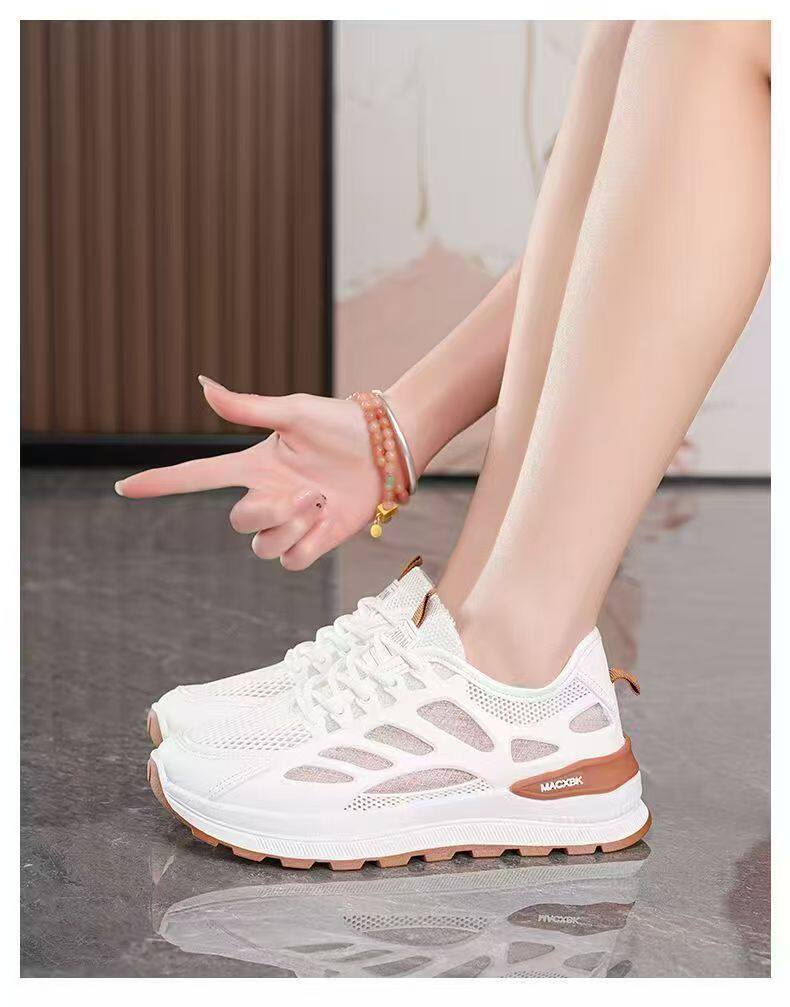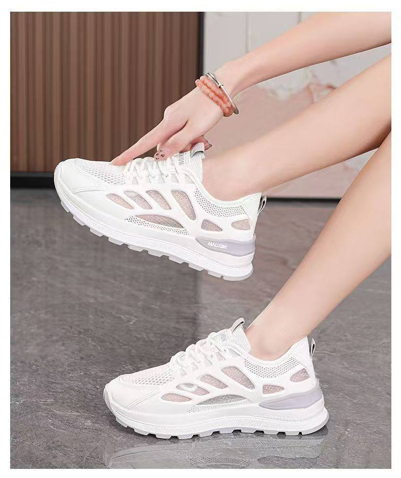 Summer large mesh breathable and deodorant women's shoes 2025 ultra-soft sole anti-slip wear-resistant casual shoes ultra-light layering women's tennis shoes