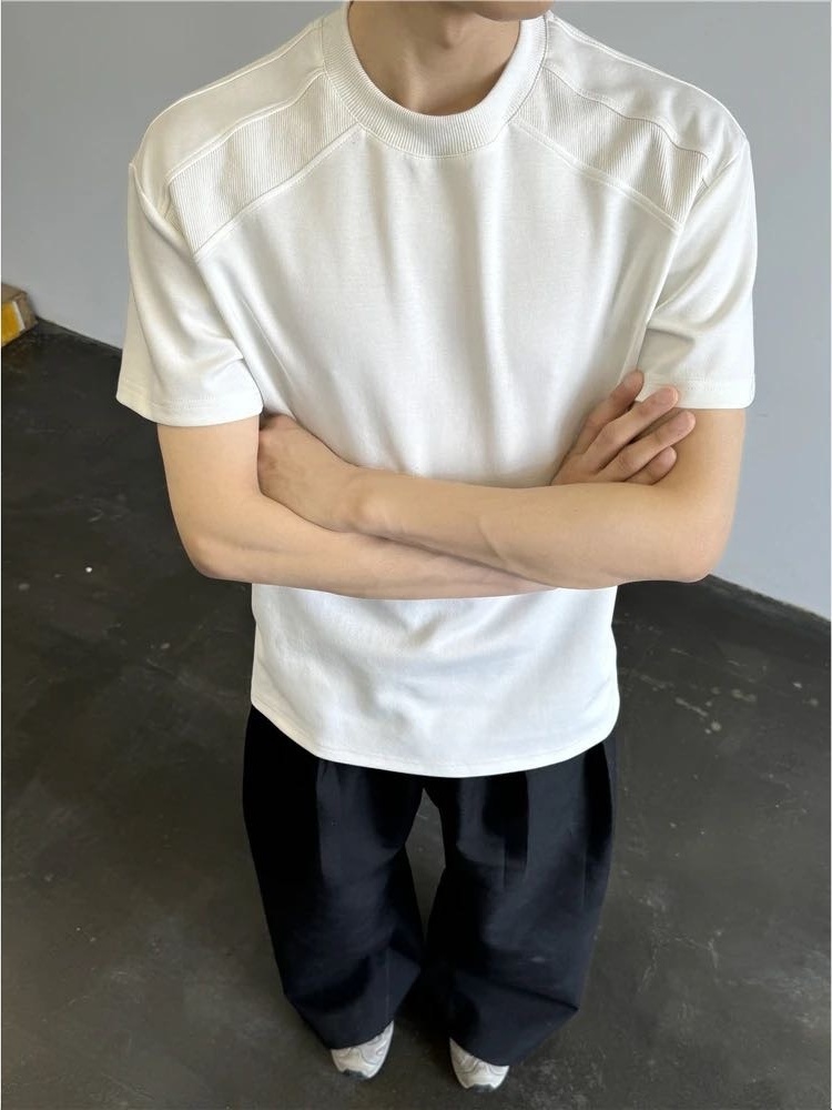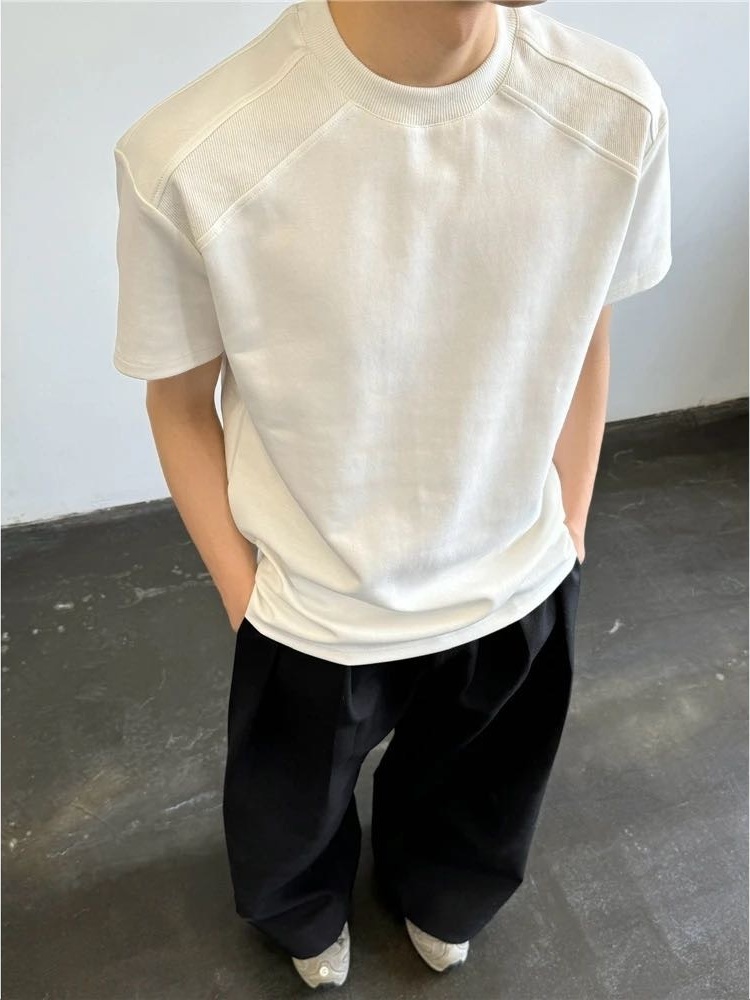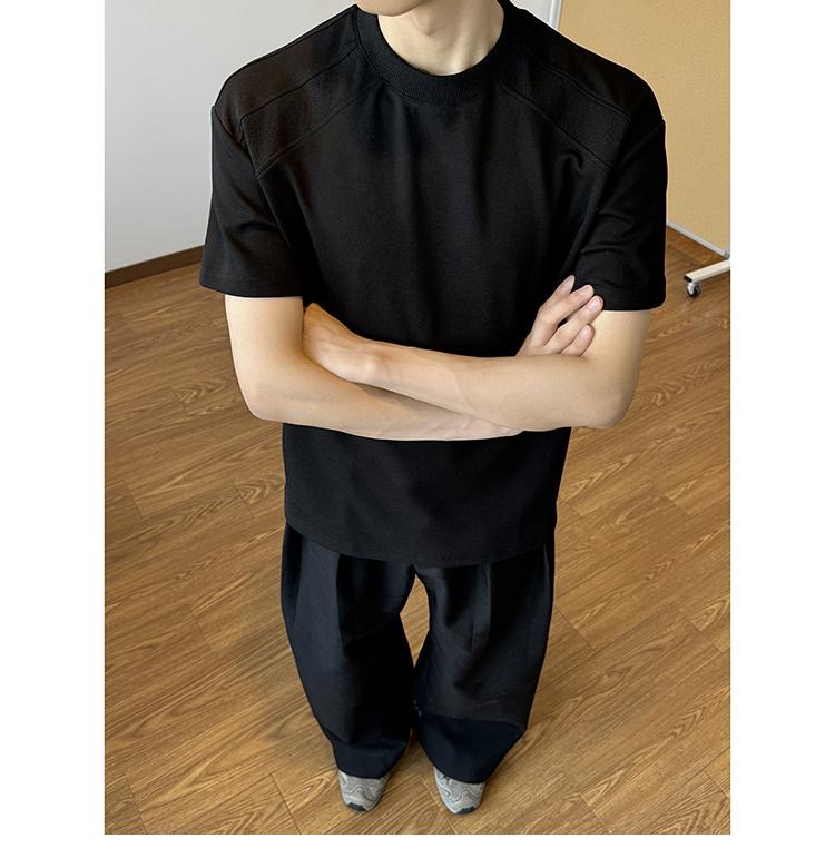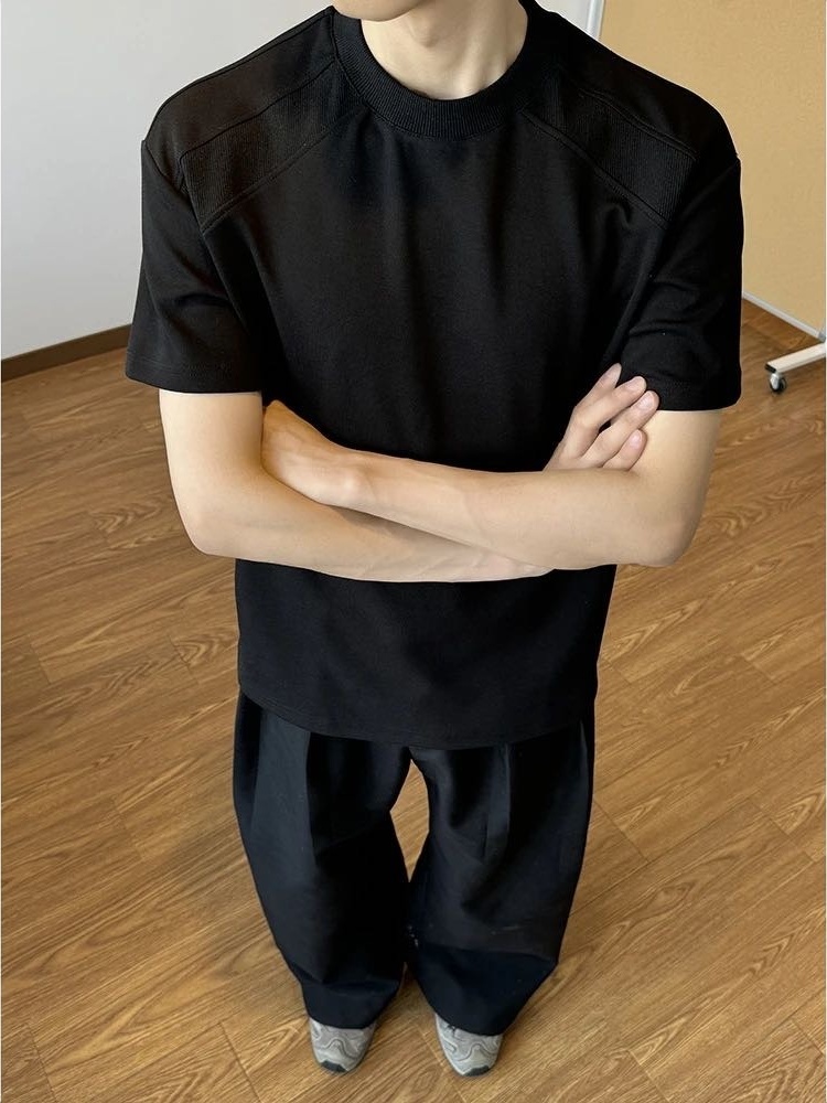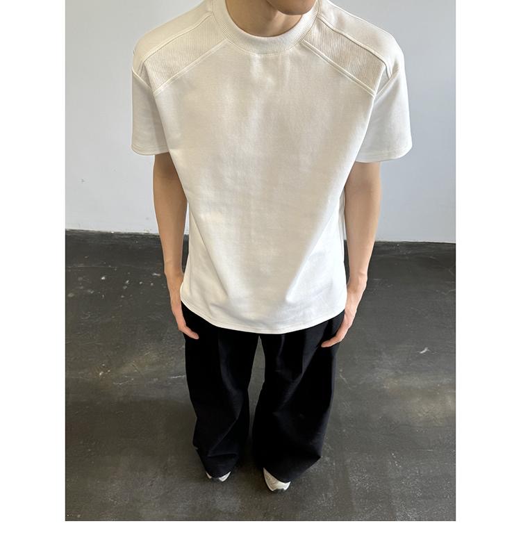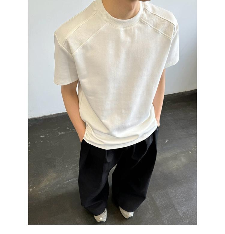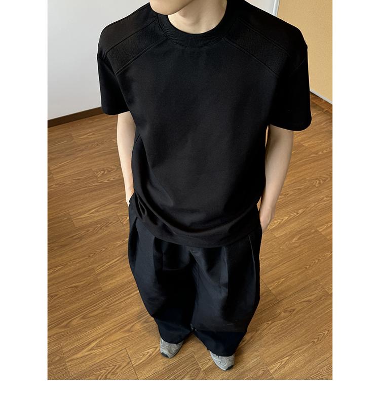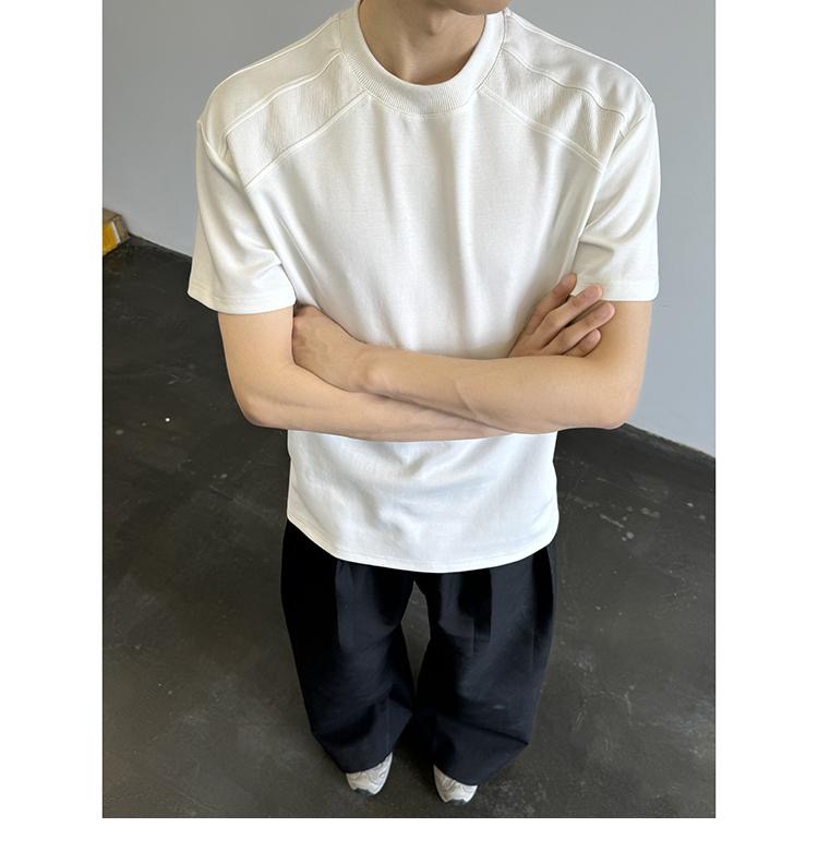 Summer heavyweight cotton 300G wide shoulder T-shirt men's niche design sense short sleeves high-end sense cleanfit tide