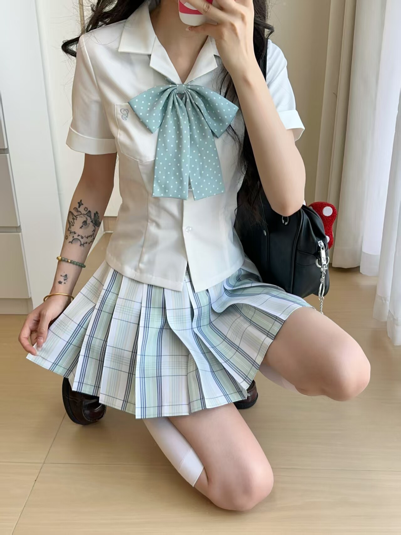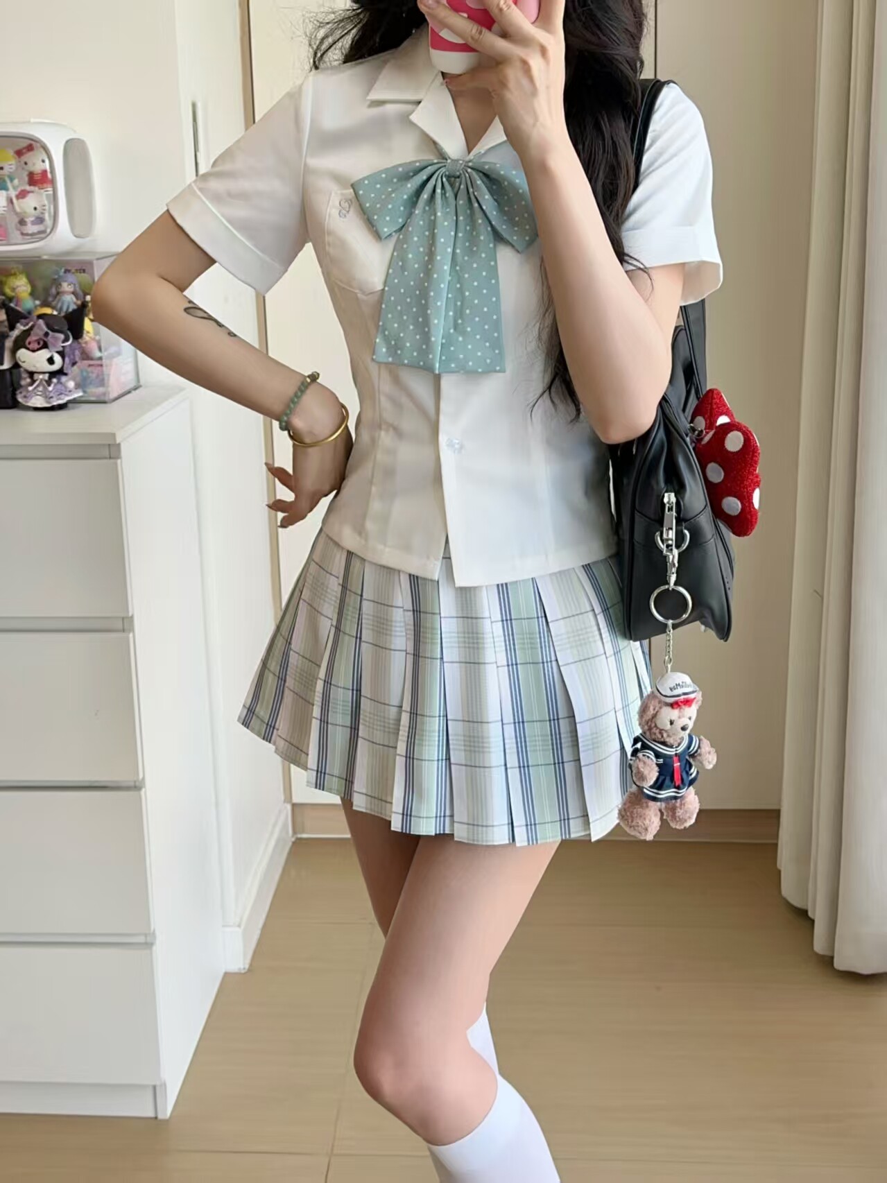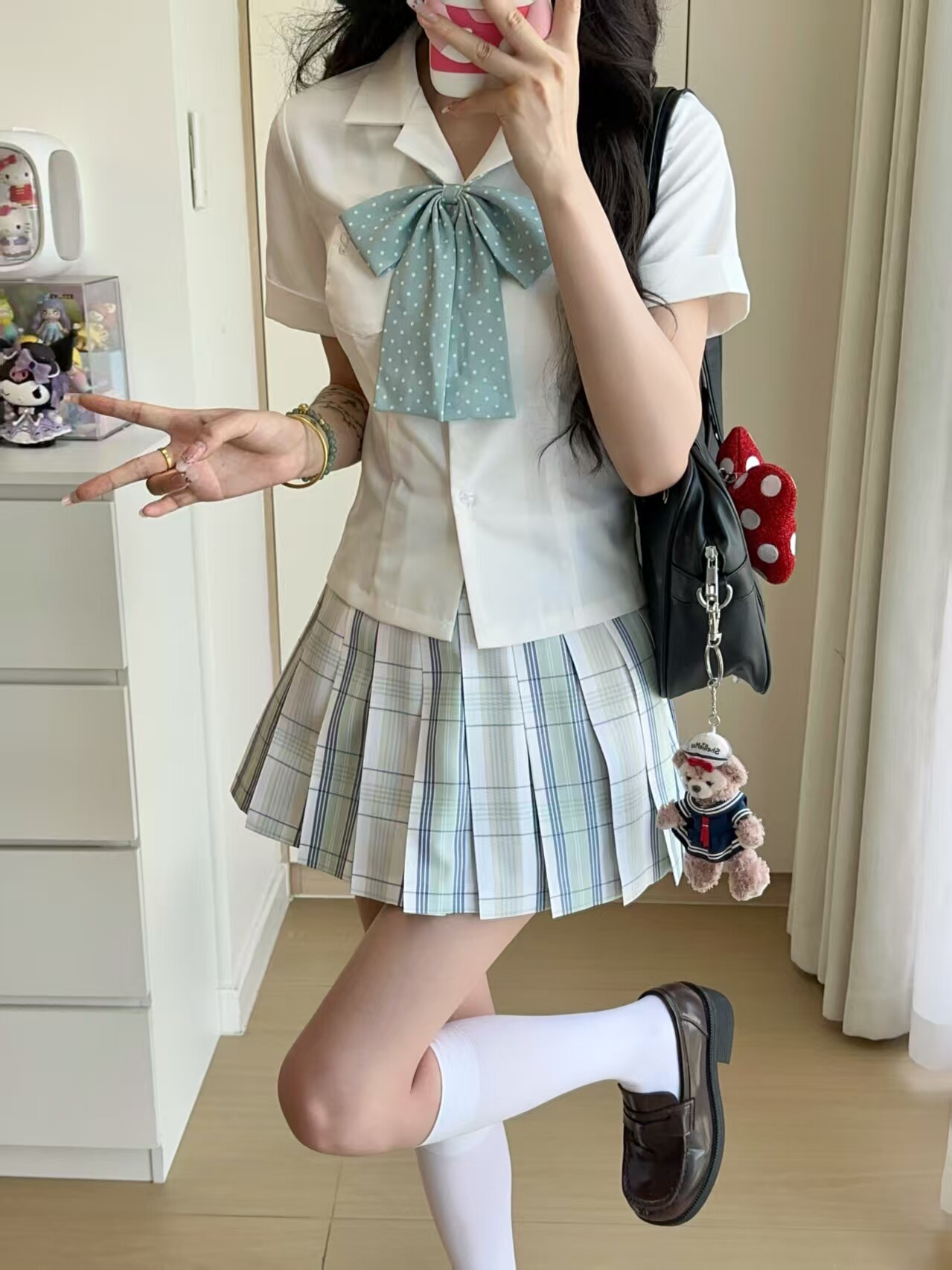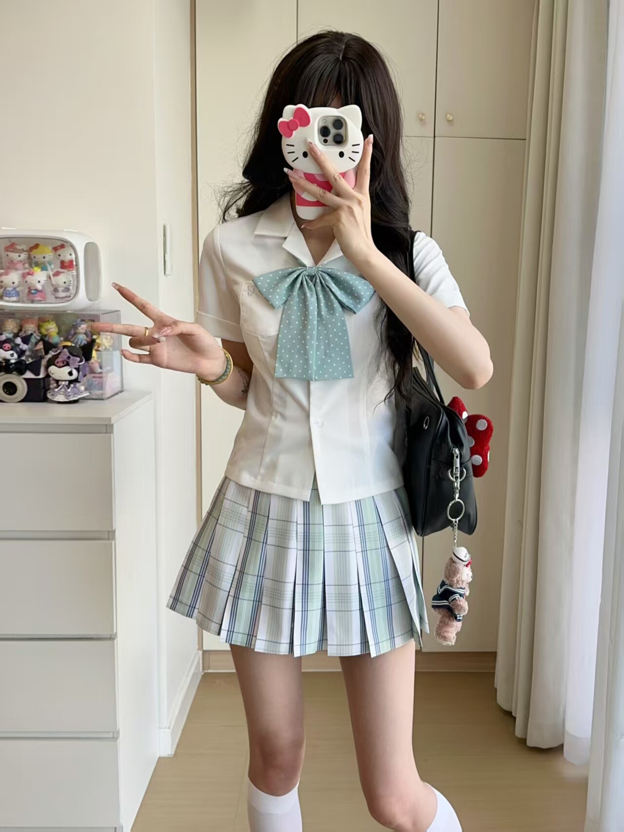 Kasuga green [mint sea] original genuine JK plaid skirt Japanese collegiate style pleated skirt uniform short skirt girl