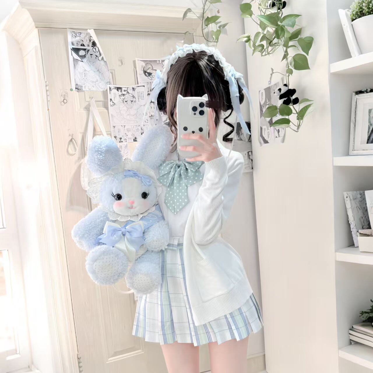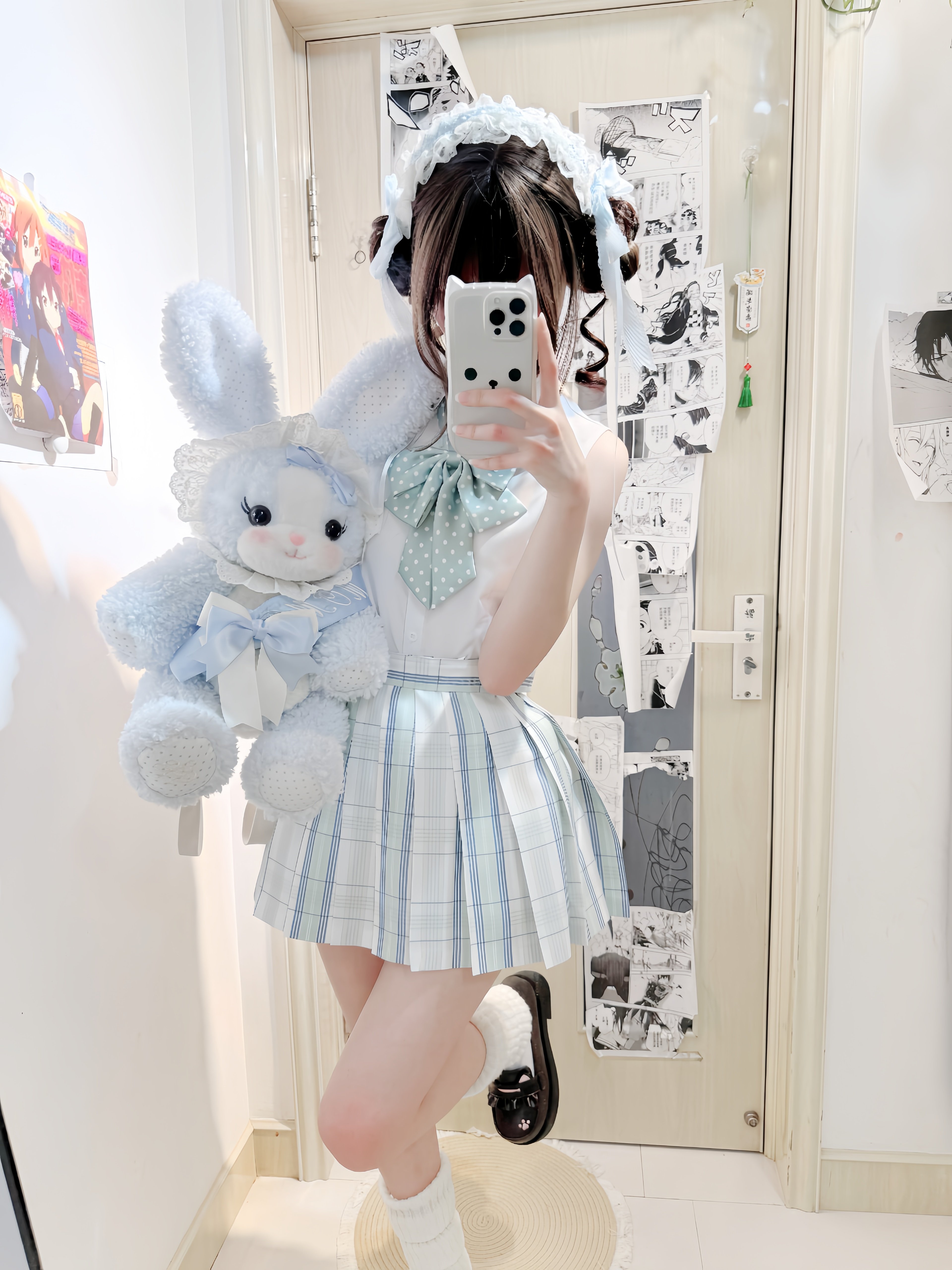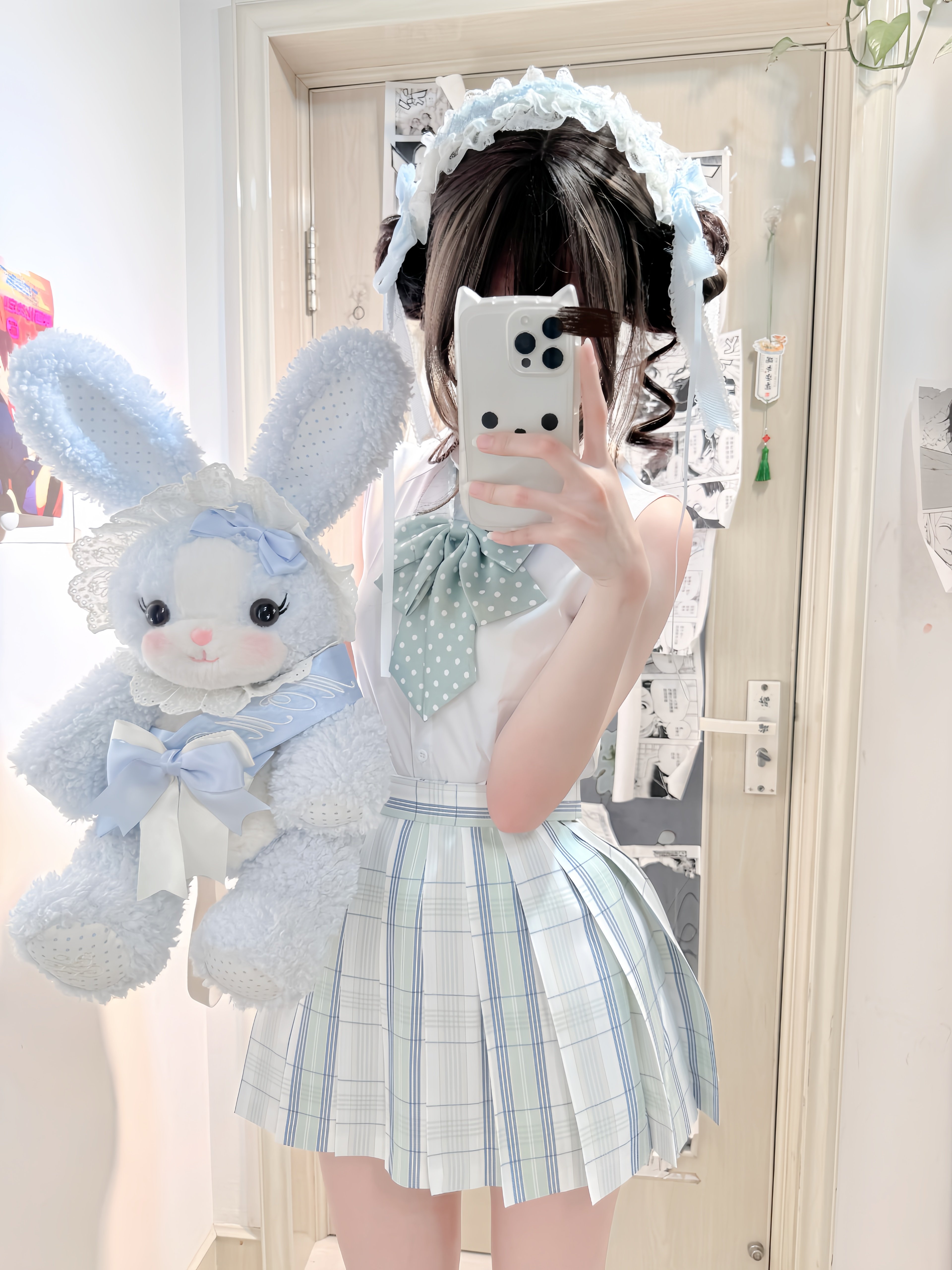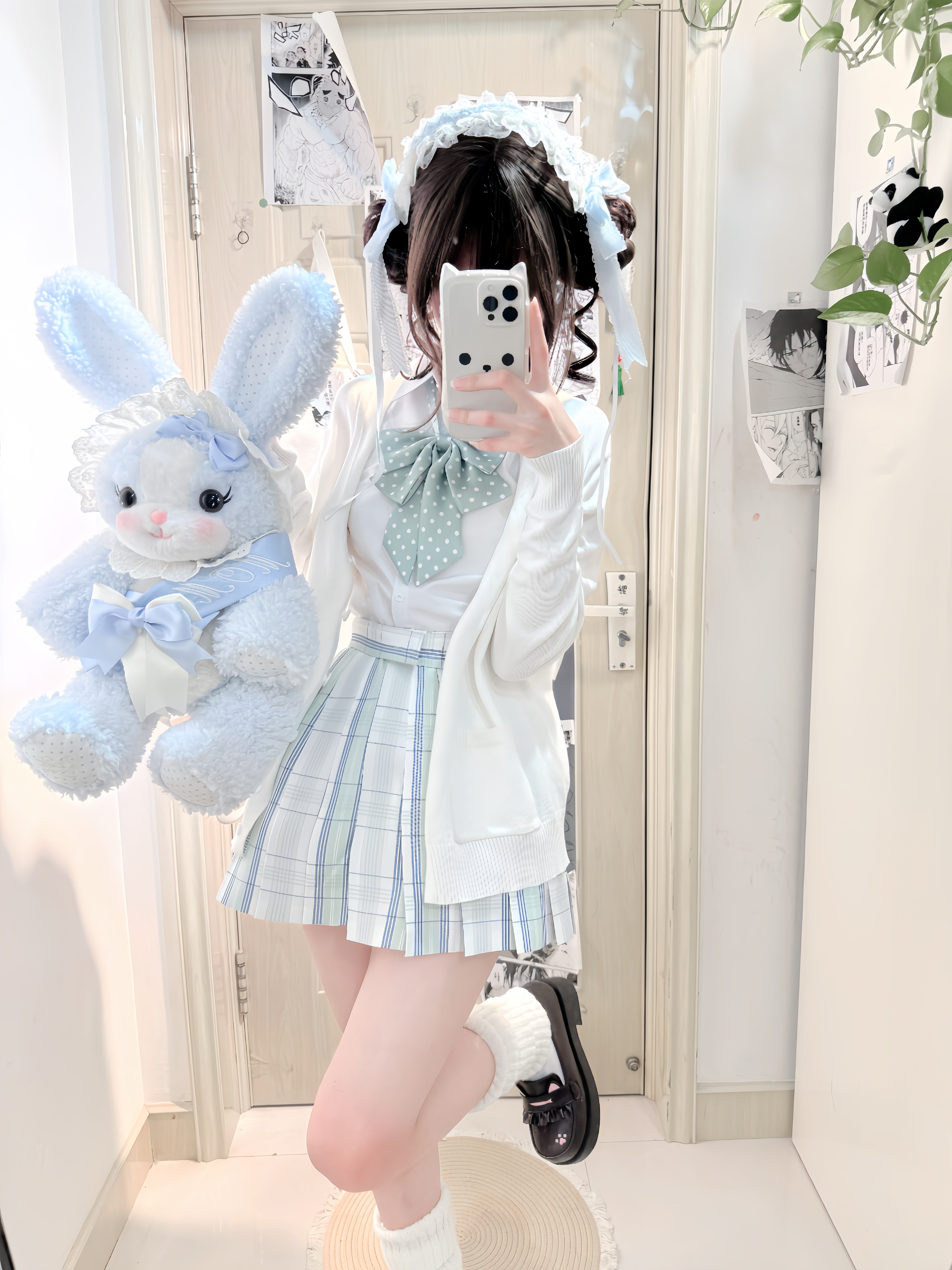 Kasuga green [mint sea] original genuine JK plaid skirt Japanese collegiate style pleated skirt uniform short skirt girl