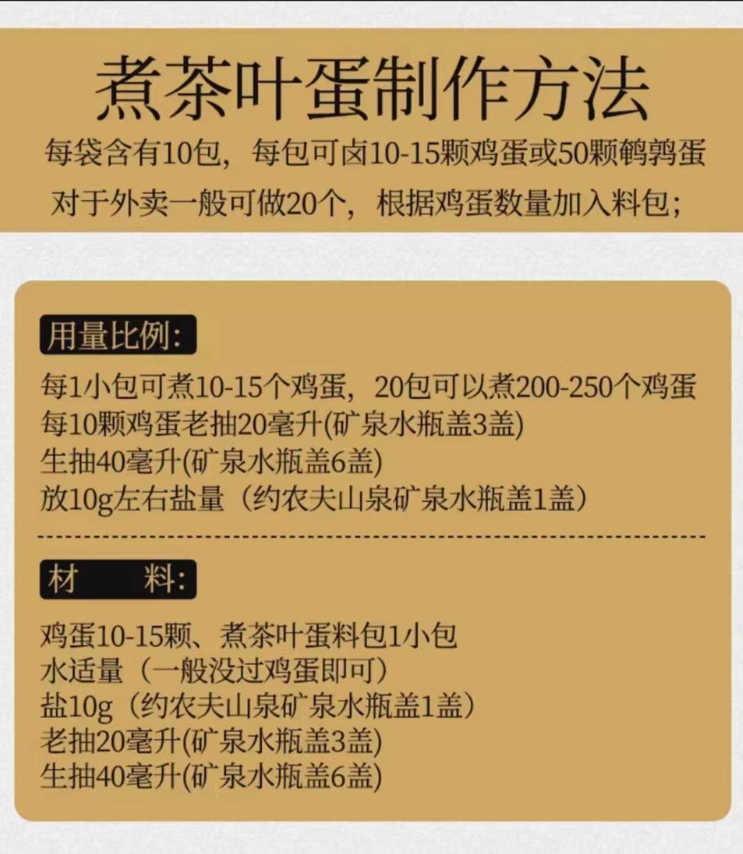 Spiced tea leaf egg seasoning package, household commercial braised egg material package, marinated boiled egg material package, quail egg marinated egg marinade package
