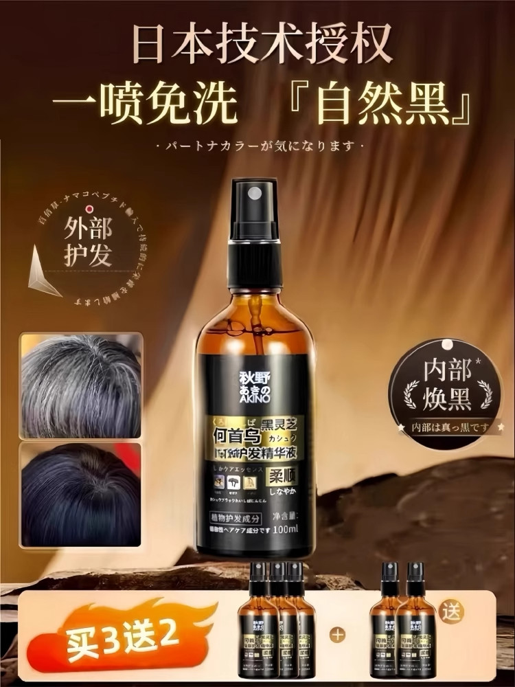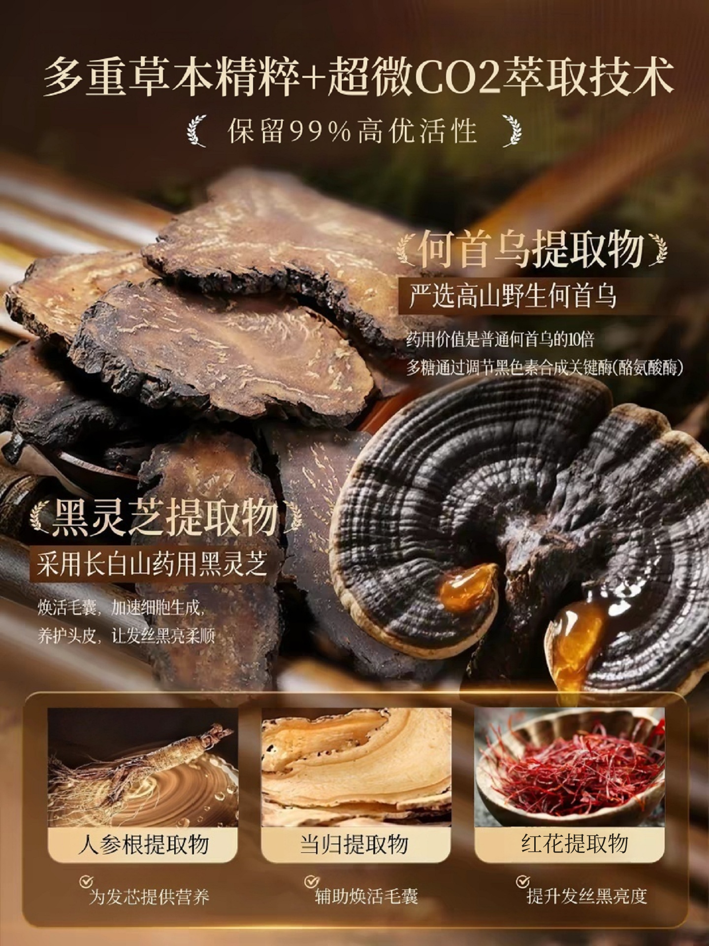 He Shou Wu black ganoderma lucidum ginseng essence turns roots into black, pure plant herbal hair nourishing official genuine product developed in Japan