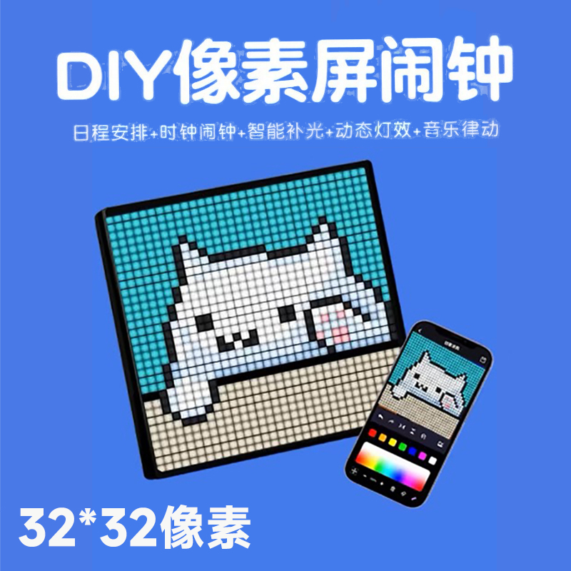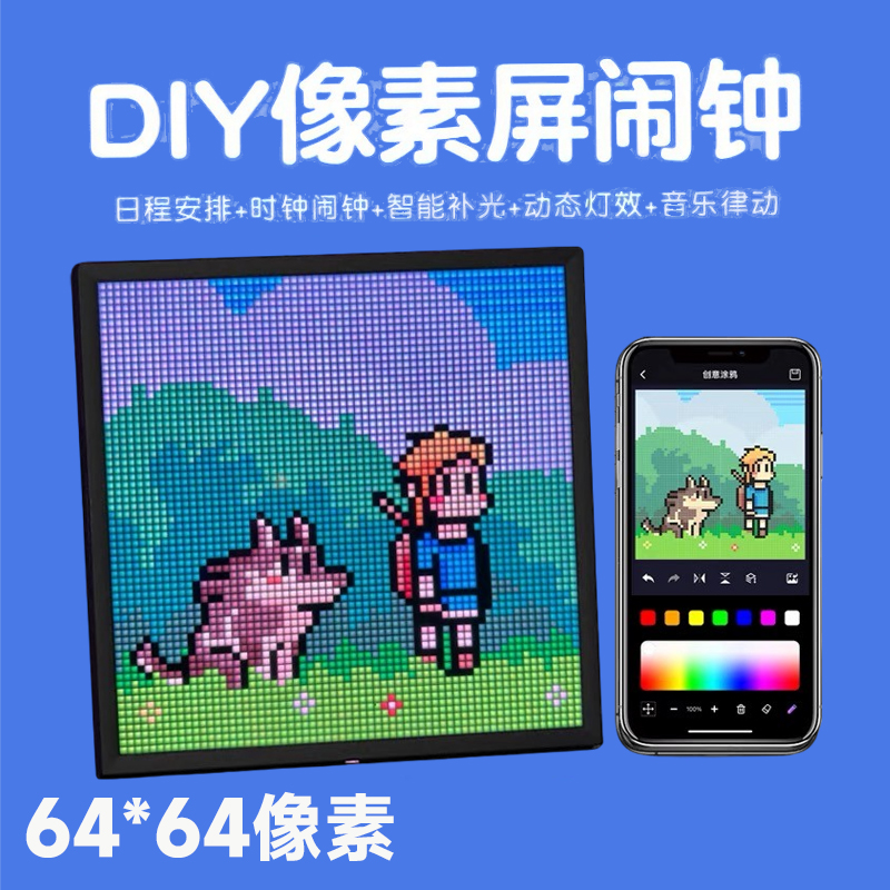 DIY Bluetooth Pixel Screen Alarm Clock Desktop Ornament LED Display Gaming Decoration Table with Boyfriend Birthday Gift