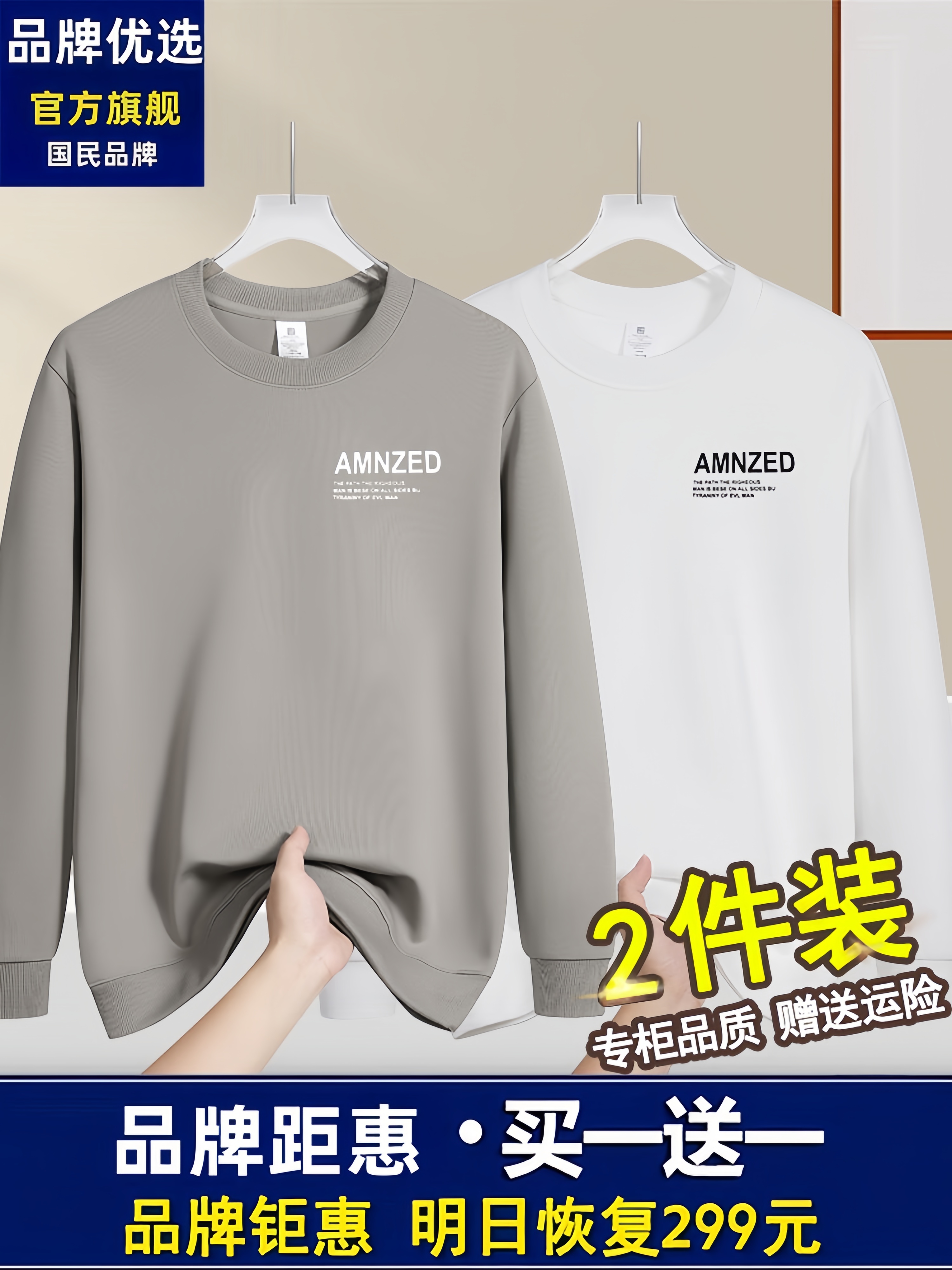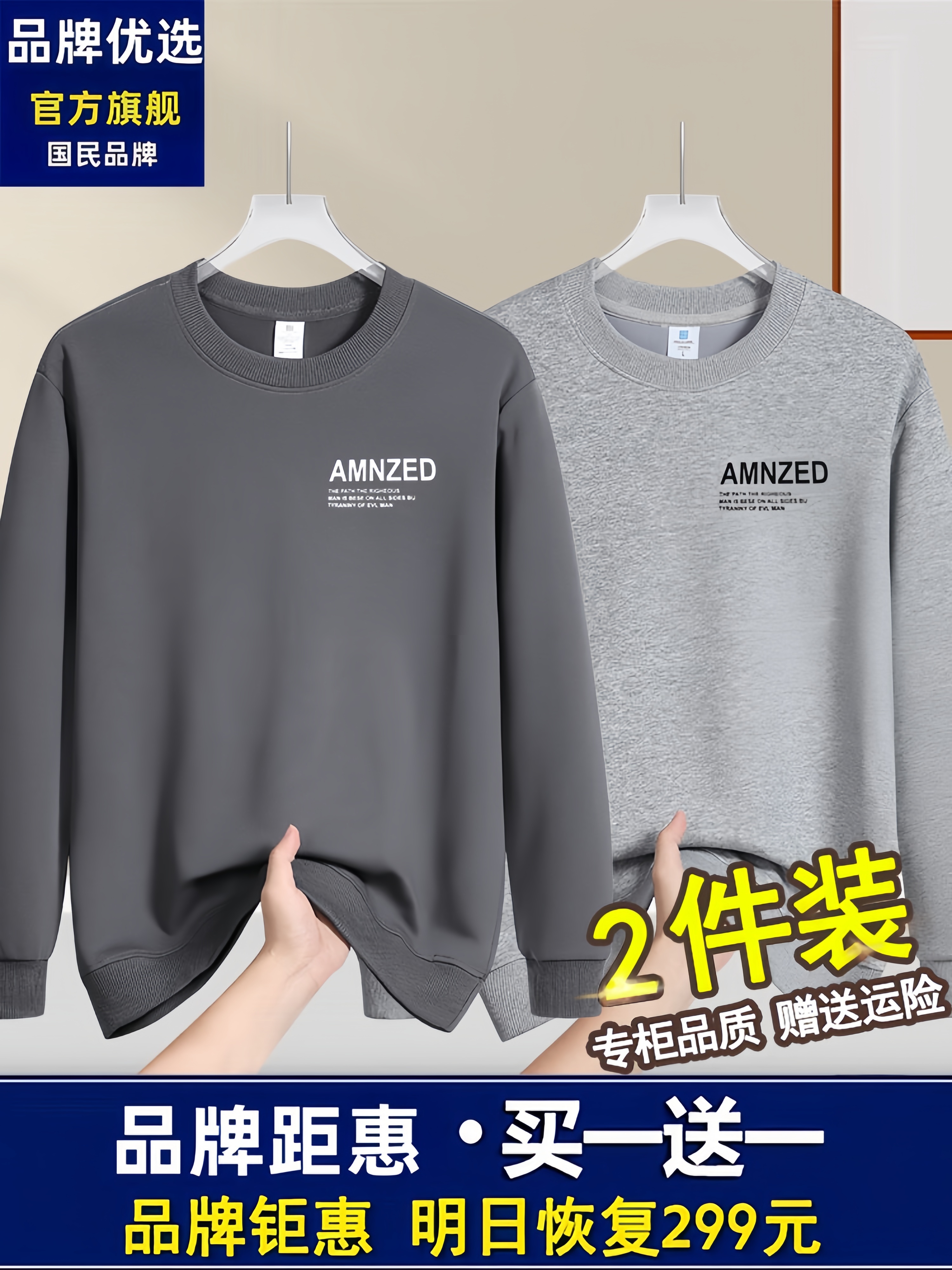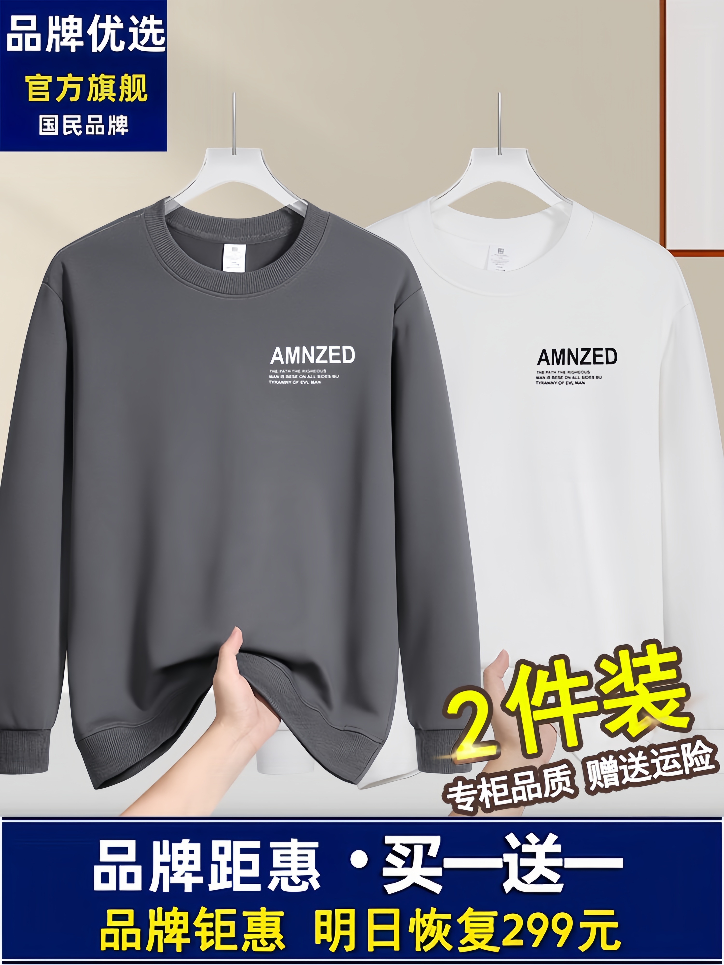 The brand prefers the new cotton sweatshirt men's spring and autumn round neck, loose and versatile long-sleeved pullover top