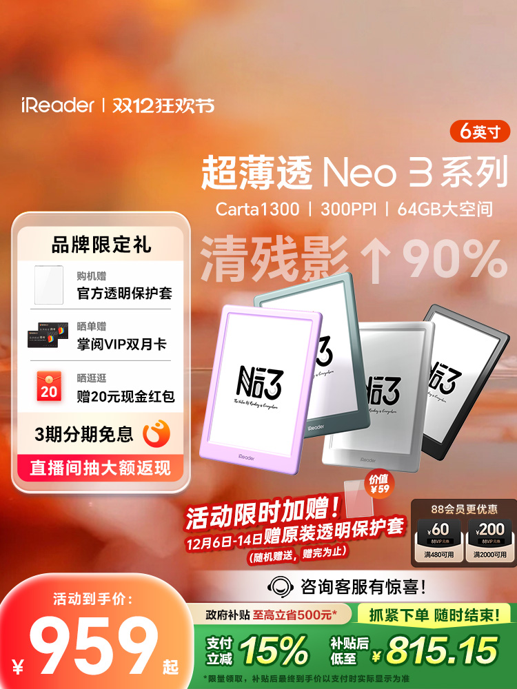 iReader Neo 3 e-book ink screen reader, 6-inch smart e-paper book reader, ink screen, student eye protection novel, reading comics, e-paper