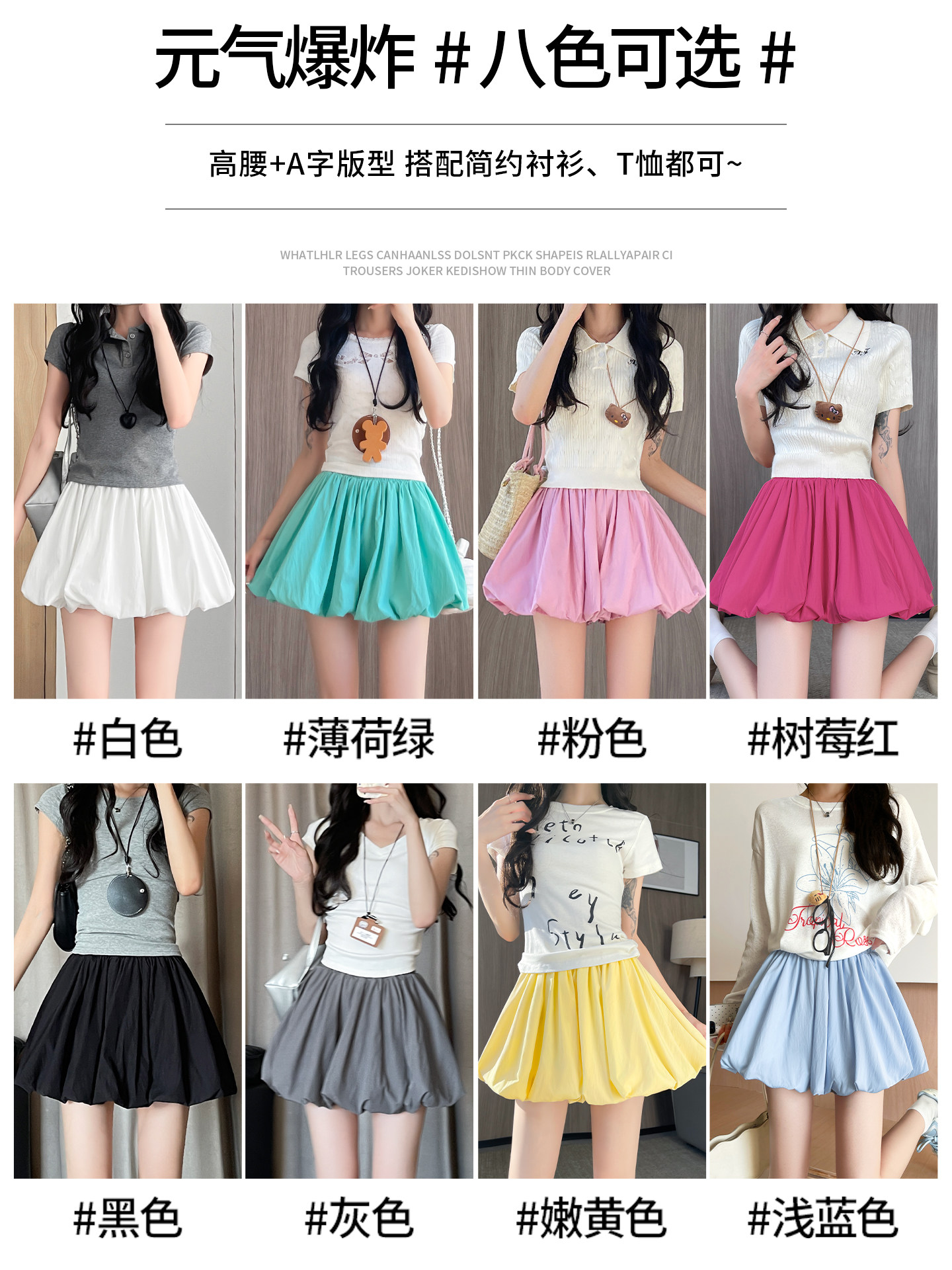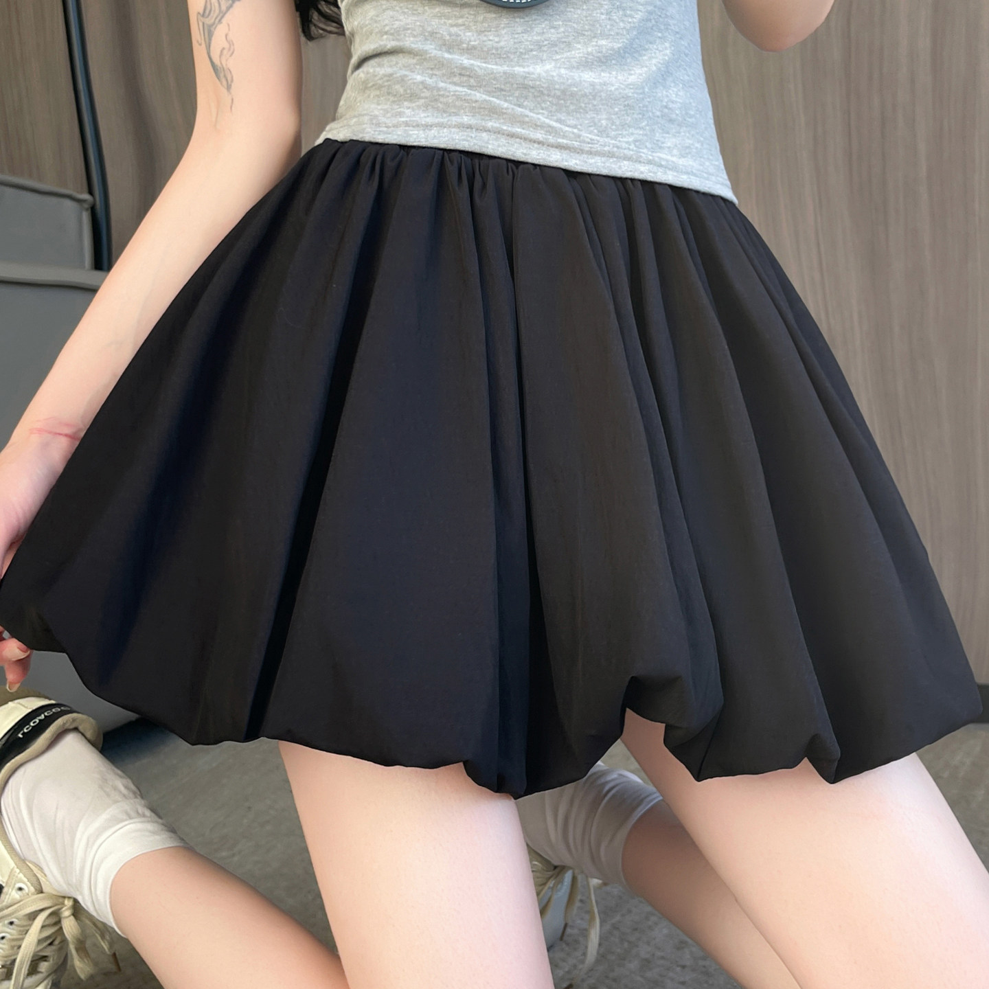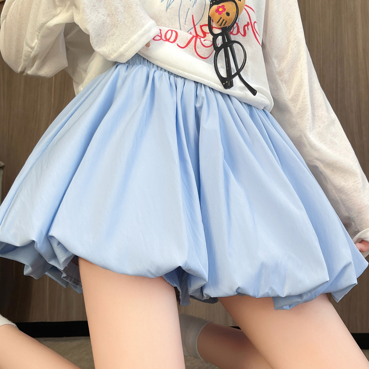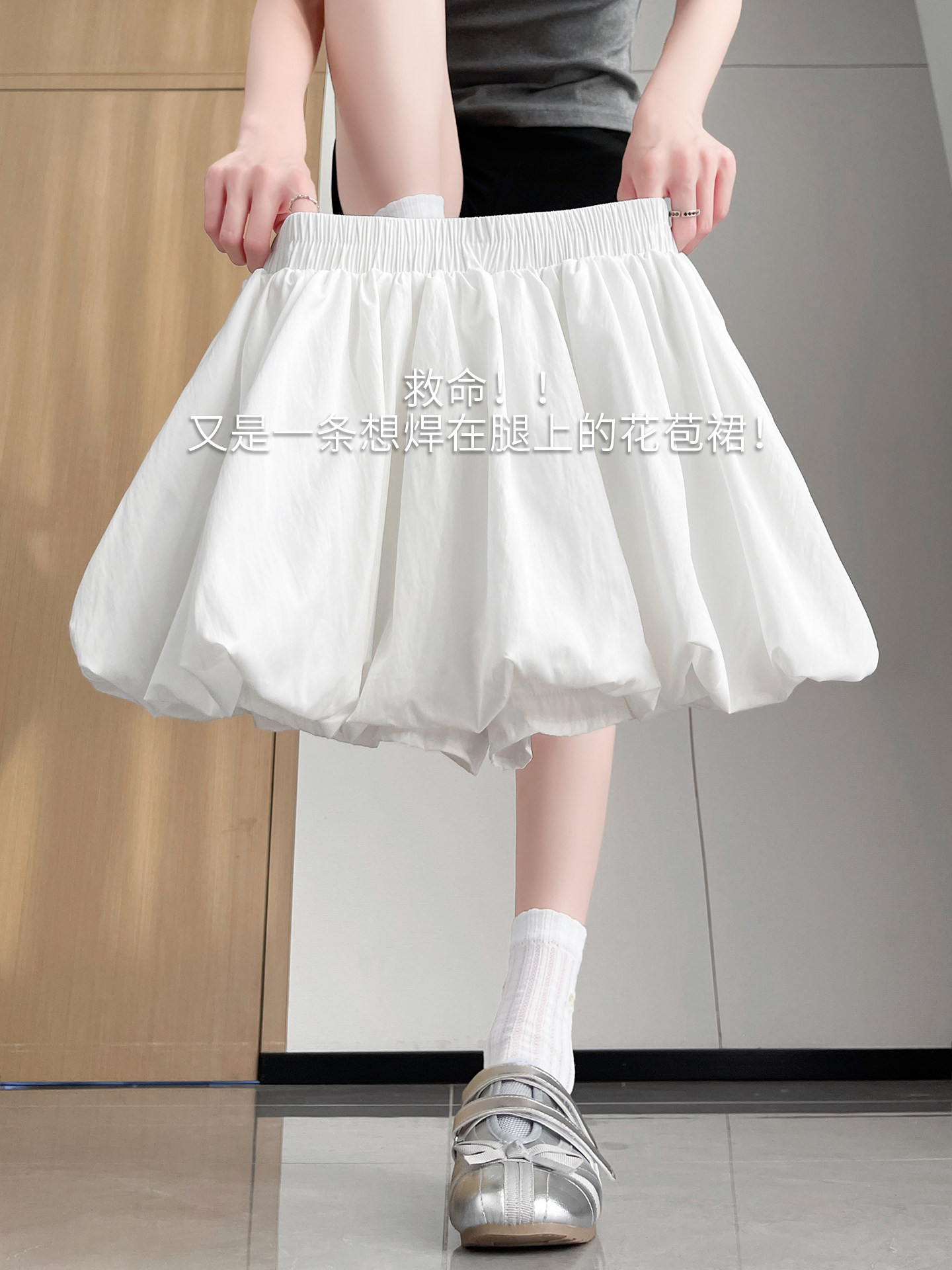 White flower bud skirt pants, women's summer high-waisted slimming A-line skirt, small man anti-shine, puffy pleated skirt