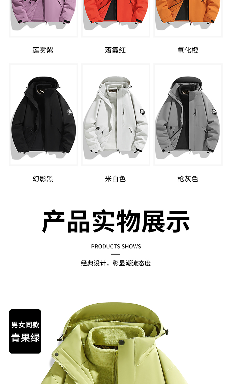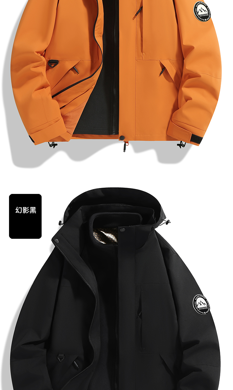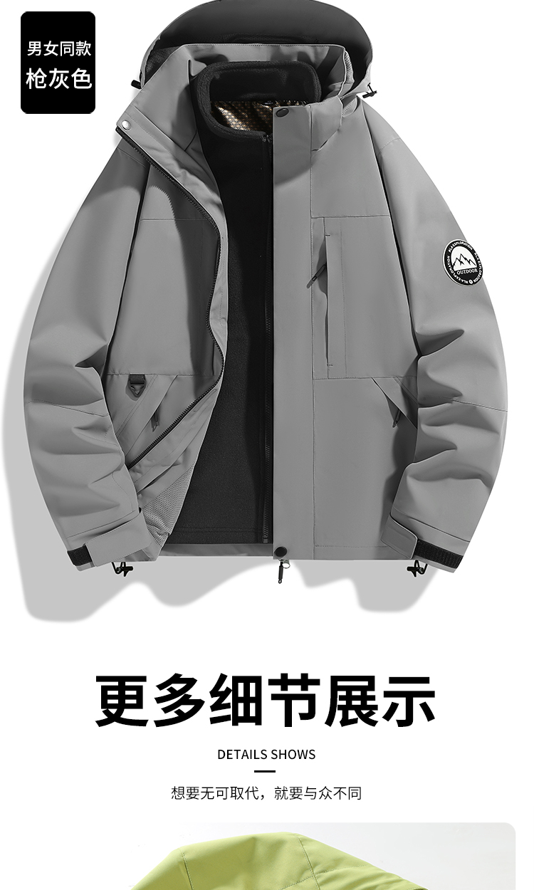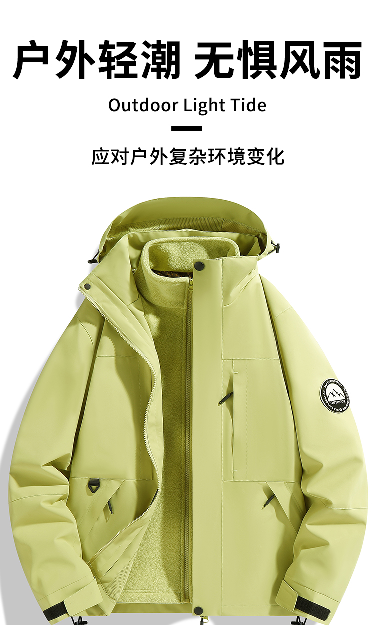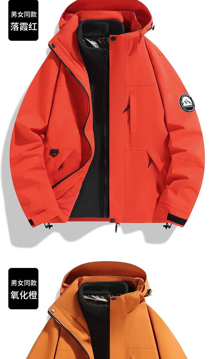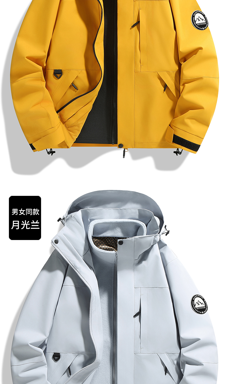 Outdoor jacket women's three-in-one fleece thickened detachable two-piece mountaineering cold protection clothing autumn and winter jacket men
