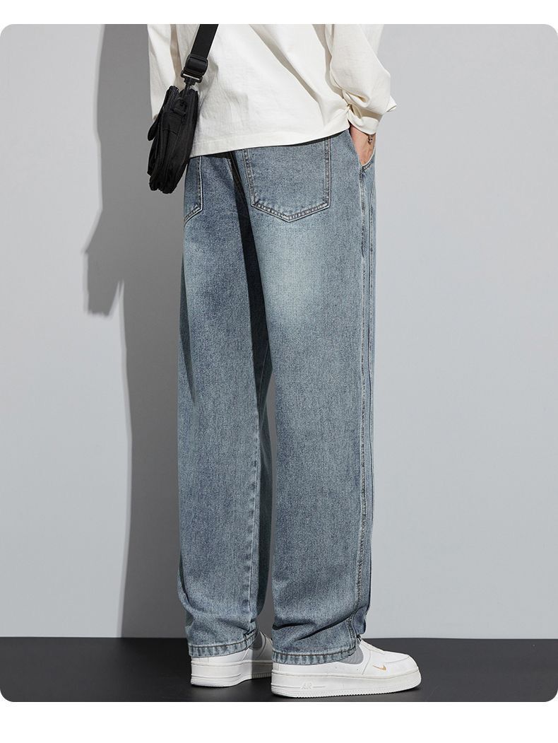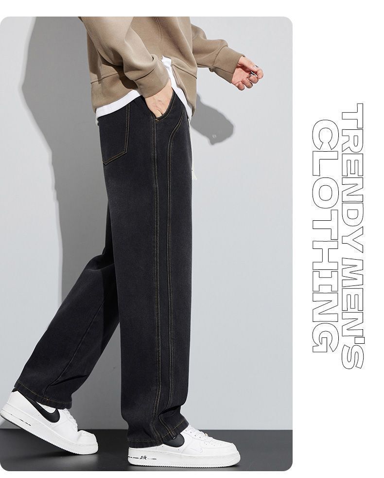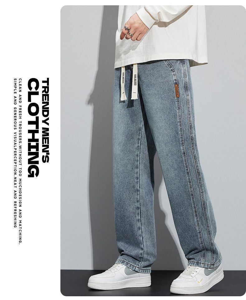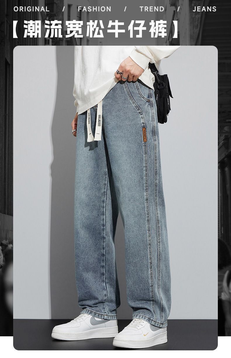 Jeans Men's 2025 Spring and Autumn Trendy Brand Retro Washed Straight Loose Elastic Waist Wide Leg Casual Versatile Long Pants