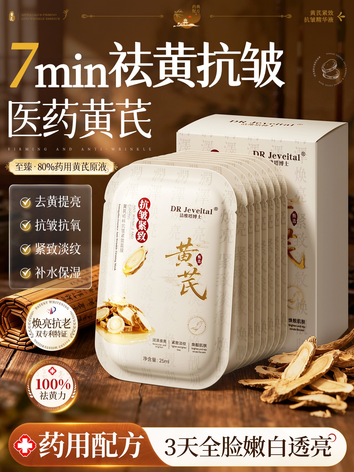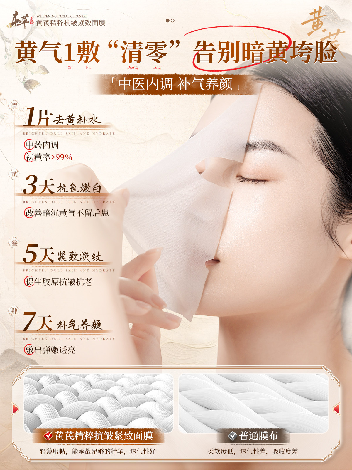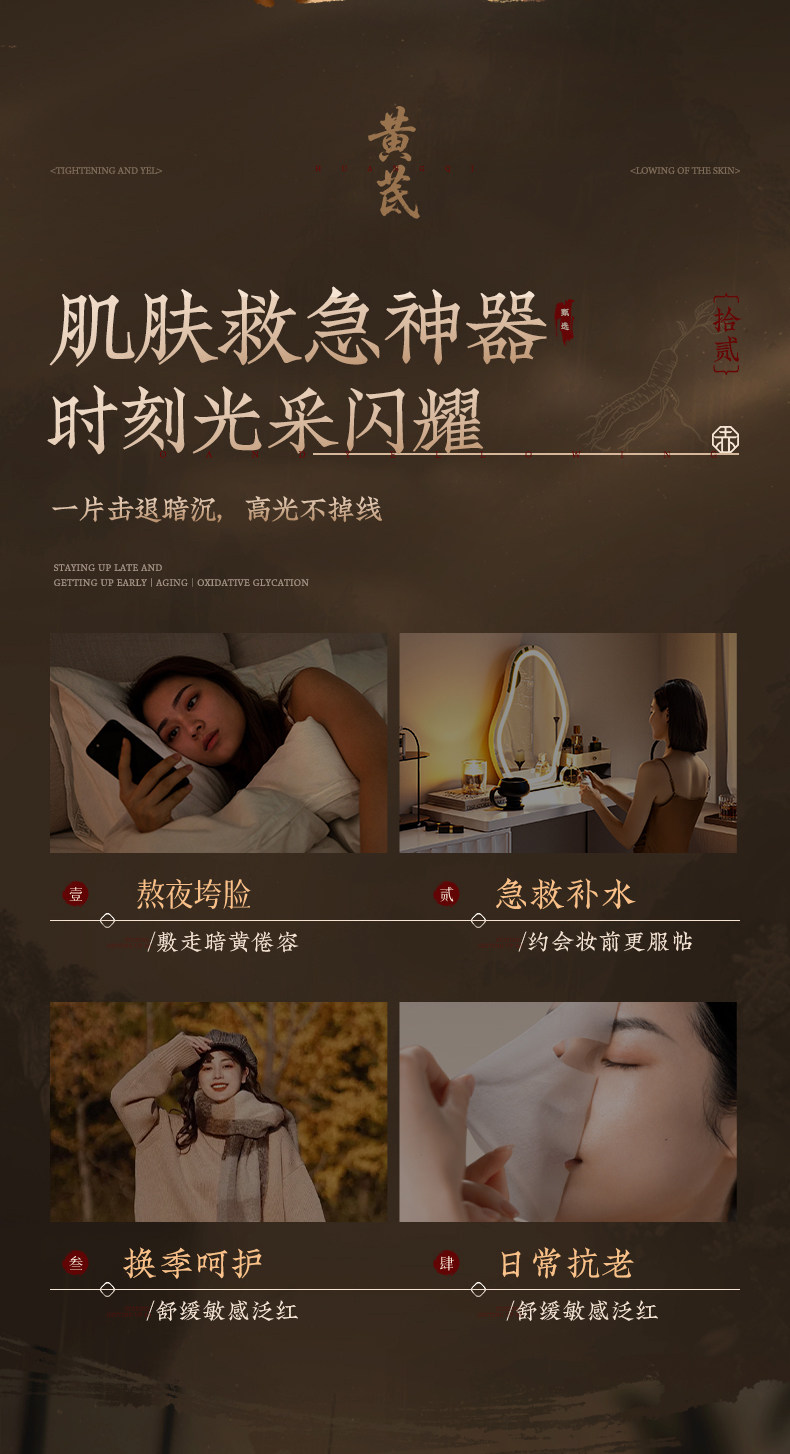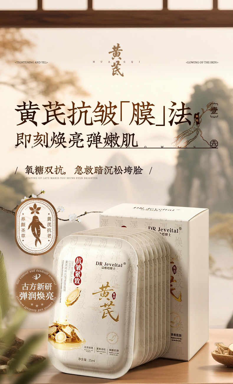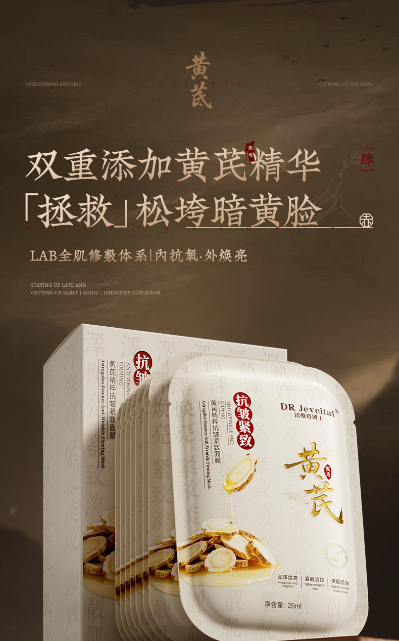 Pharmaceutical astragalus mask hydrates, whitens and moisturizes, removes yellowing and dullness, brightens skin tone, firmens and lightens wrinkles, anti-wrinkles and anti-aging