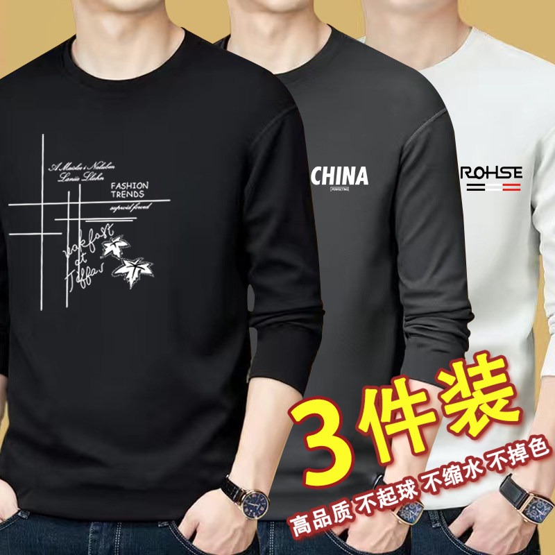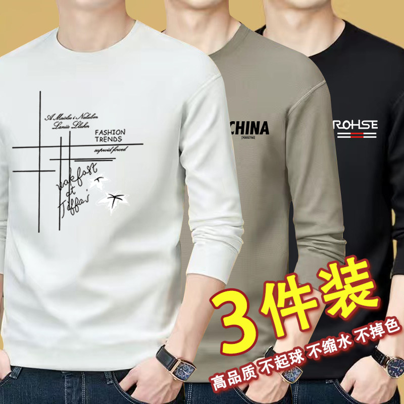 Long-sleeved t-shirt men's round neck spring and autumn student t-shirt top clothes Korean version of the trend men's wear with autumn and winter bottoming shirt men