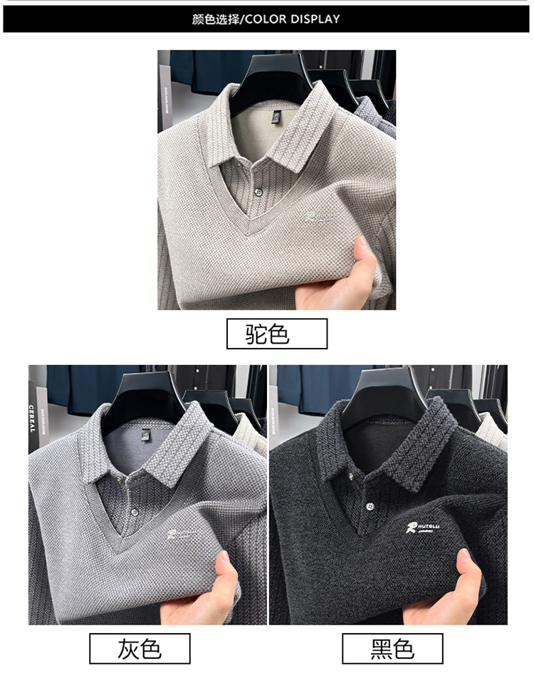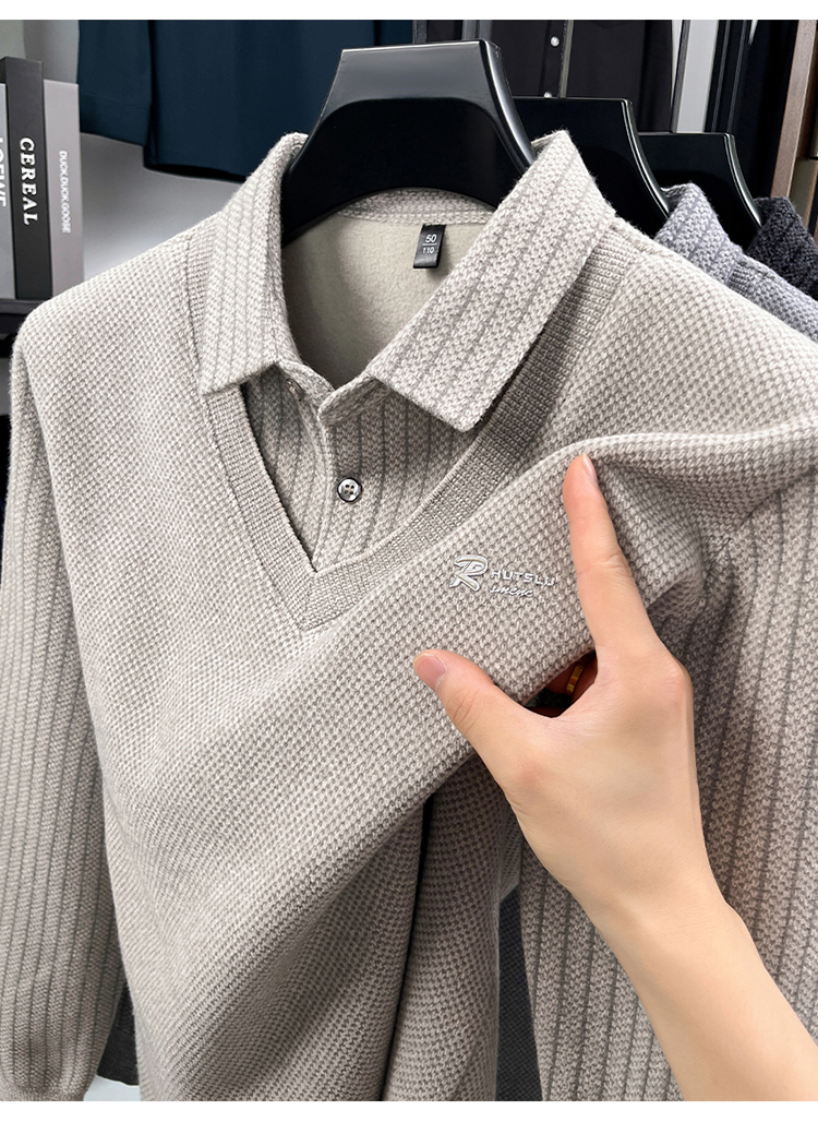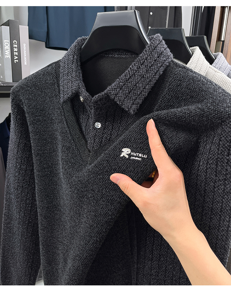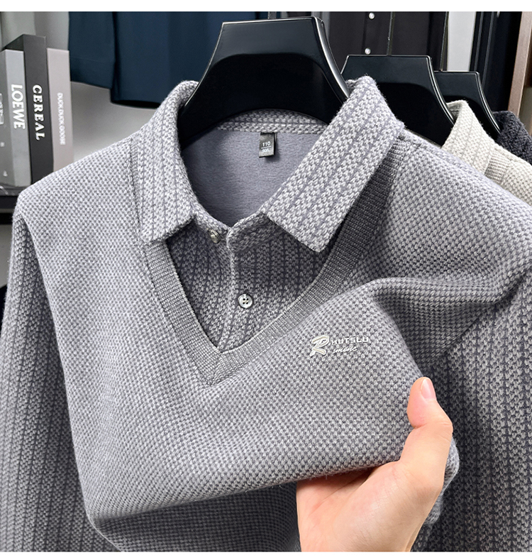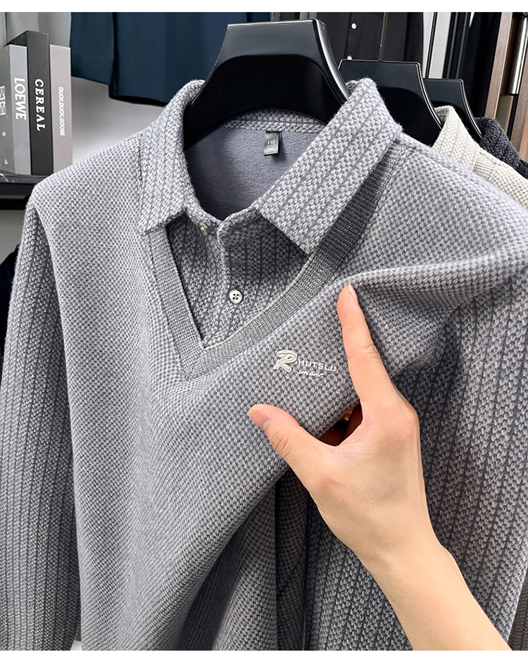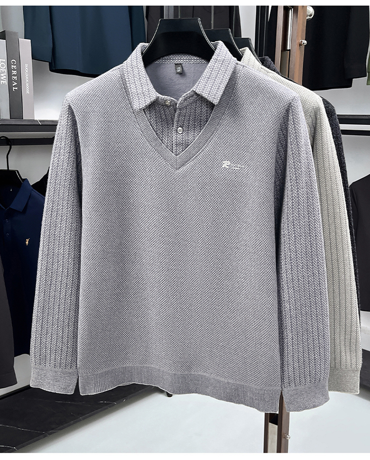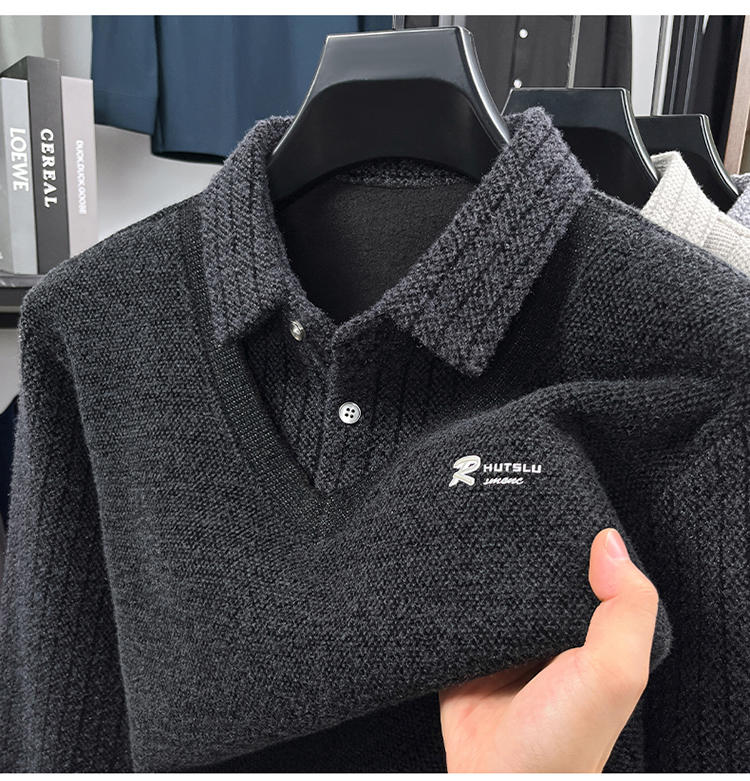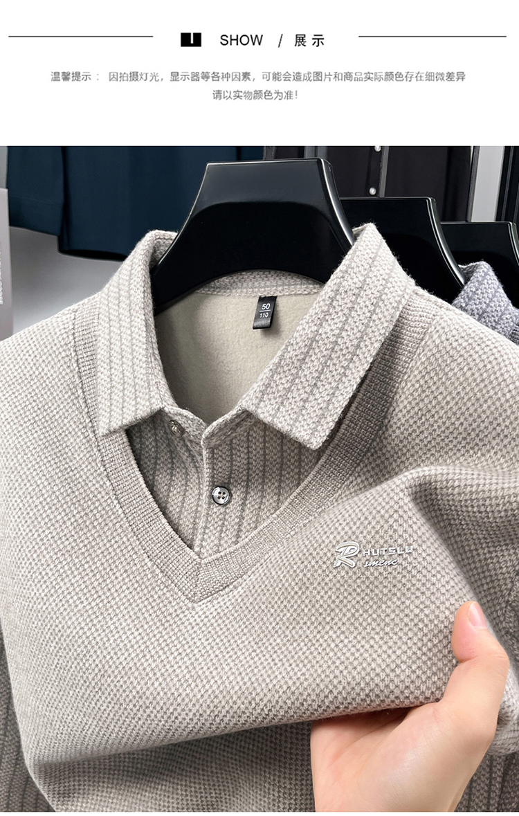Winter new fleece thickened men's top casual business knitwear fake two-piece lapel fashion and versatile sweater