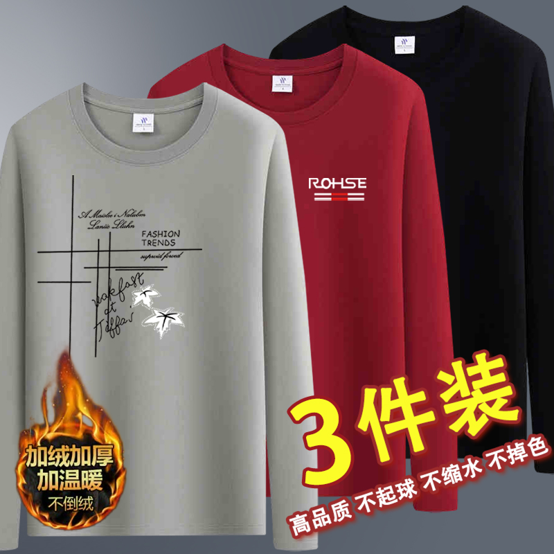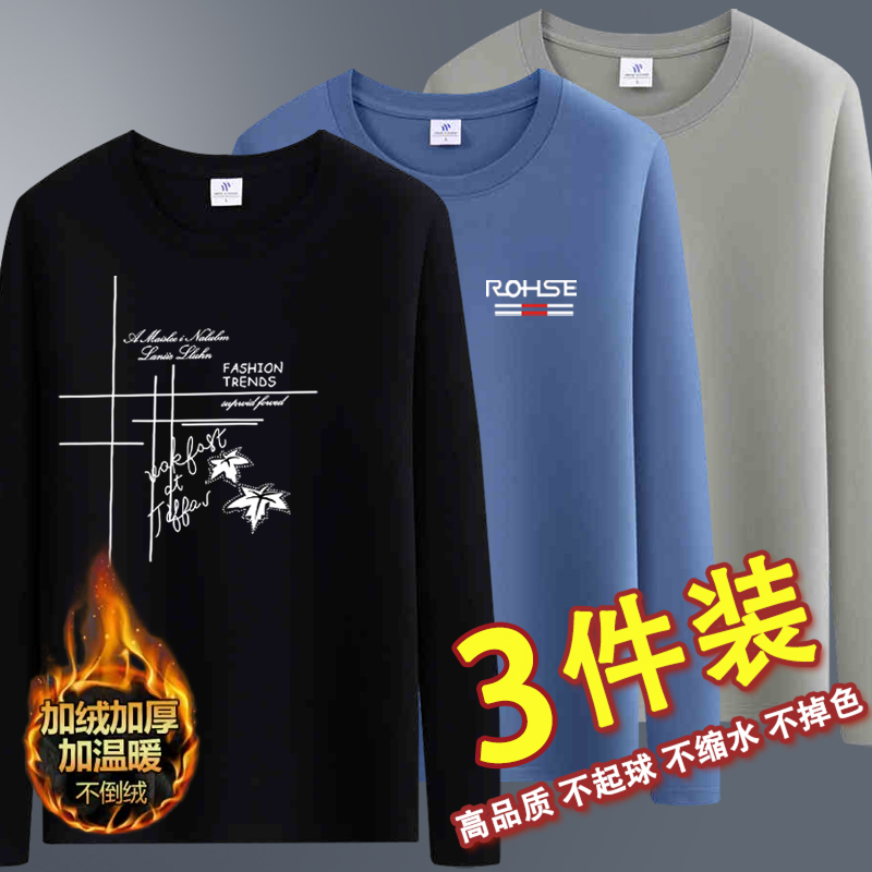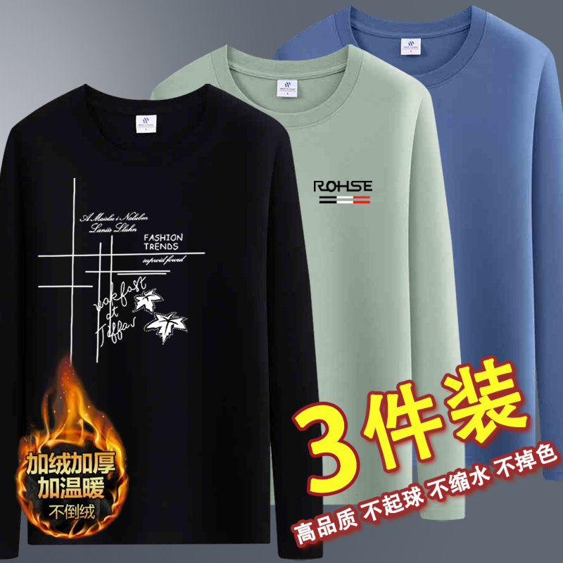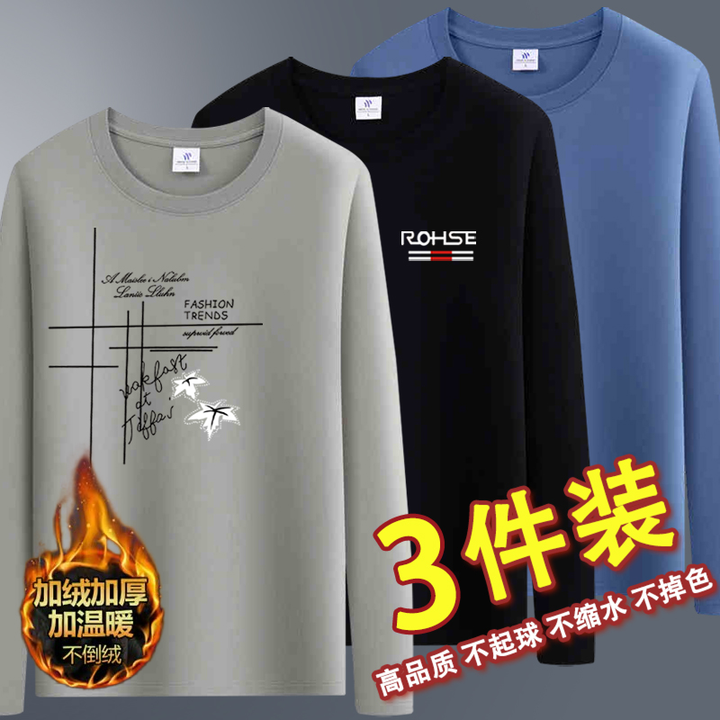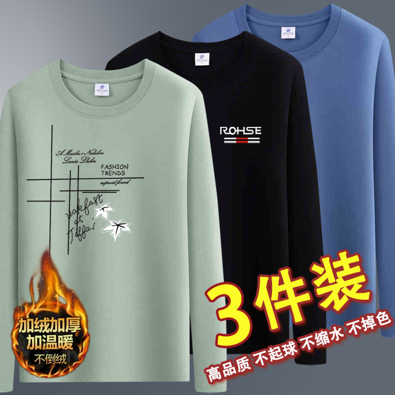 3 pieces] Warm top for men, autumn and winter underwear, versatile Korean long-sleeved T-shirt, plush base shirt for men