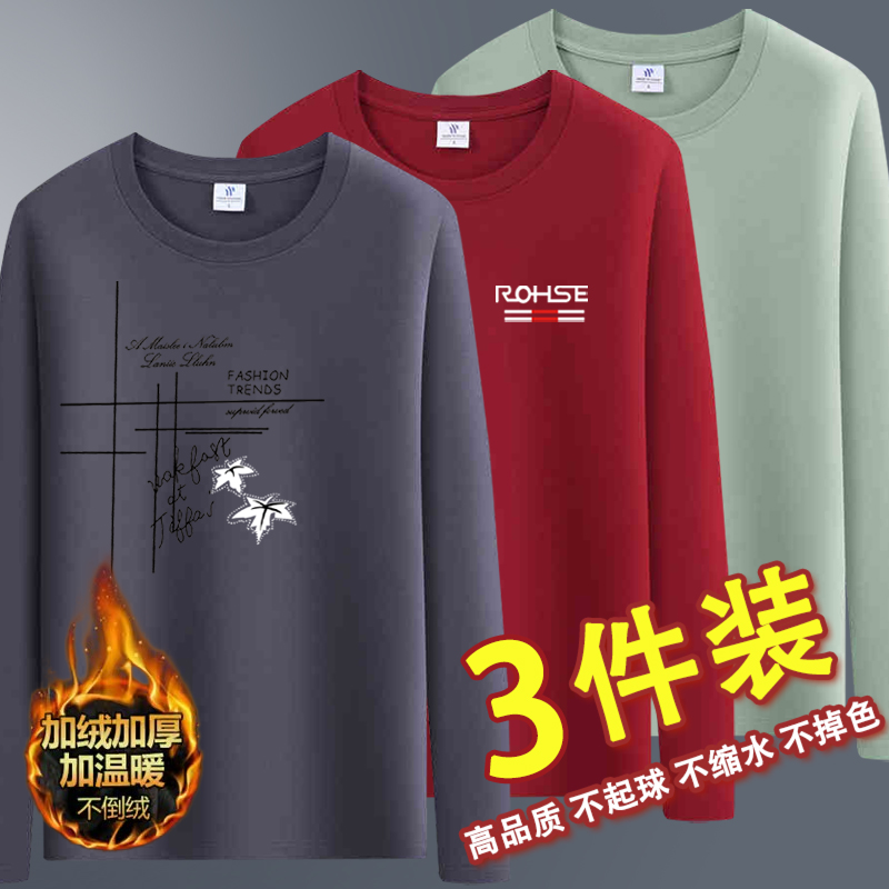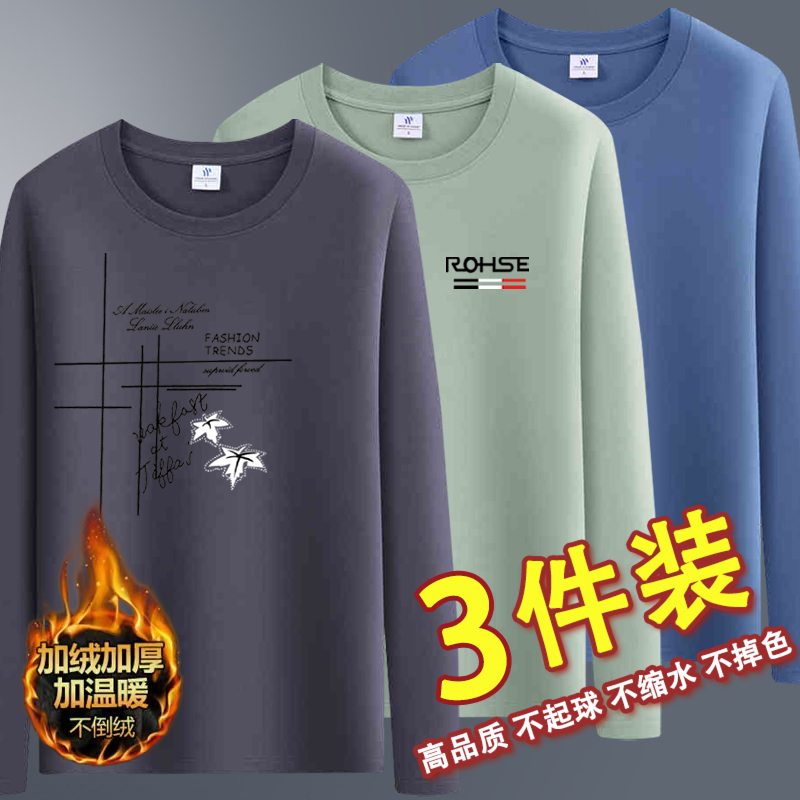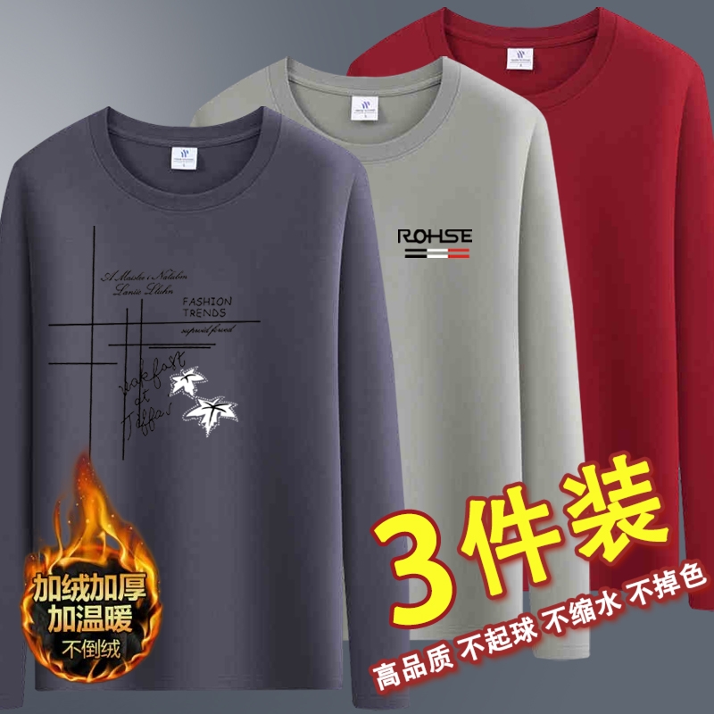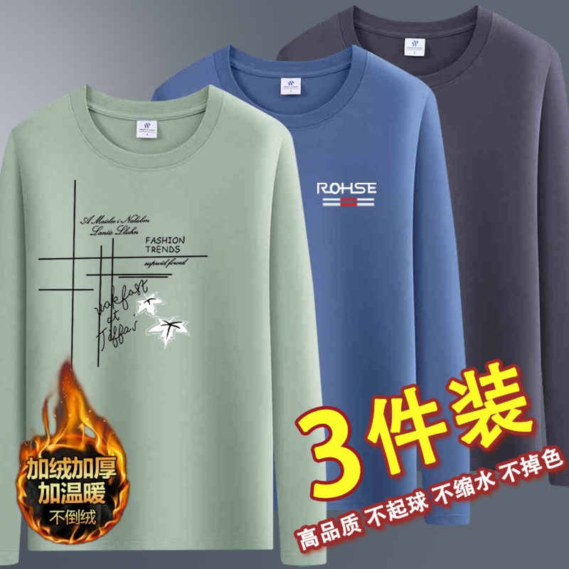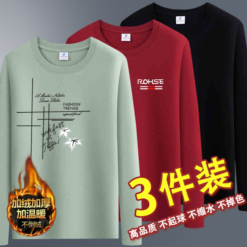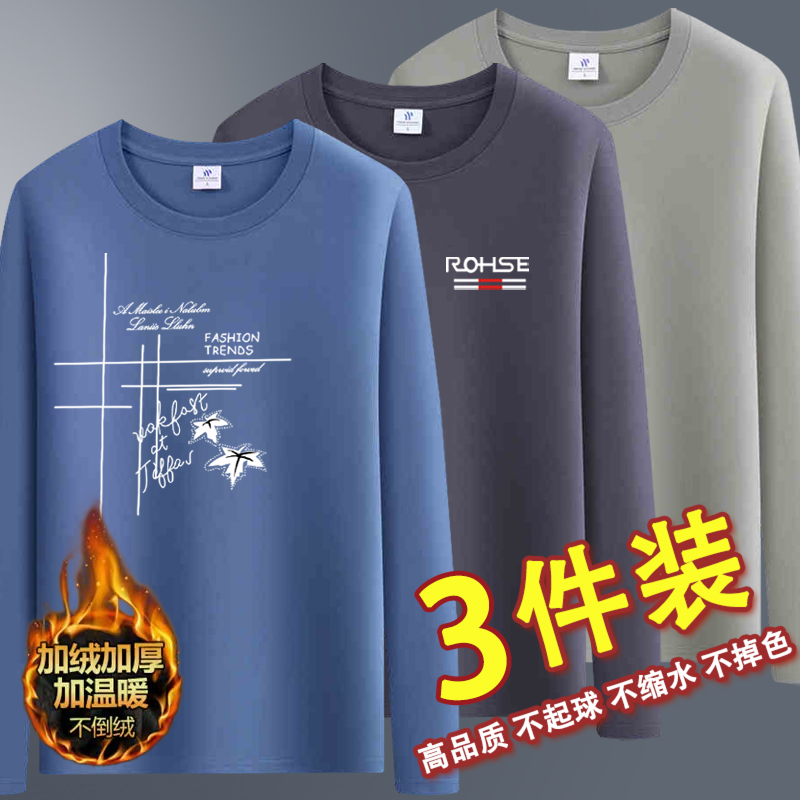 3 pieces] Warm top for men, autumn and winter underwear, versatile Korean long-sleeved T-shirt, plush base shirt for men