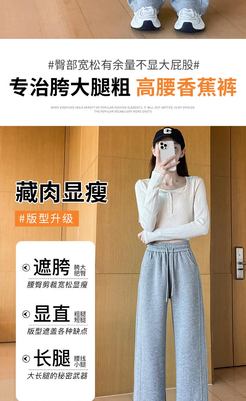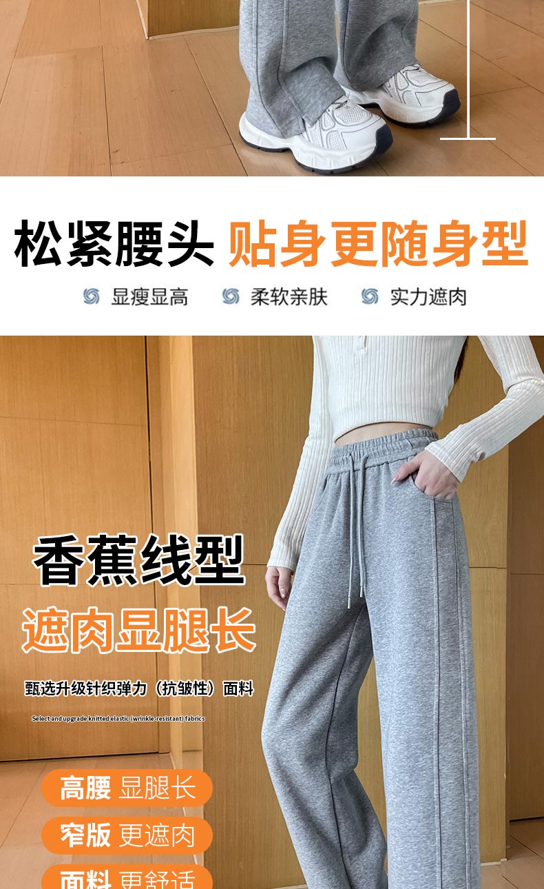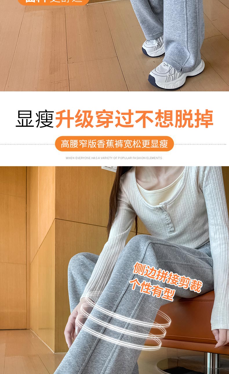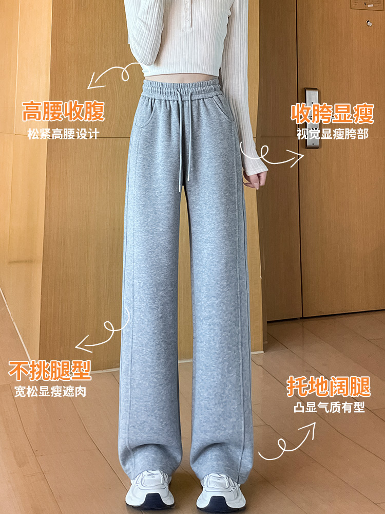 La Chapelle Gray Sweatpants Women's Autumn Loose BF Lazy Style Banana Scimitar Pants Casual Straight Sweatpants