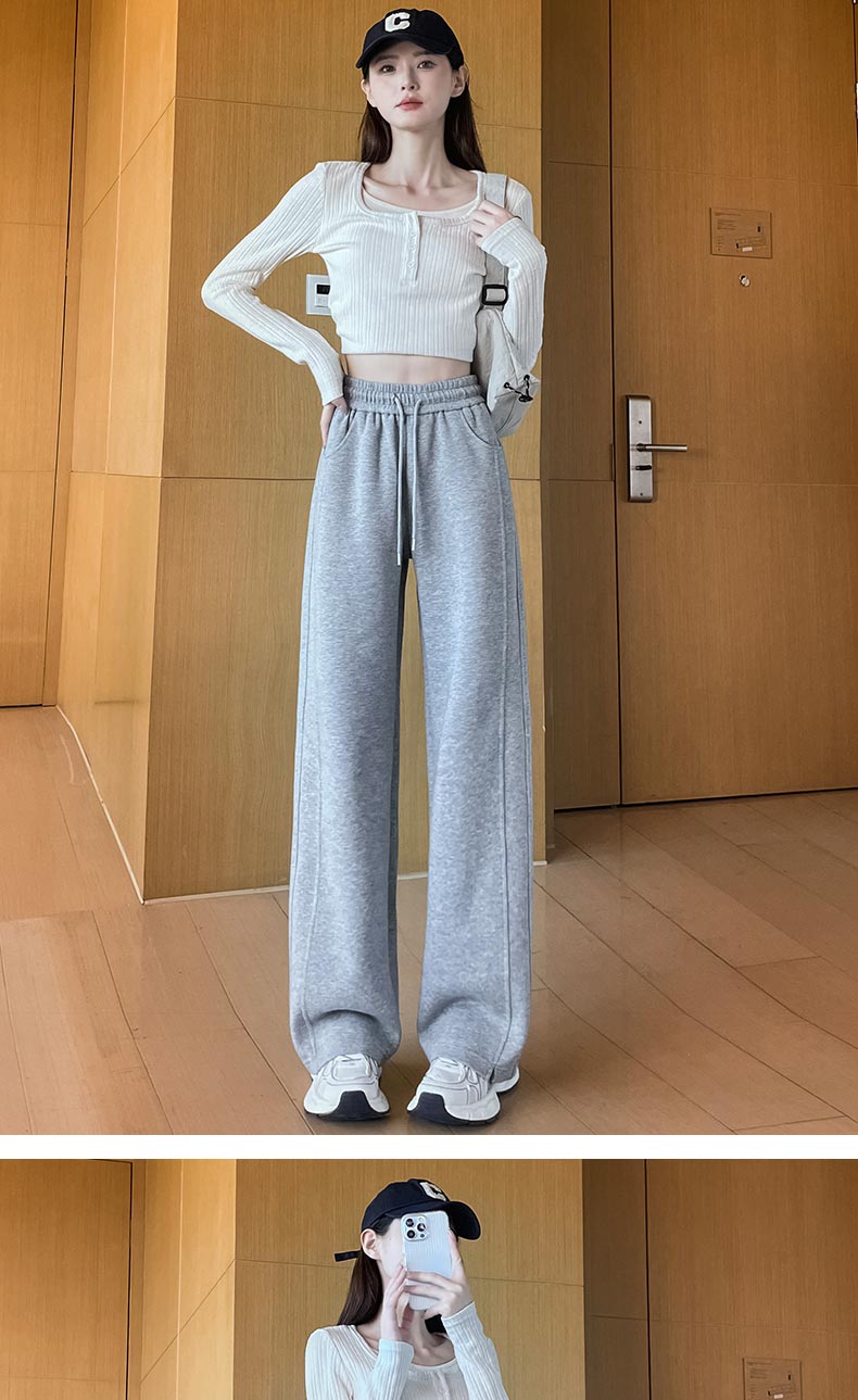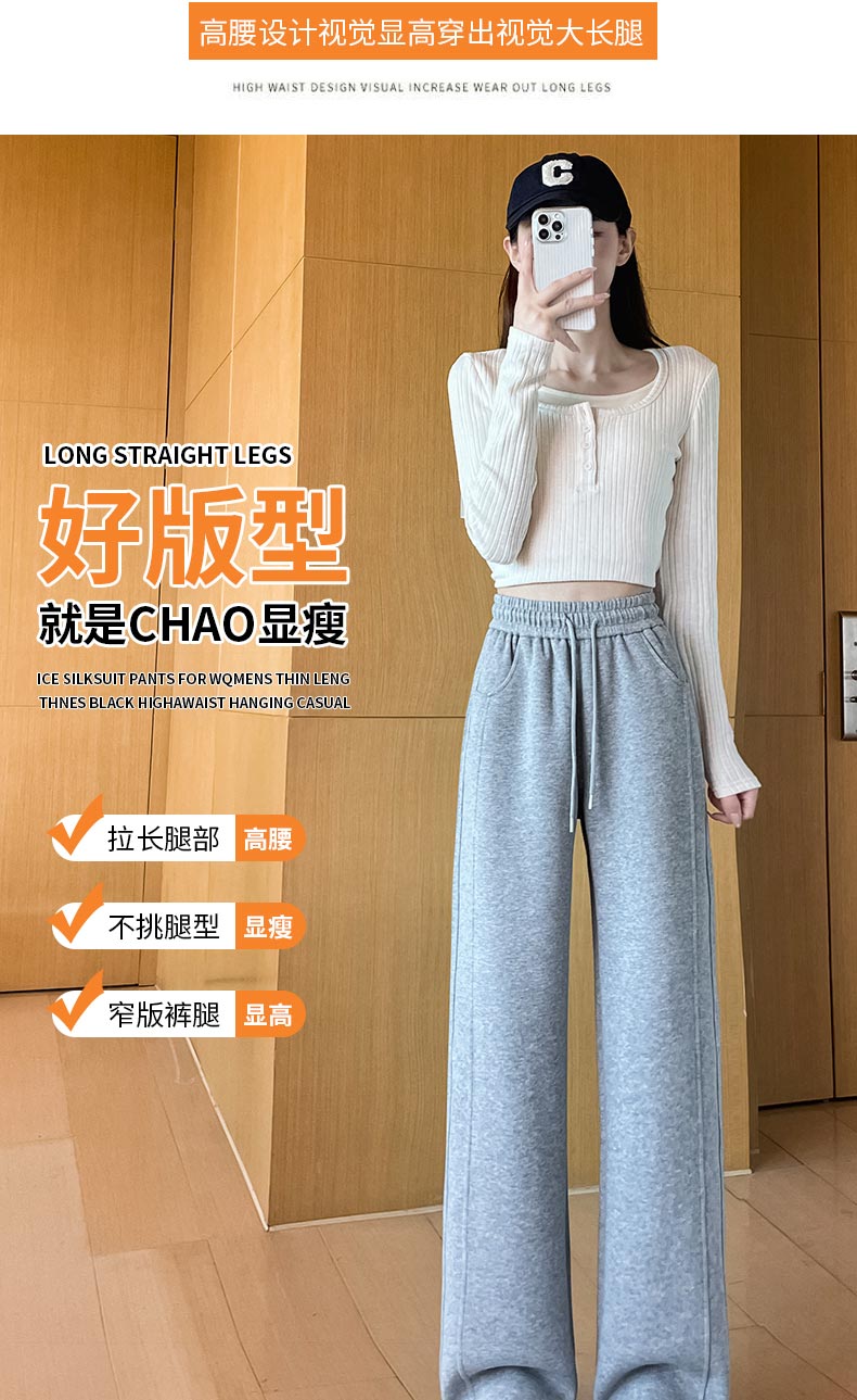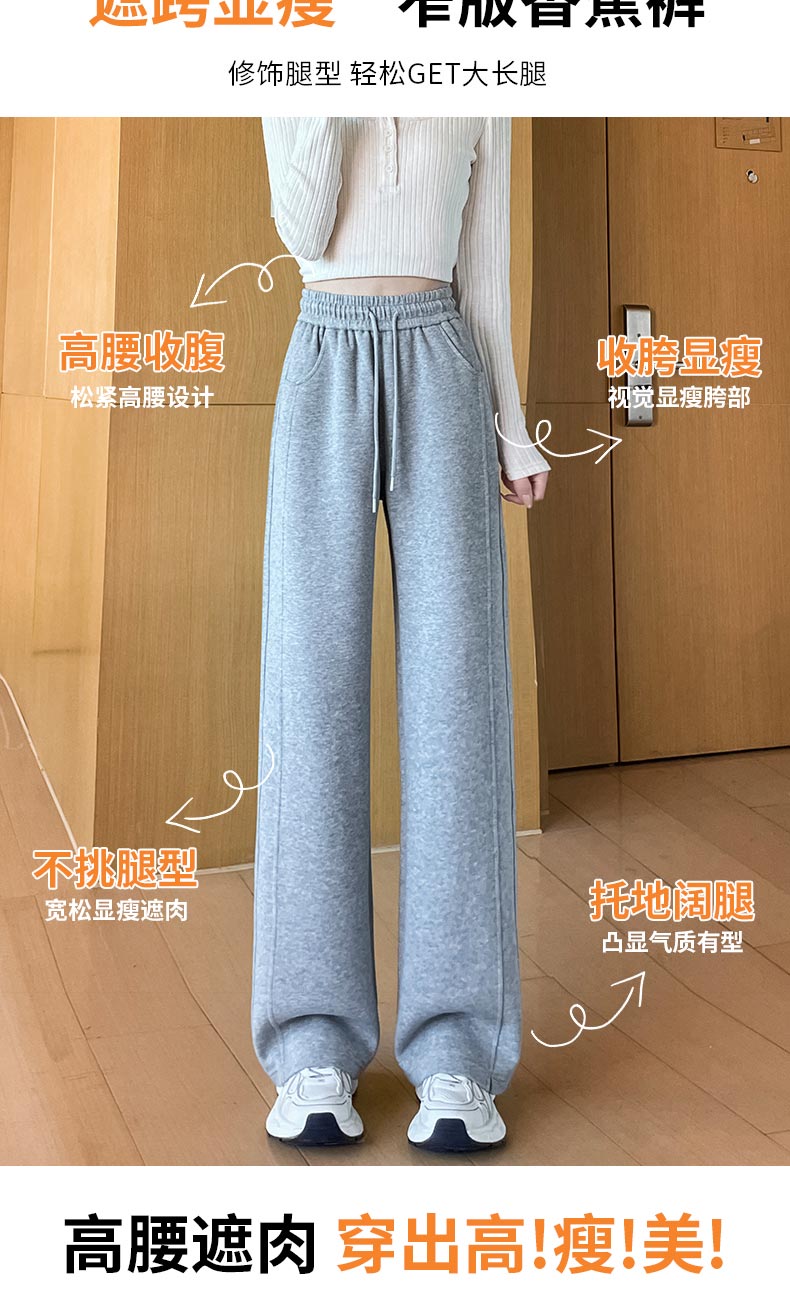 La Chapelle Gray Sweatpants Women's Autumn Loose BF Lazy Style Banana Scimitar Pants Casual Straight Sweatpants