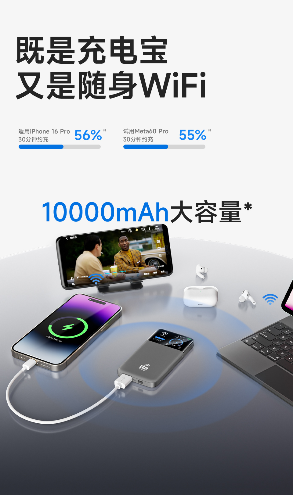 Portable wifi2025 new wireless network, portable wifi unlimited traffic, national universal mobile wi-fi6 can carry power bank, 2-in-1 4g network card, router official genuine product