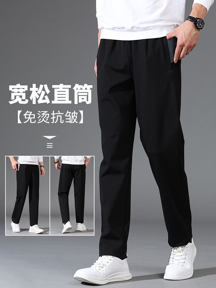 Pants winter fleece men's pants slim straight men's sweatpants versatile pants spring and autumn sweatpants loose slacks