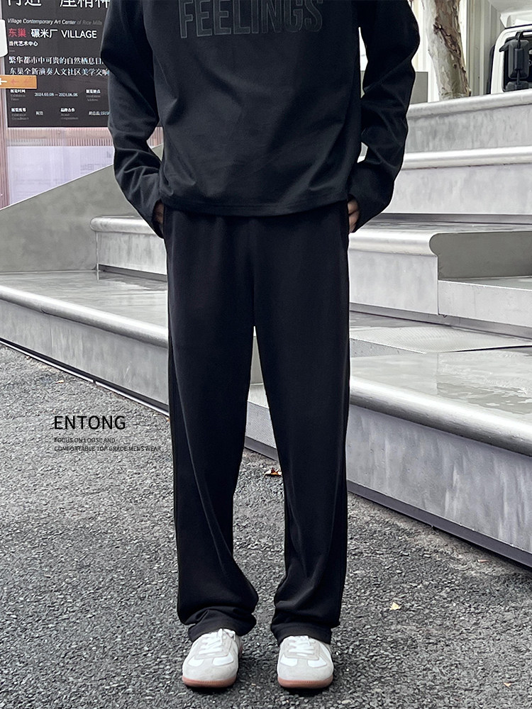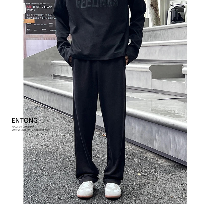 Entong Dark Blue Casual Straight Pants Sweatpants Boys' Sweatpants American Drape Loose Explosive Long Pants