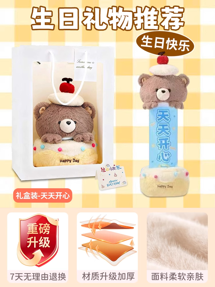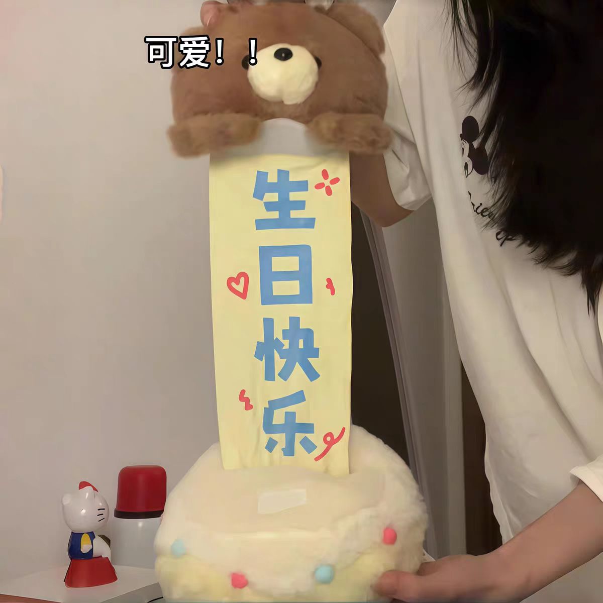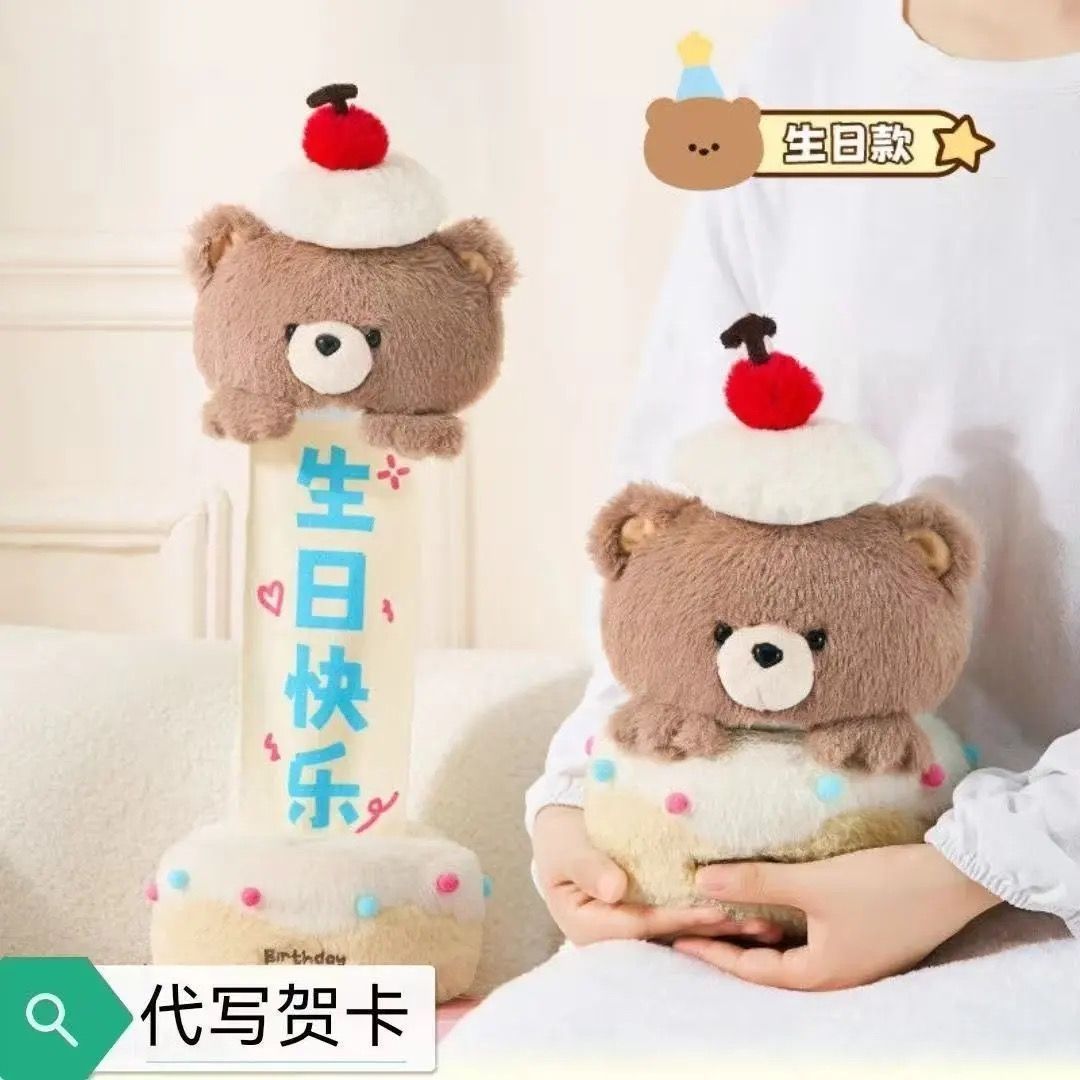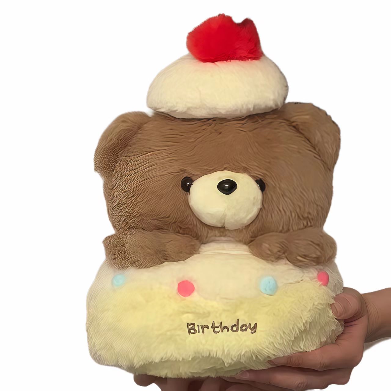 Pull open bear cake plush toy ragdoll doll happy birthday draw bear doll birthday gift girl