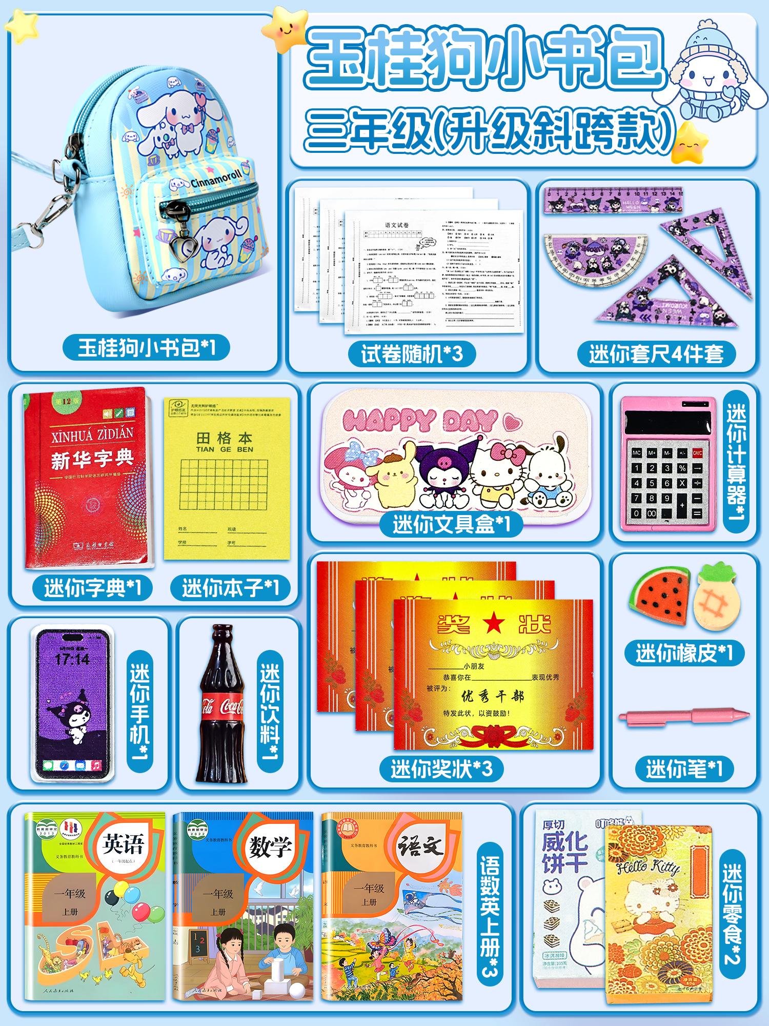 Mini small school bag set birthday gift children's crossbody bag miniature stationery toy girl mini super small bag