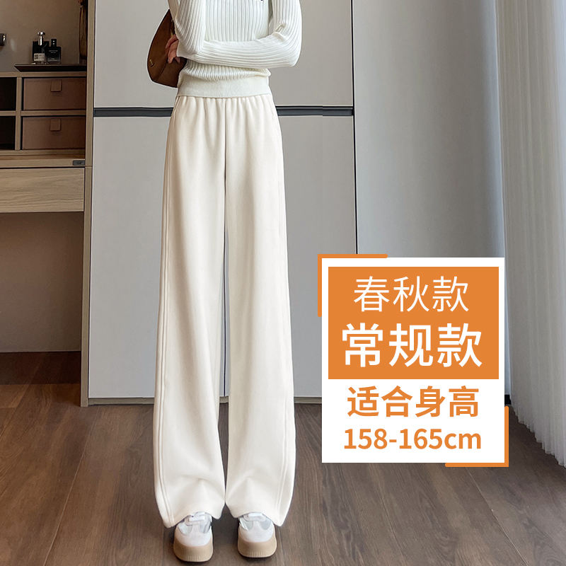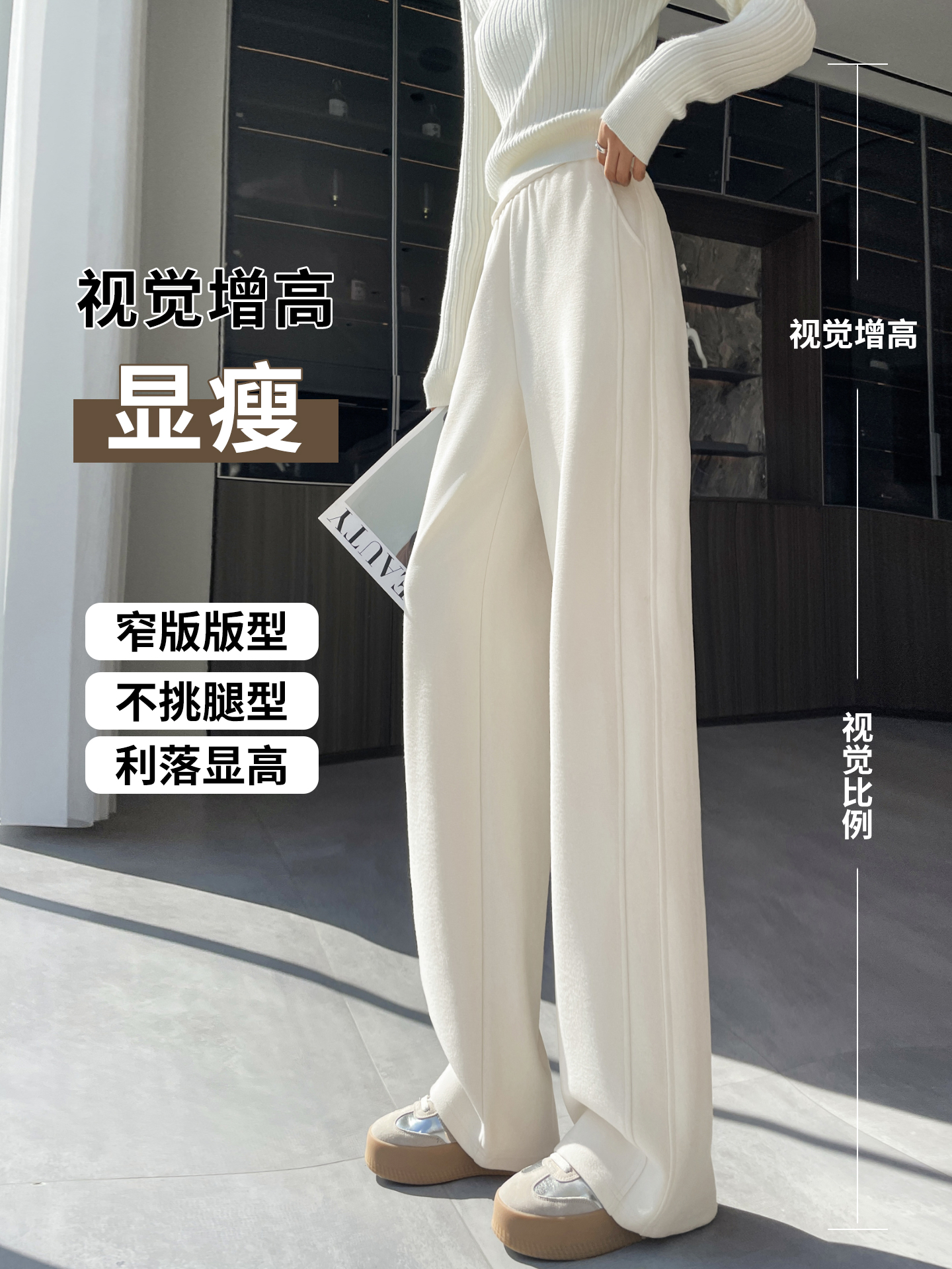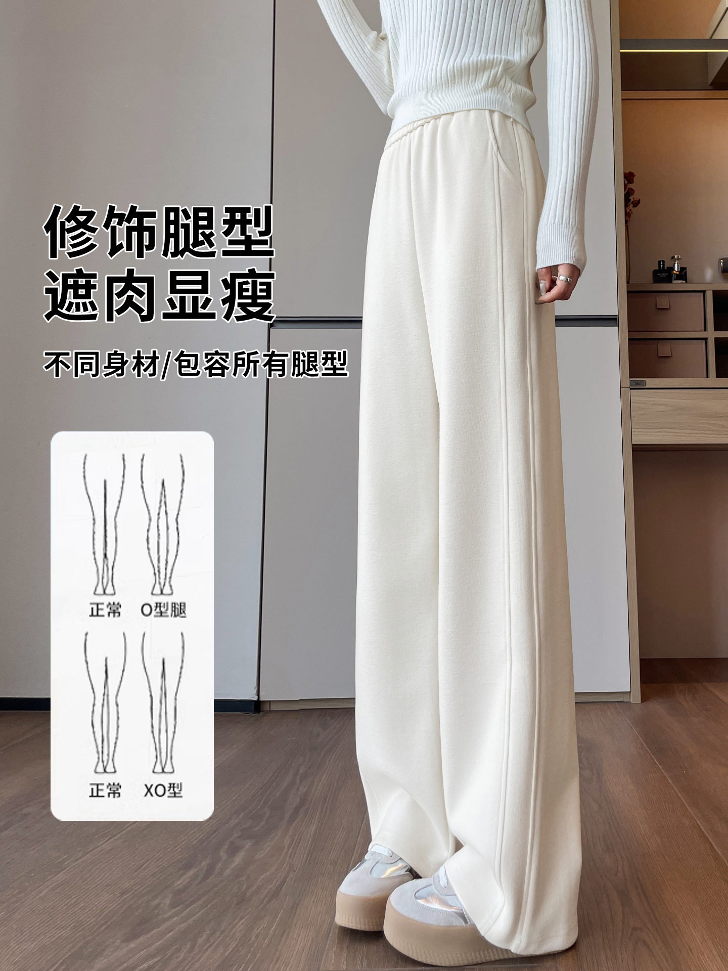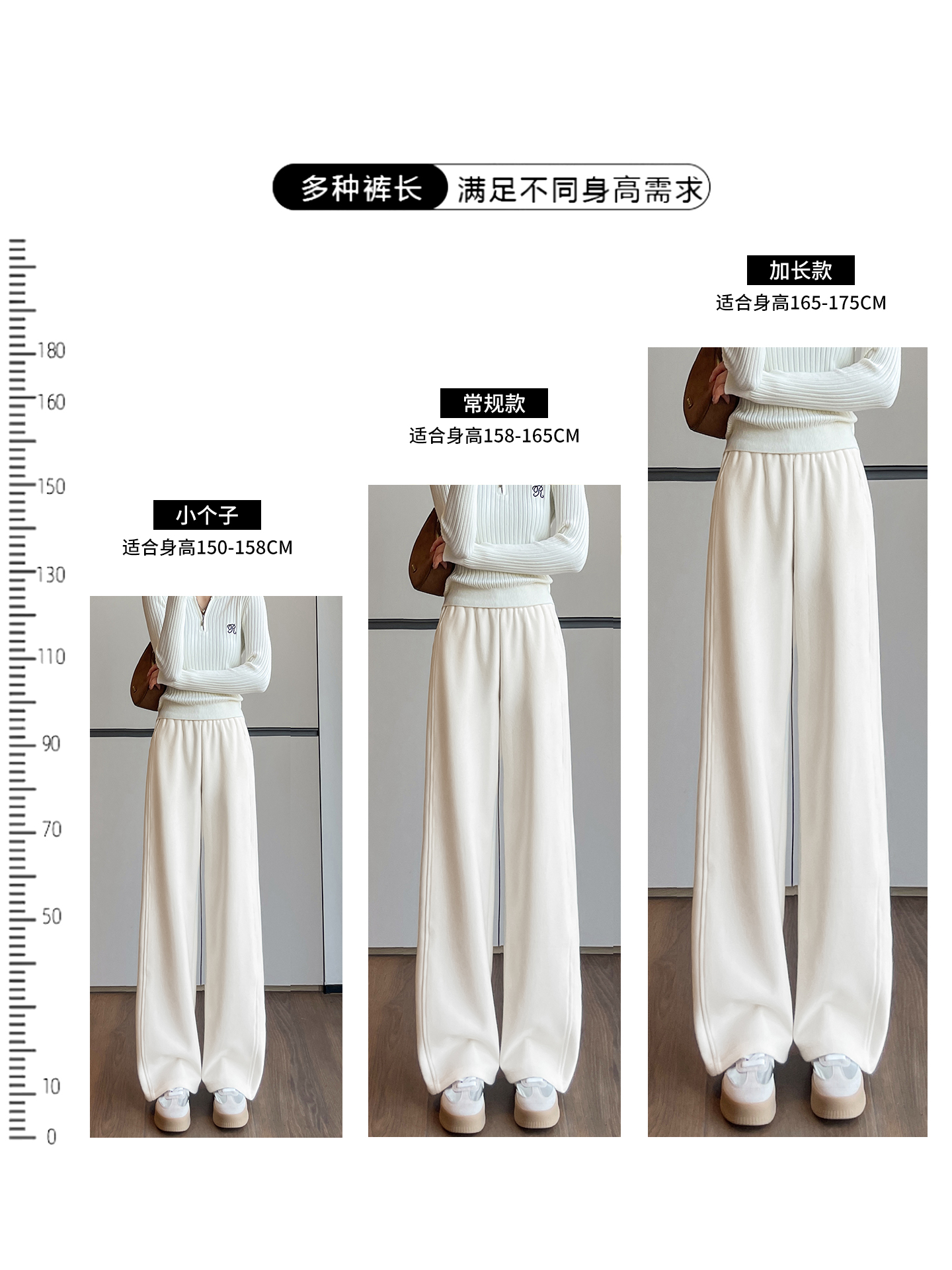 Off-white glutinous rice wide-leg pants women's autumn and winter 2025 new 175 tall elongated fleece narrow straight-leg pants