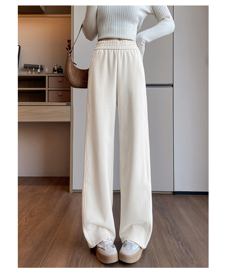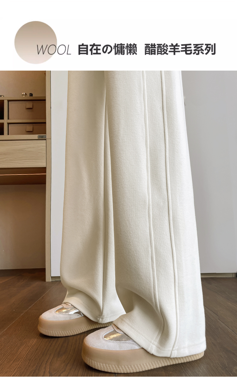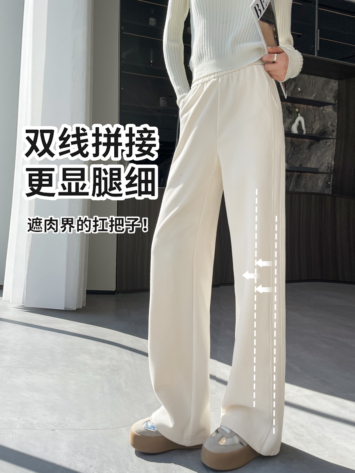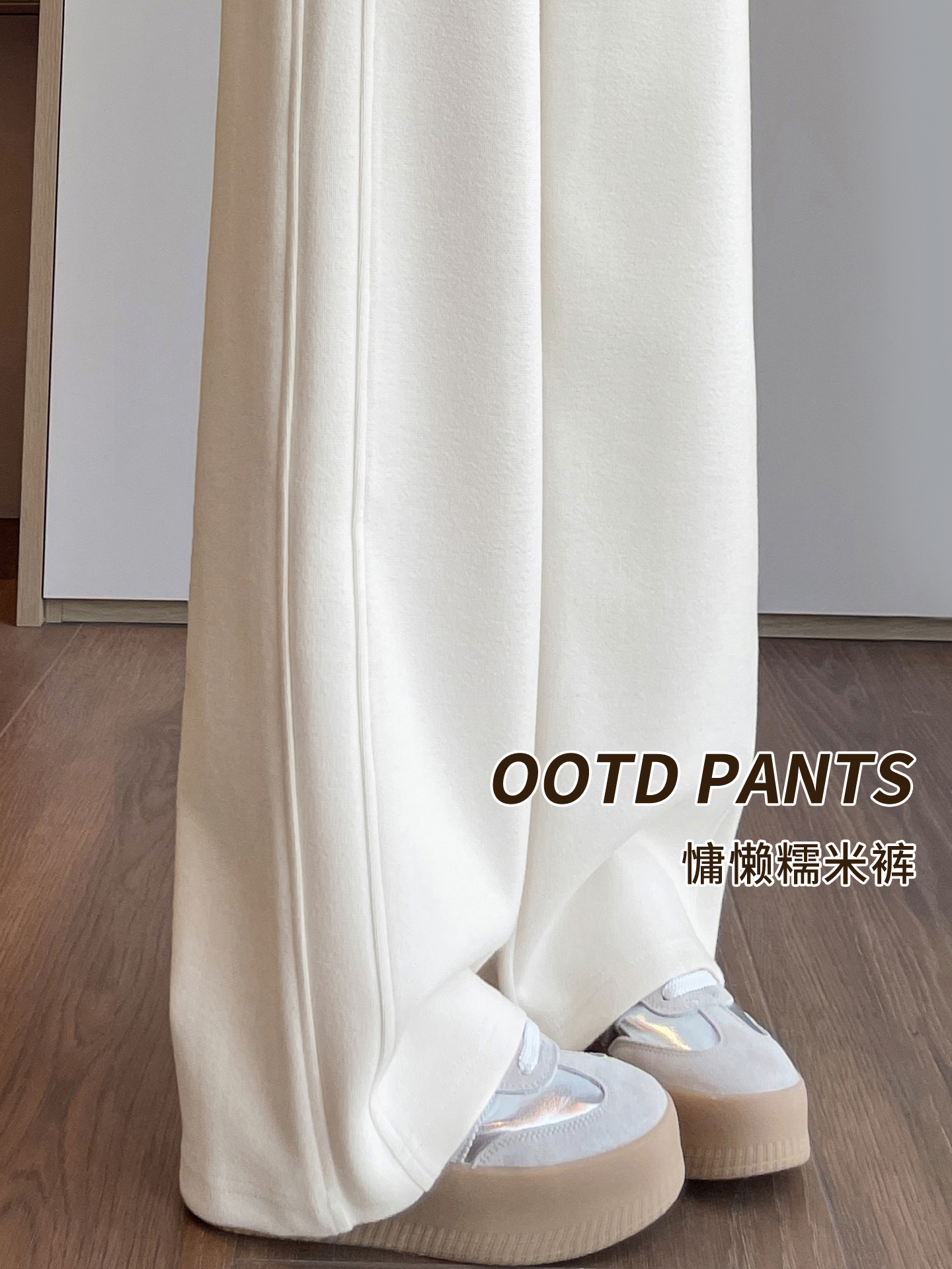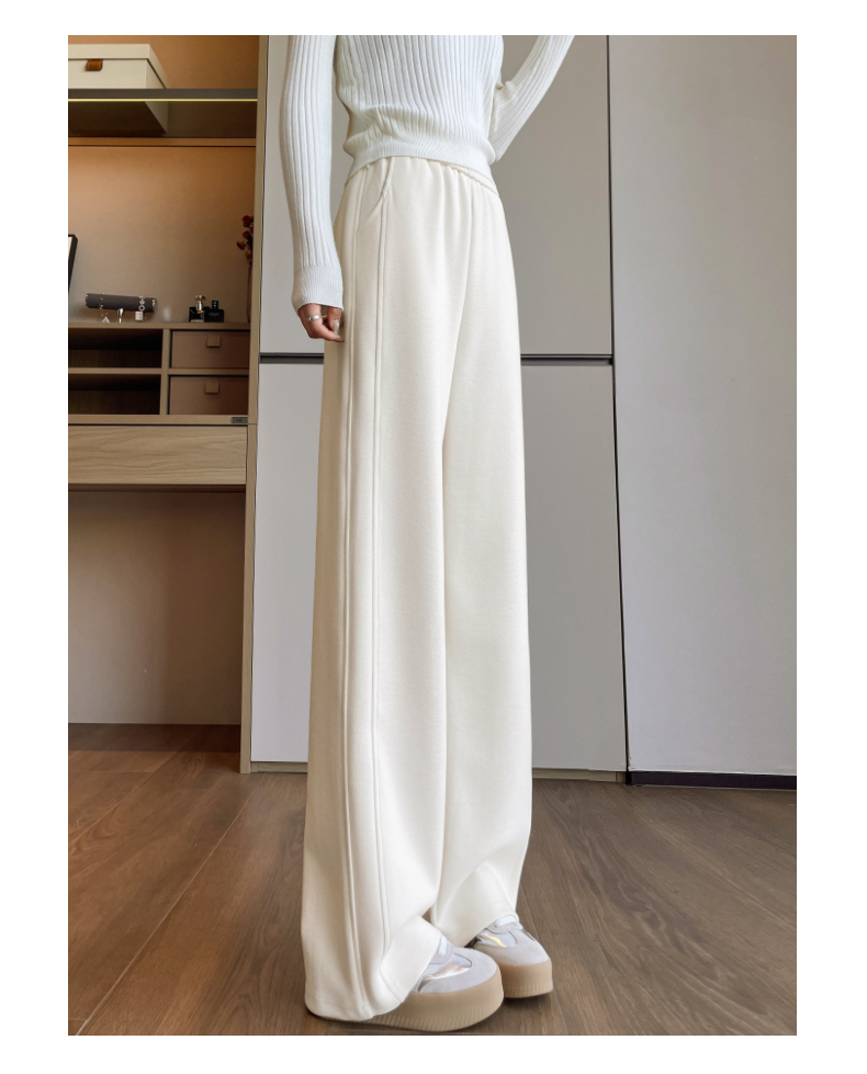 Off-white glutinous rice wide-leg pants women's autumn and winter 2025 new 175 tall elongated fleece narrow straight-leg pants