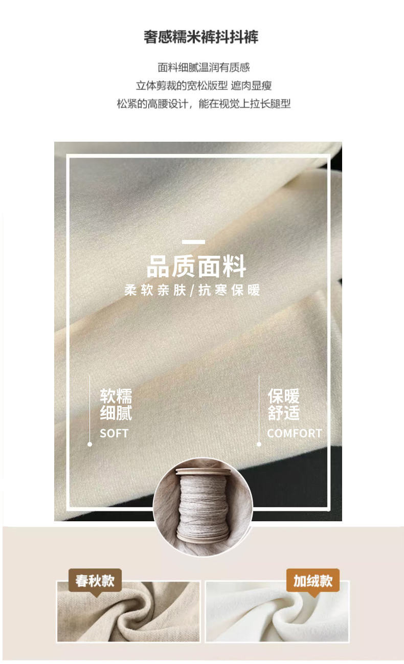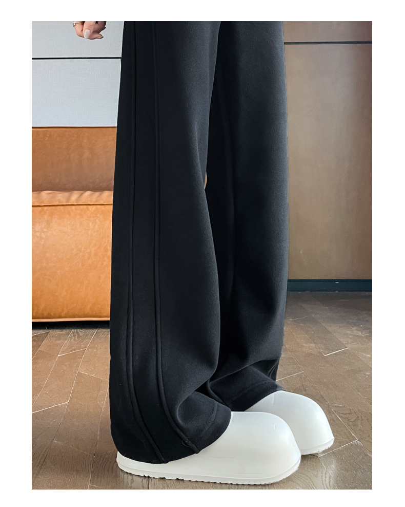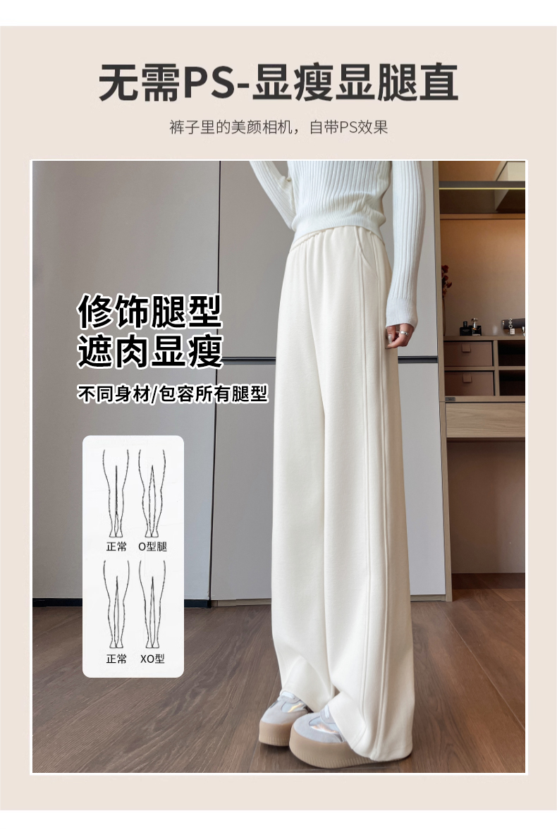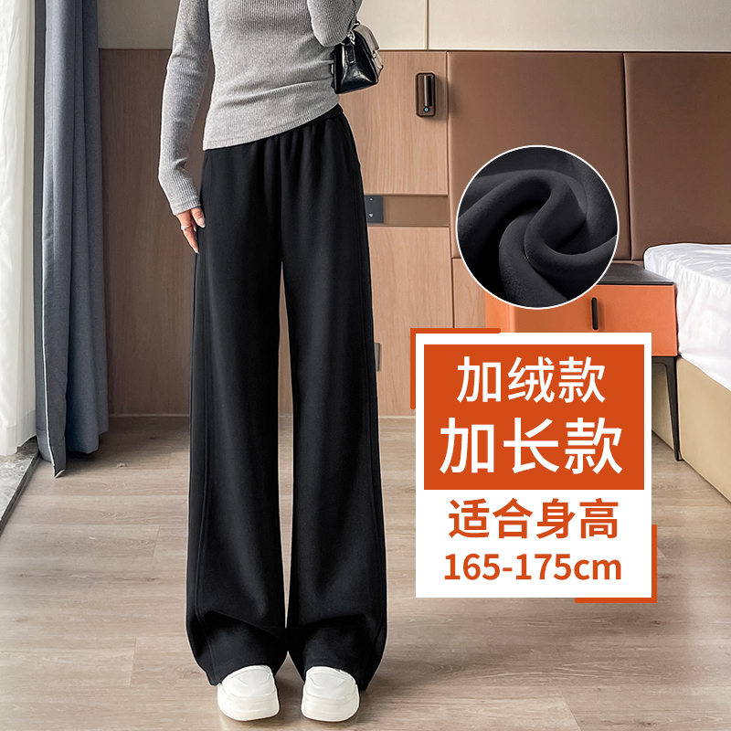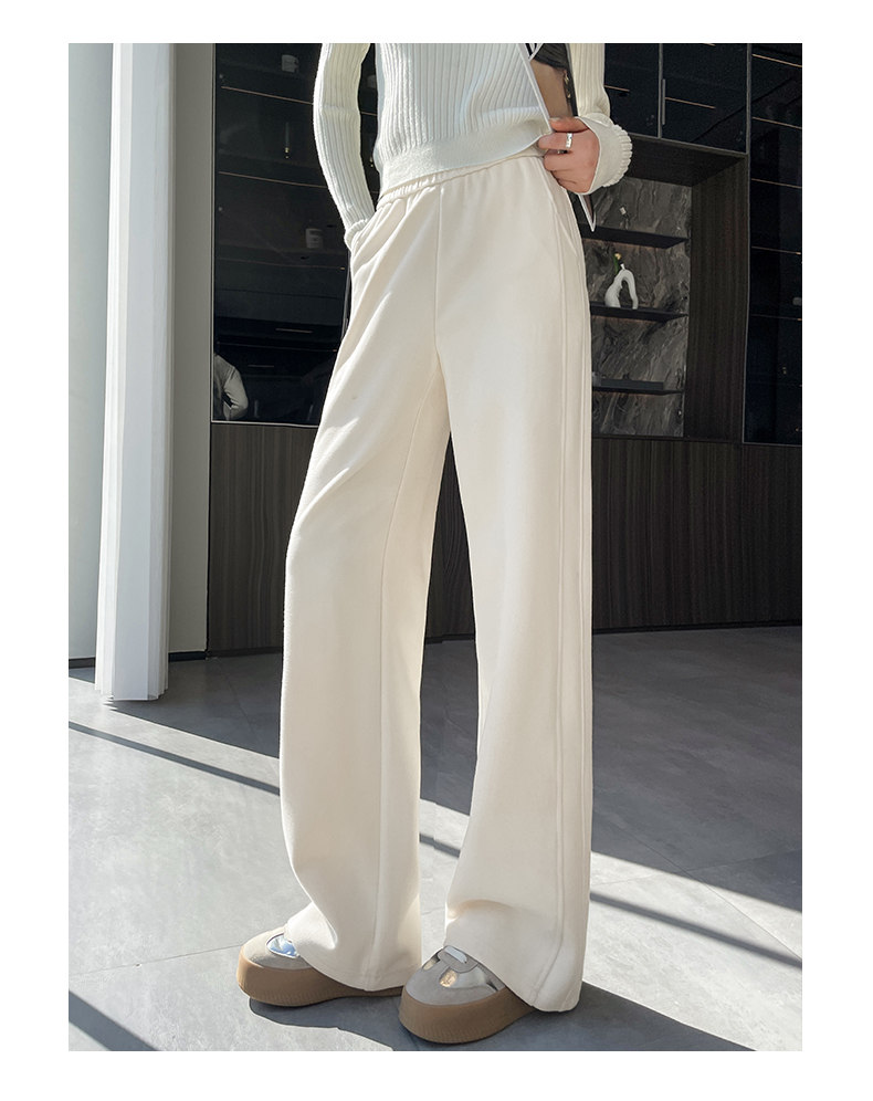 Off-white glutinous rice wide-leg pants women's autumn and winter 2025 new 175 tall elongated fleece narrow straight-leg pants