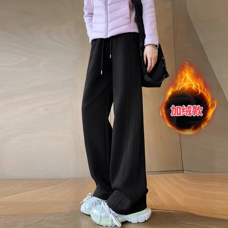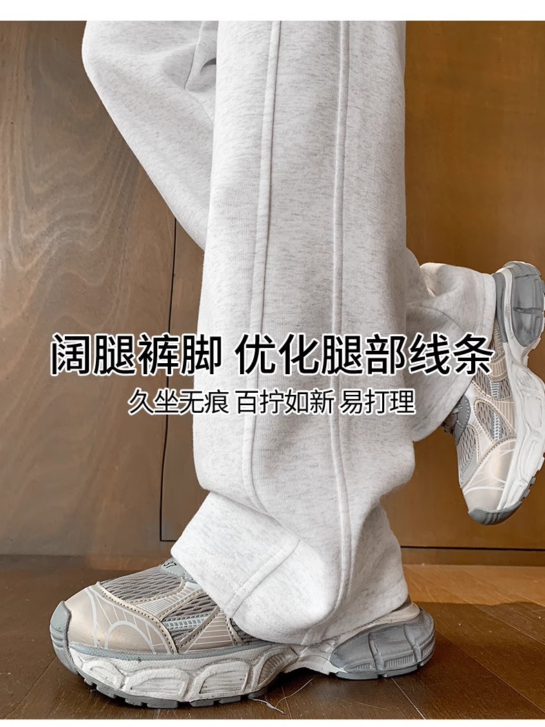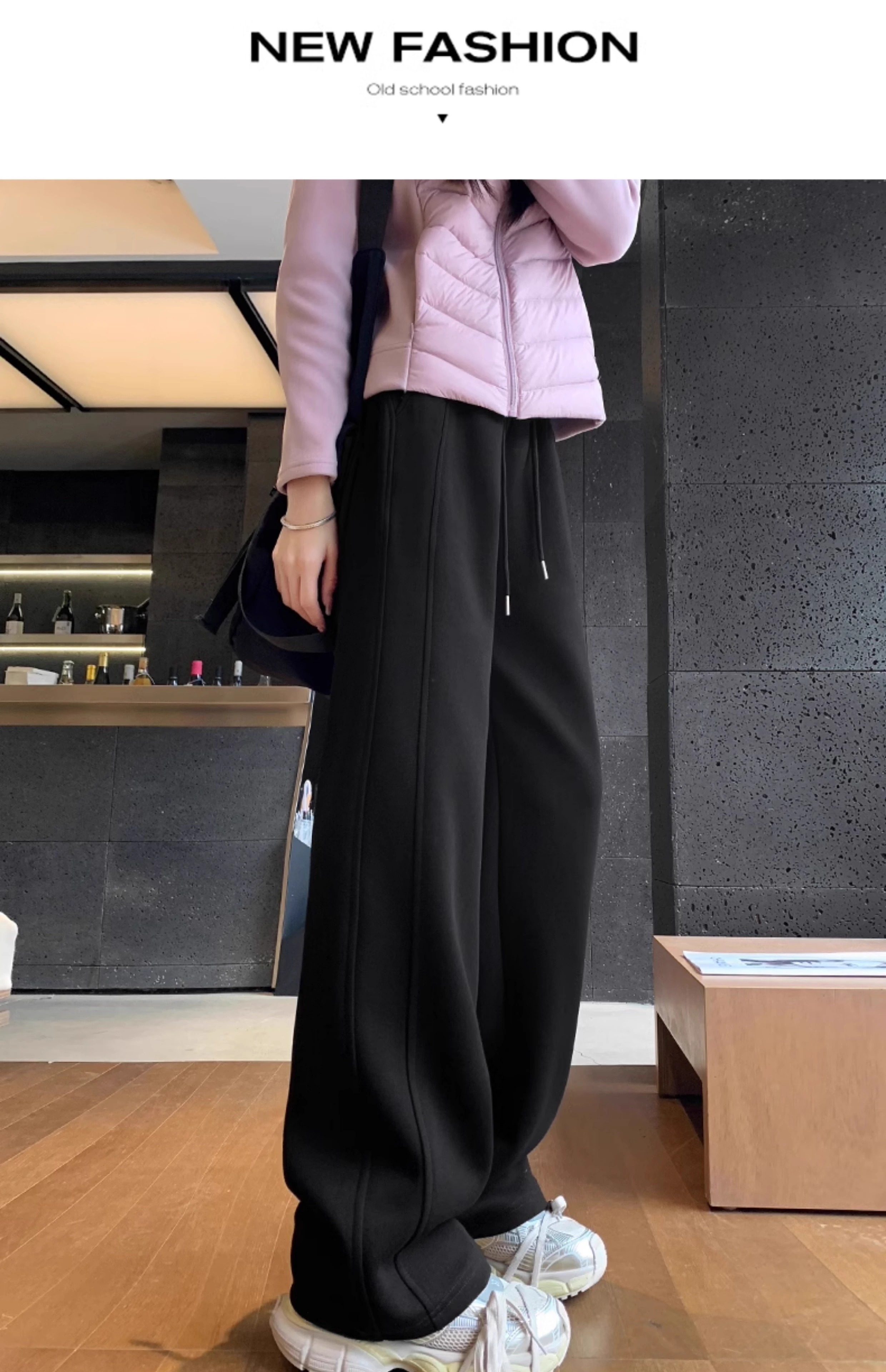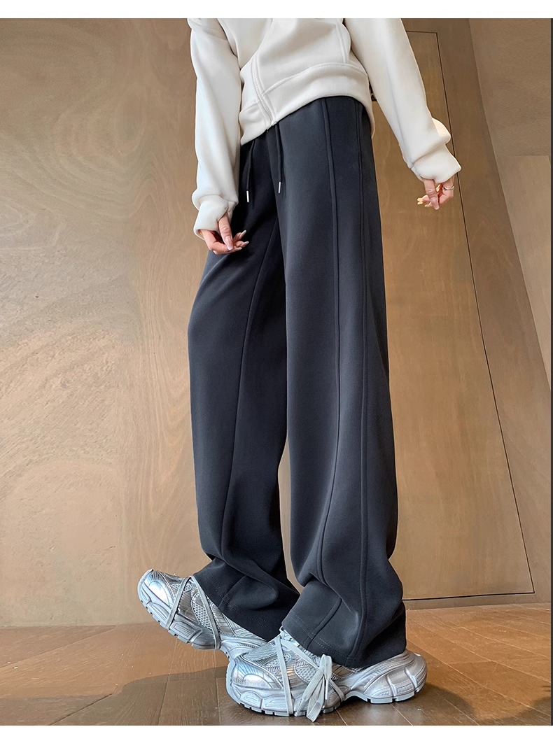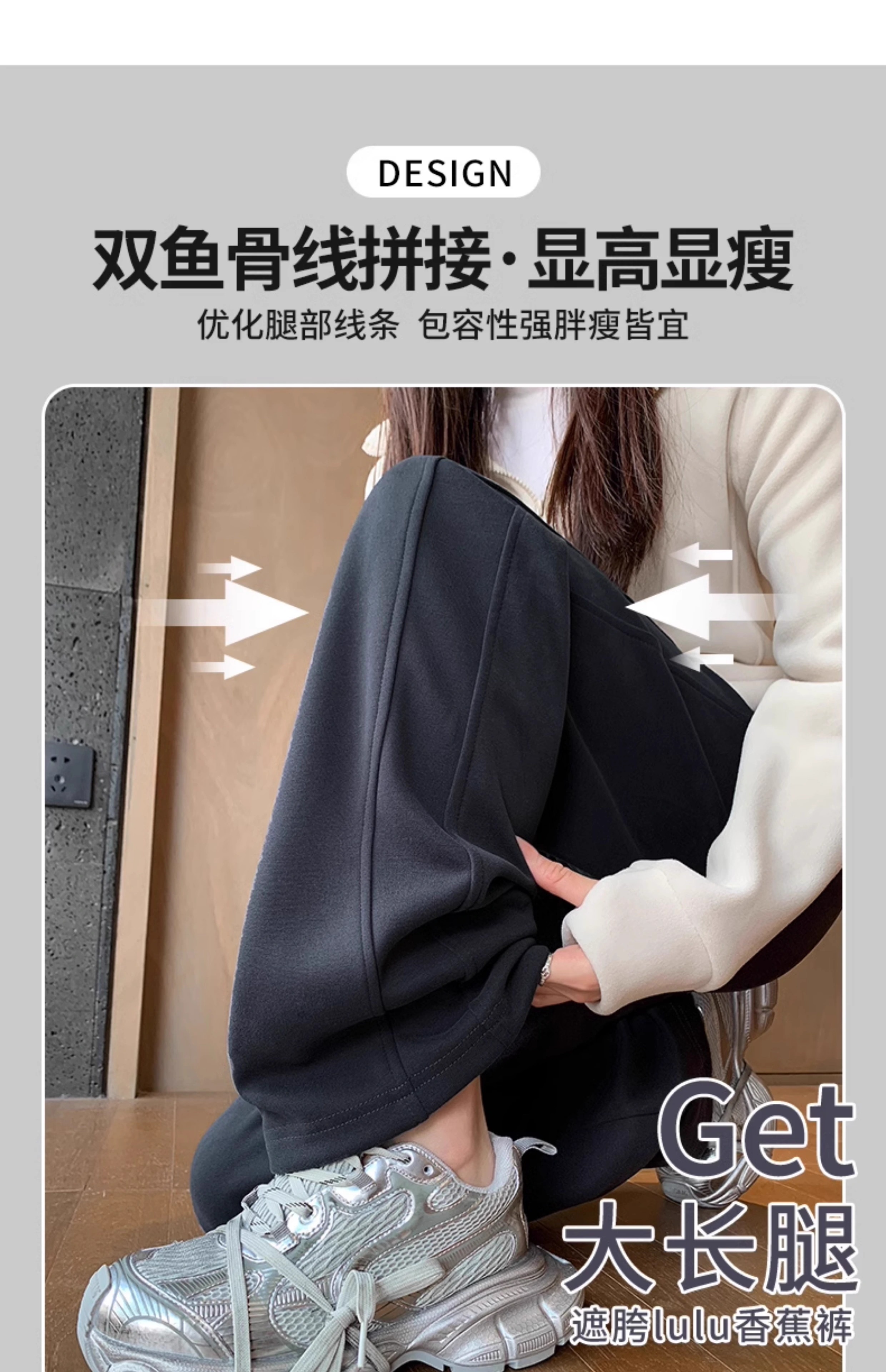 Dark gray banana wide-leg pants, women's plus size autumn and winter new casual pants, narrow straight fleece sweatpants