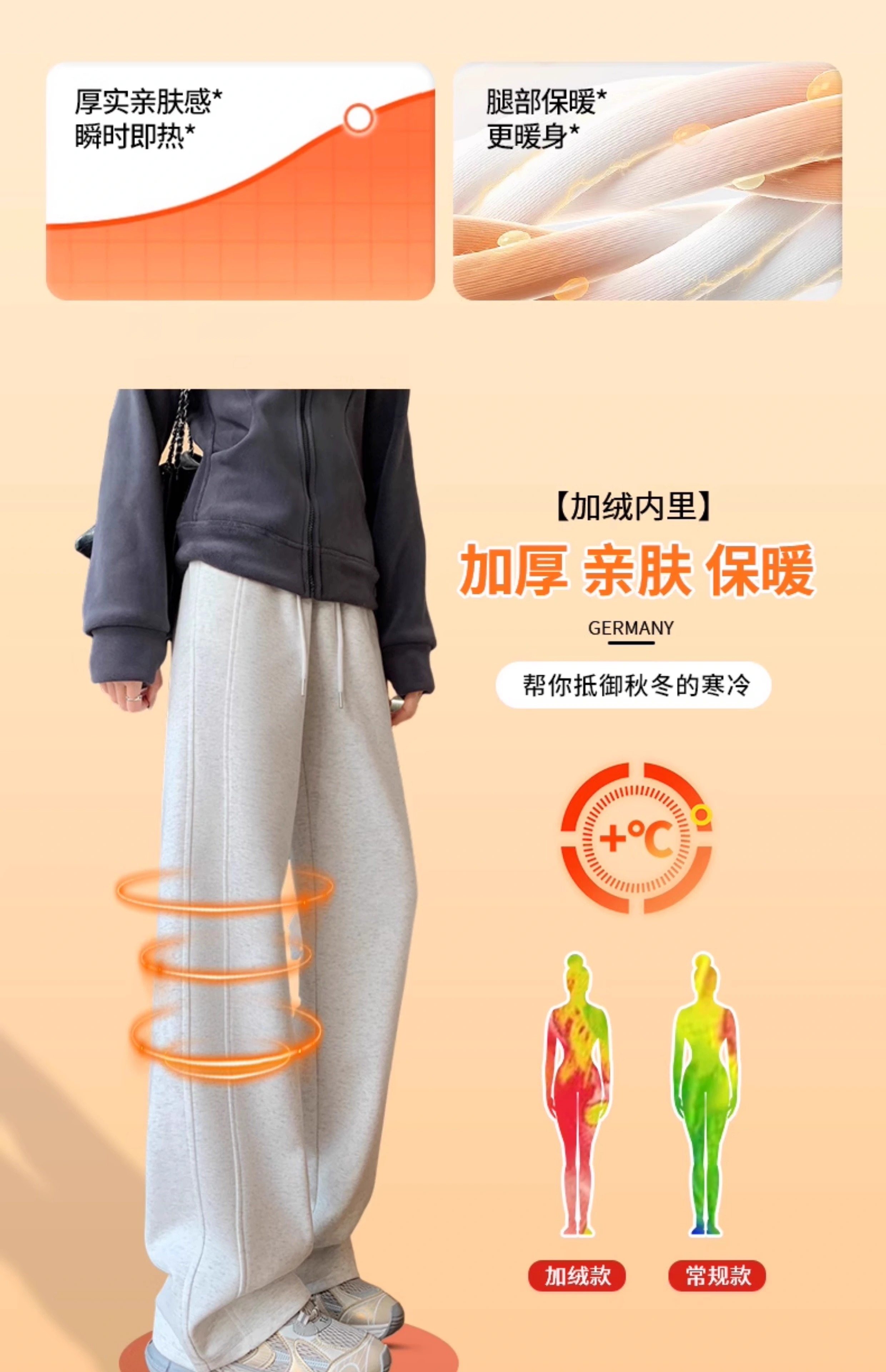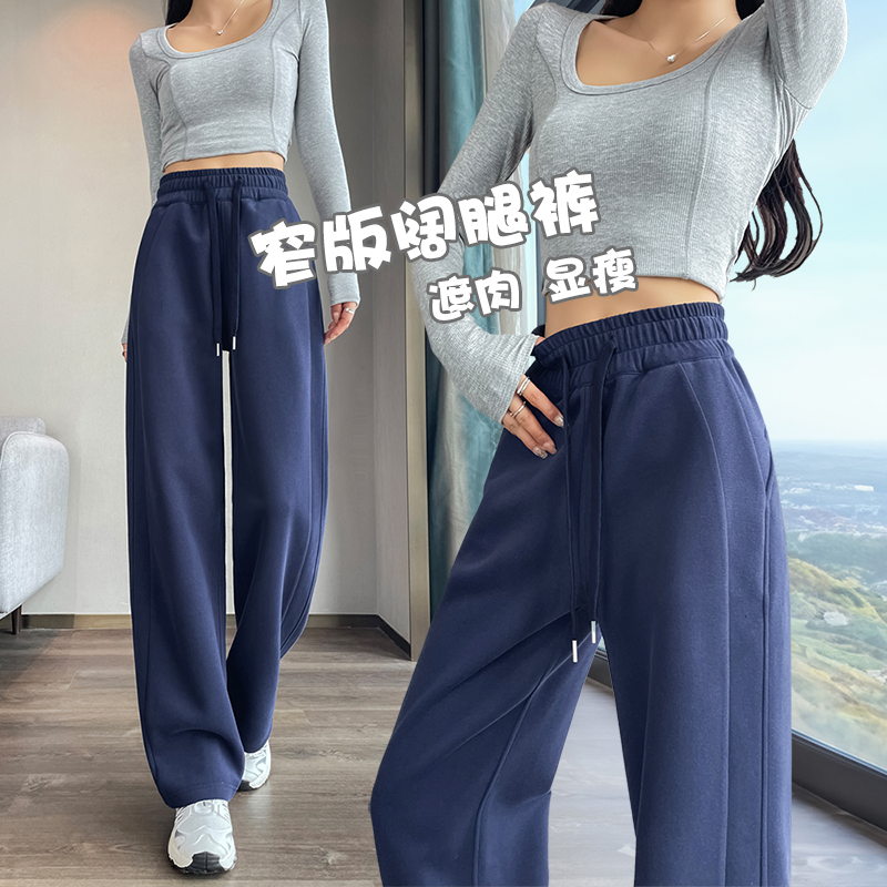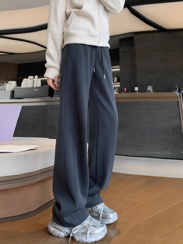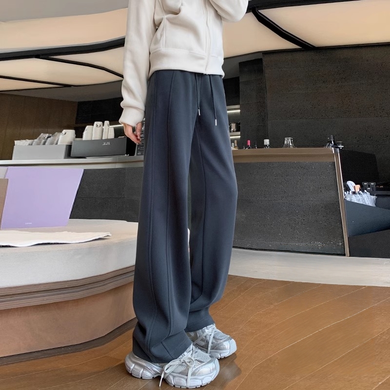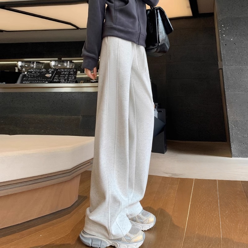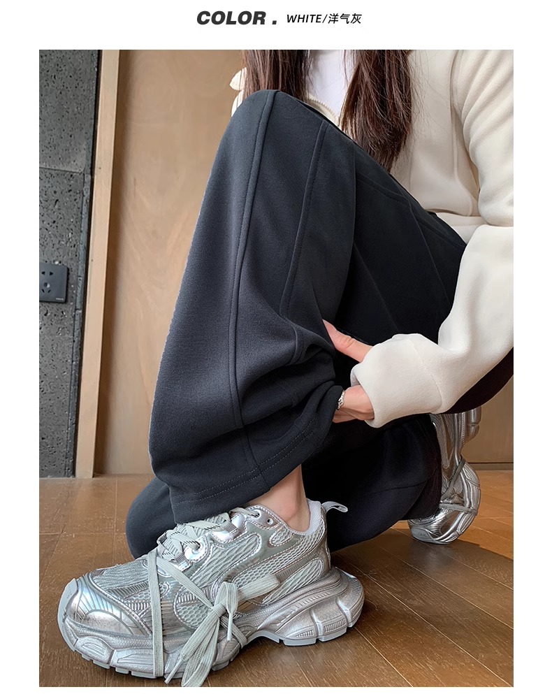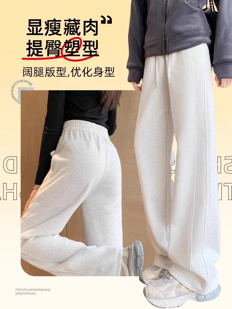 Dark gray banana wide-leg pants, women's plus size autumn and winter new casual pants, narrow straight fleece sweatpants