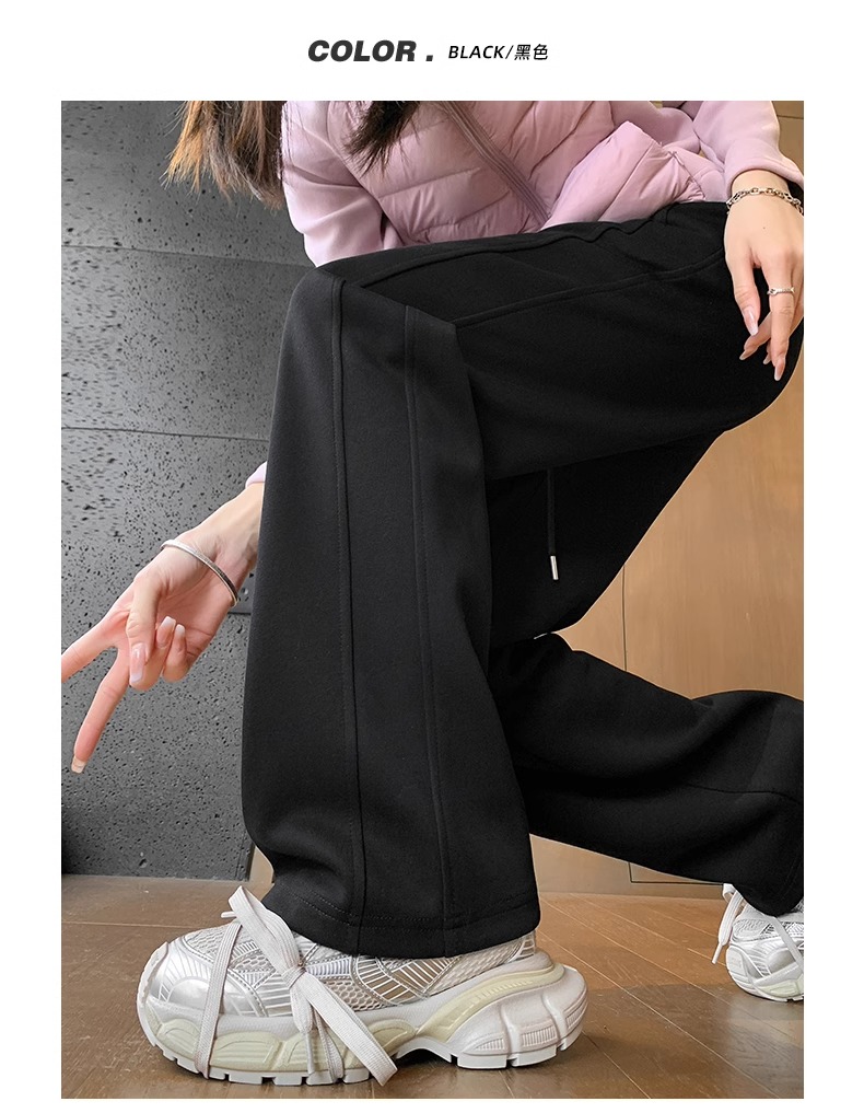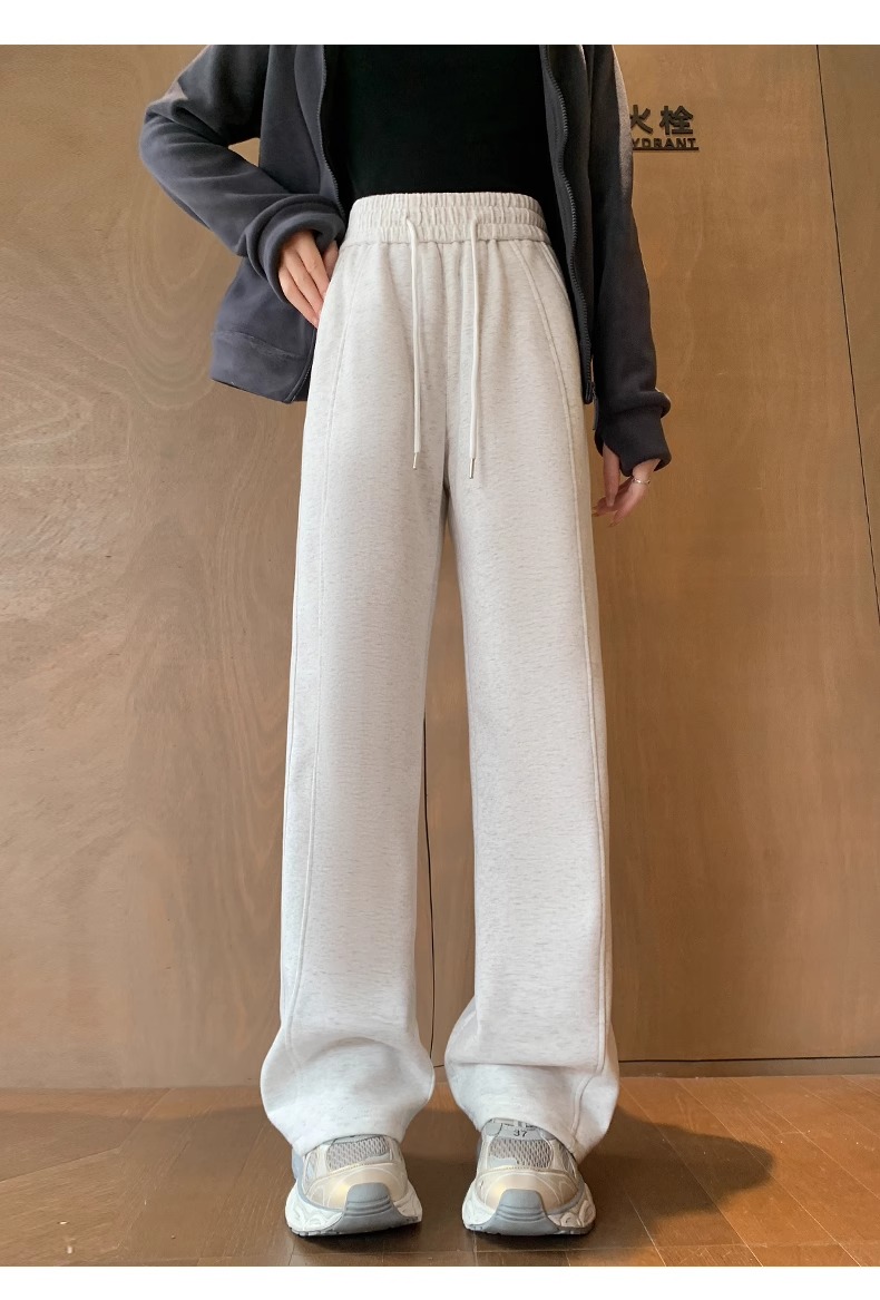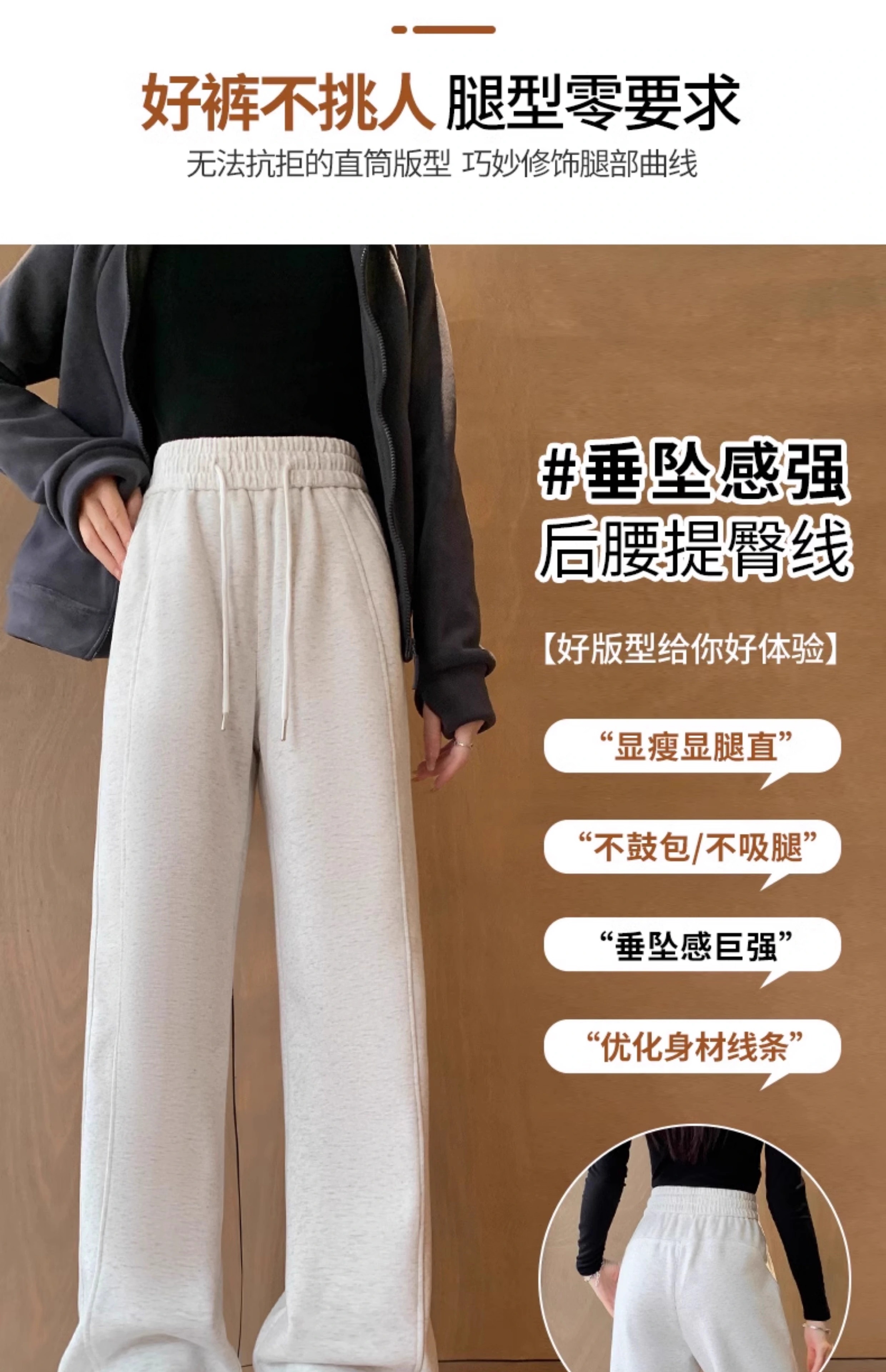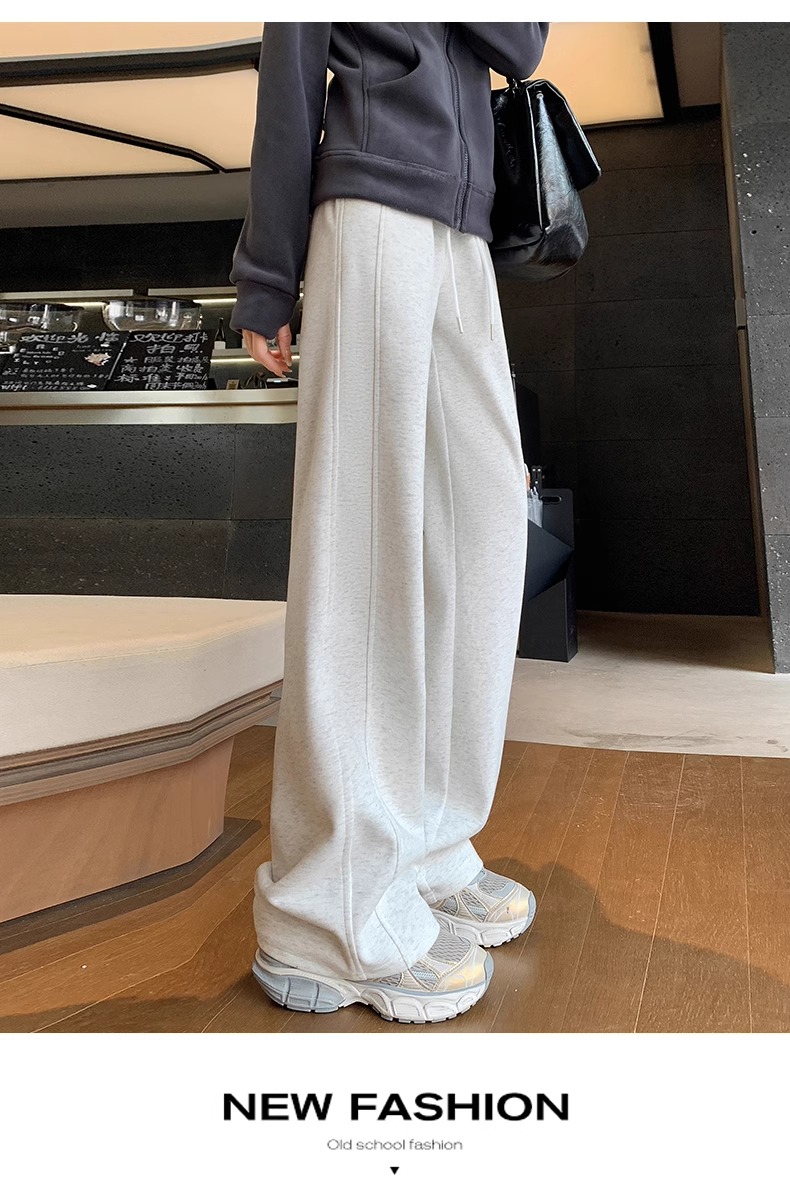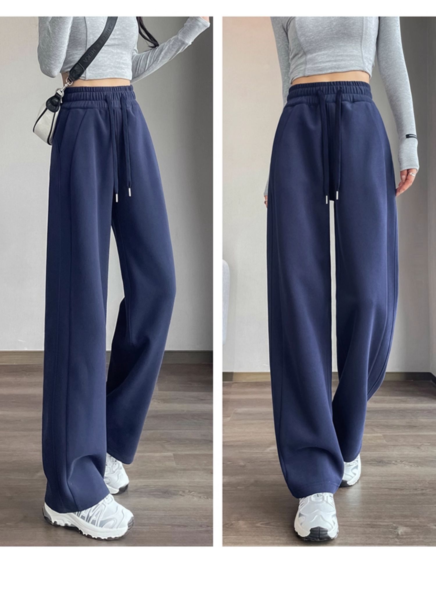 Dark gray banana wide-leg pants, women's plus size autumn and winter new casual pants, narrow straight fleece sweatpants