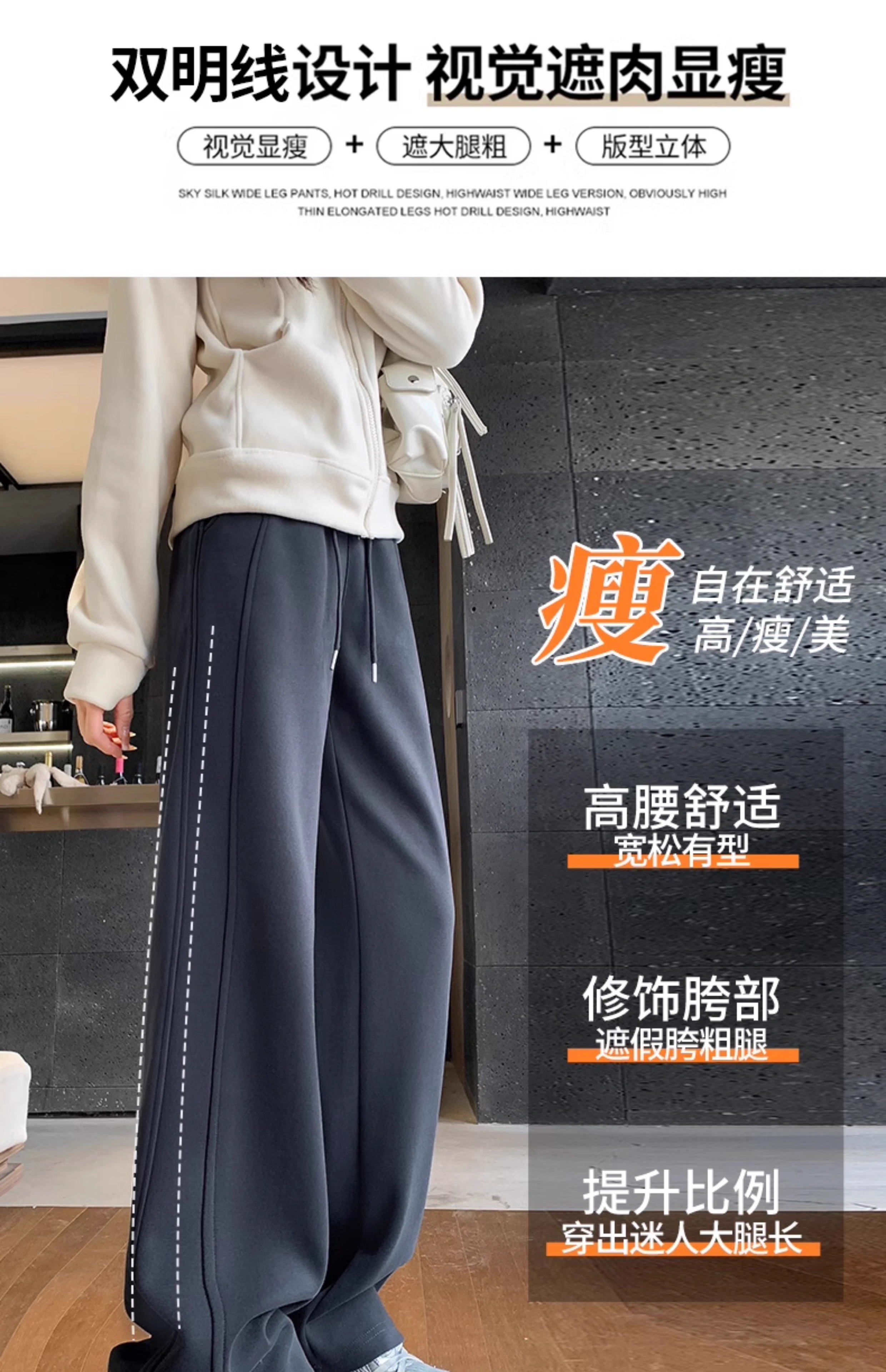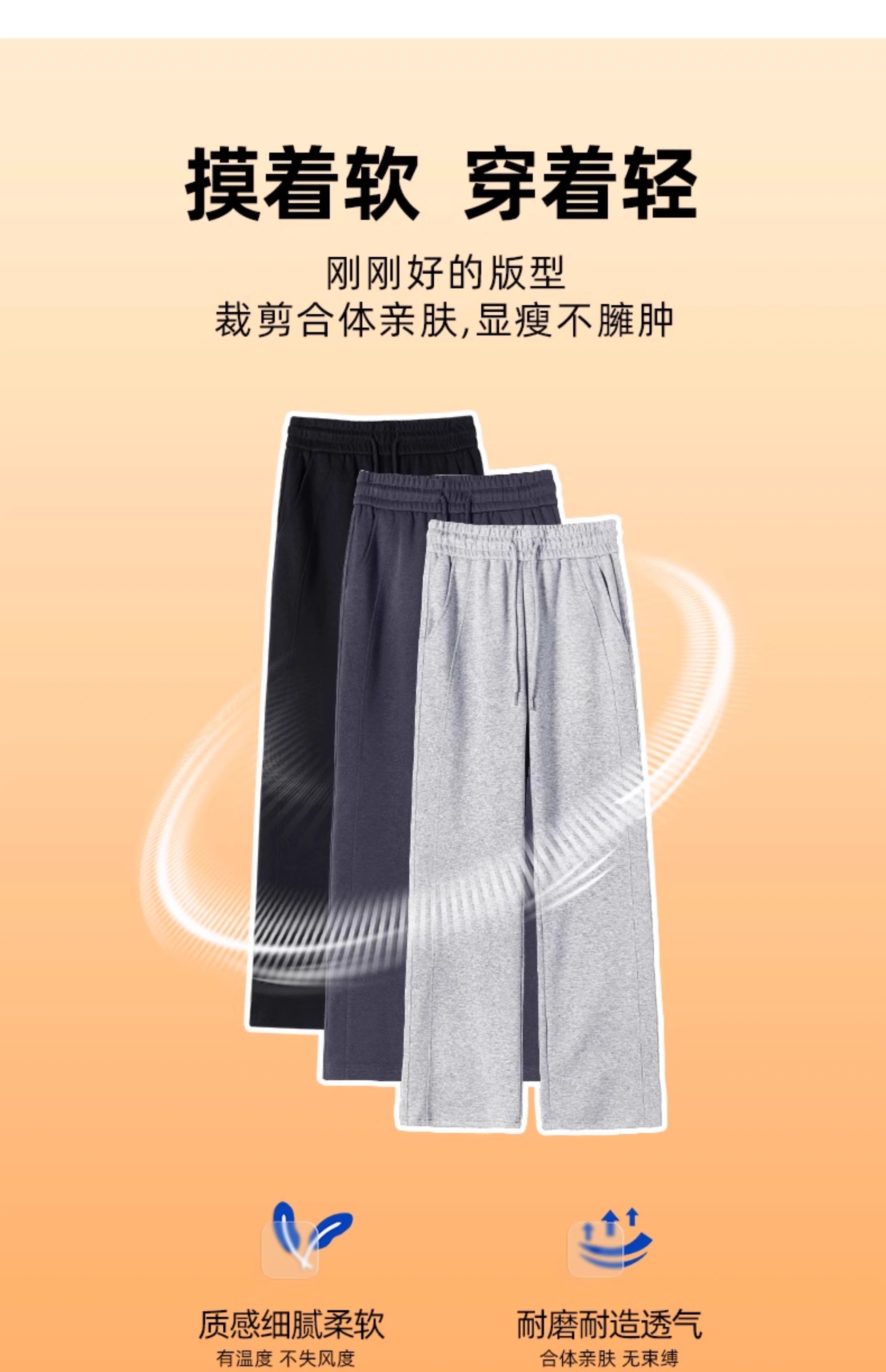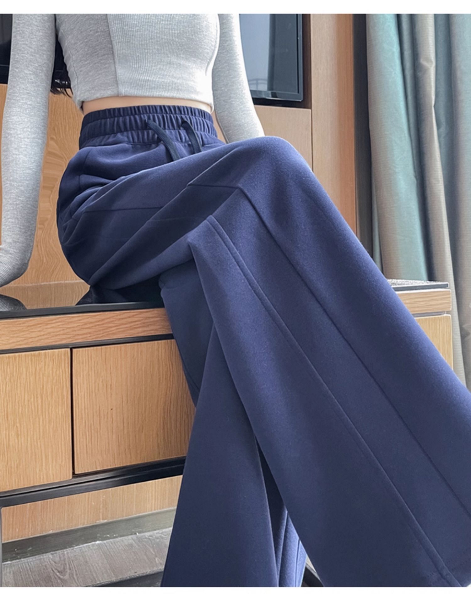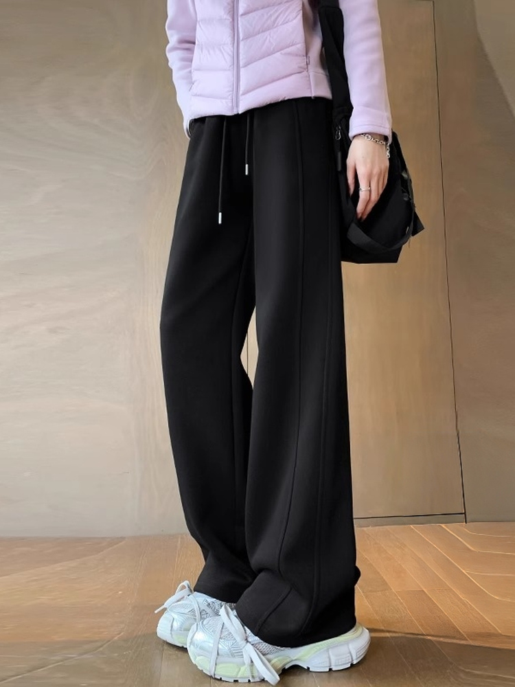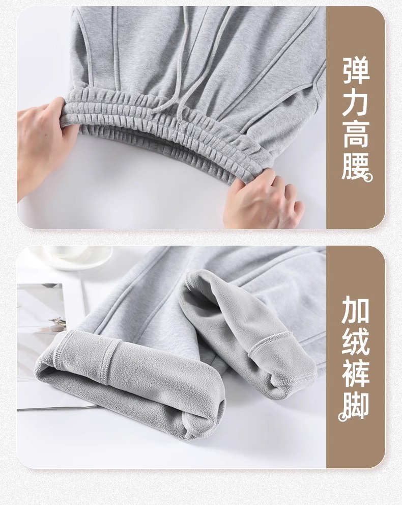 Dark gray banana wide-leg pants, women's plus size autumn and winter new casual pants, narrow straight fleece sweatpants