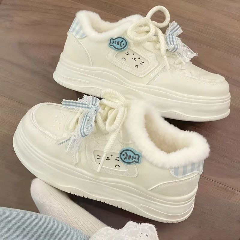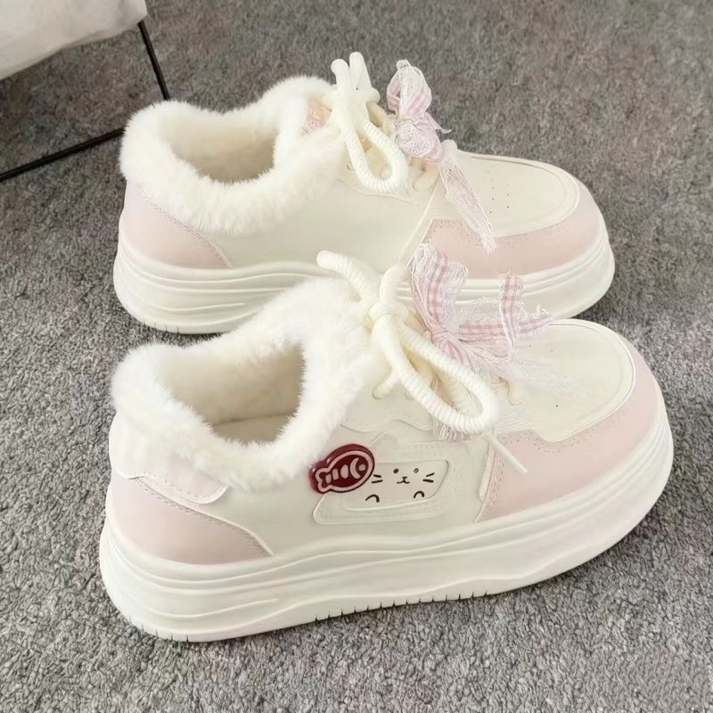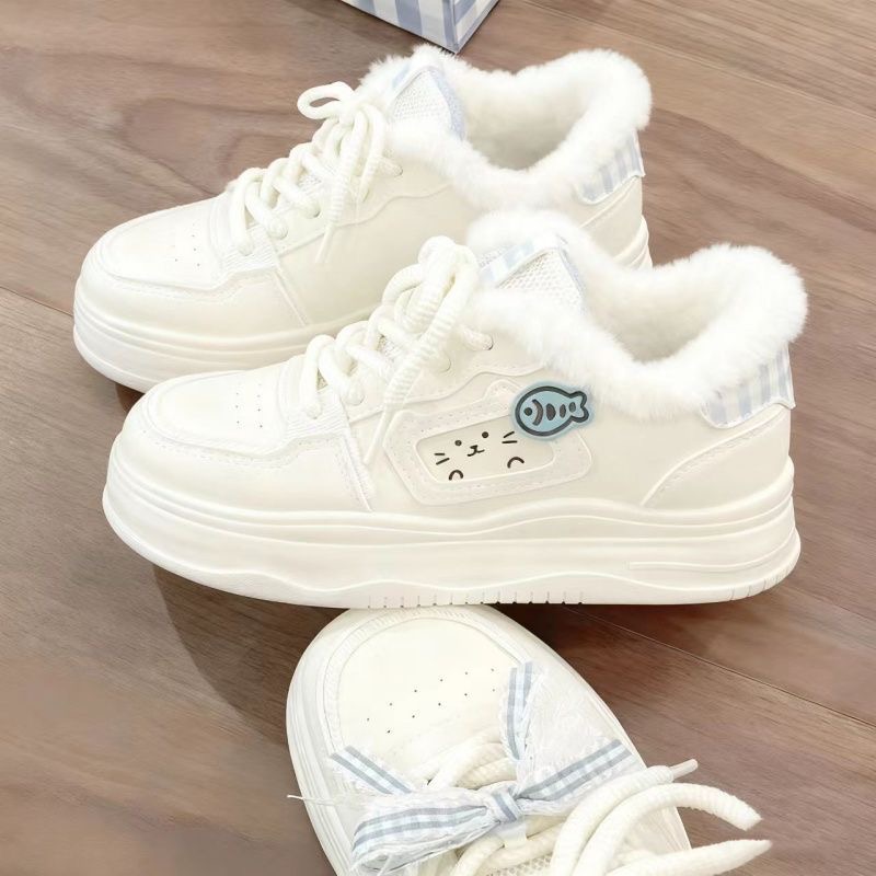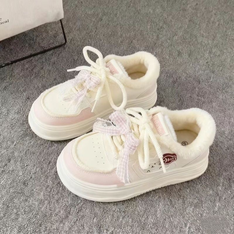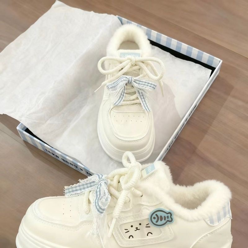 Milk fufu plush white shoes women's cute niche versatile casual sports board shoes 2025 new two-cotton bread shoes