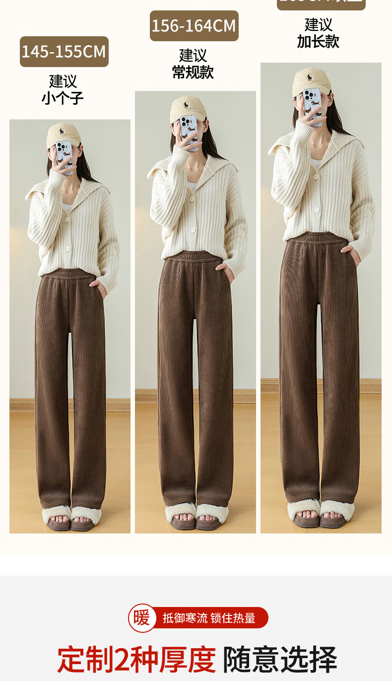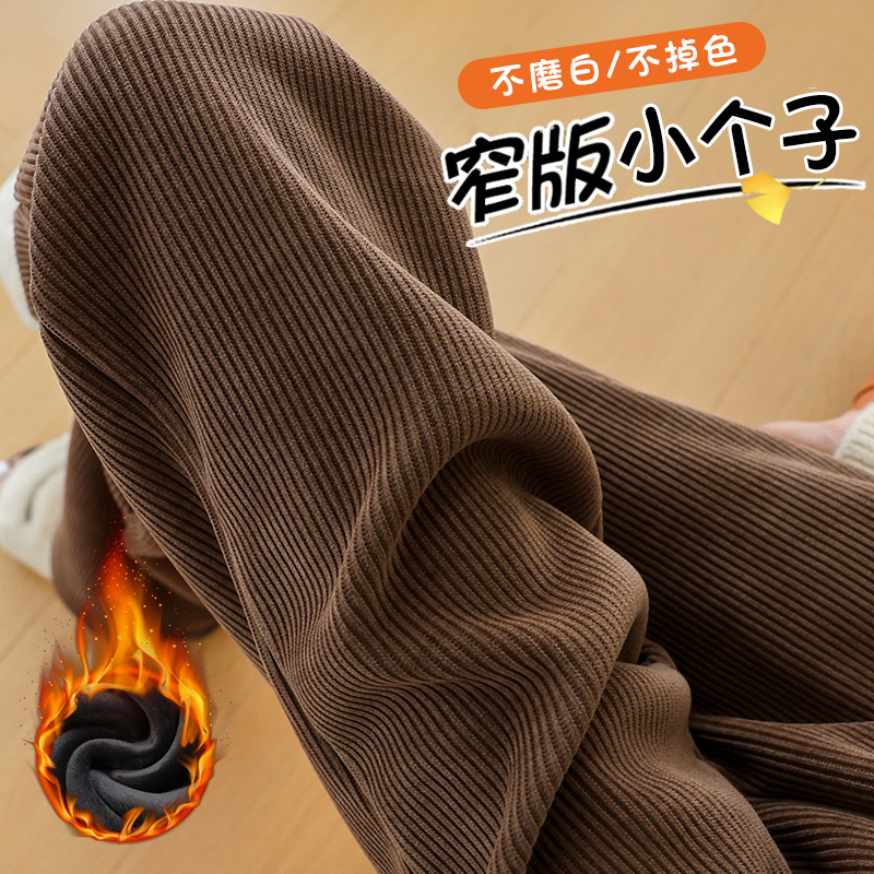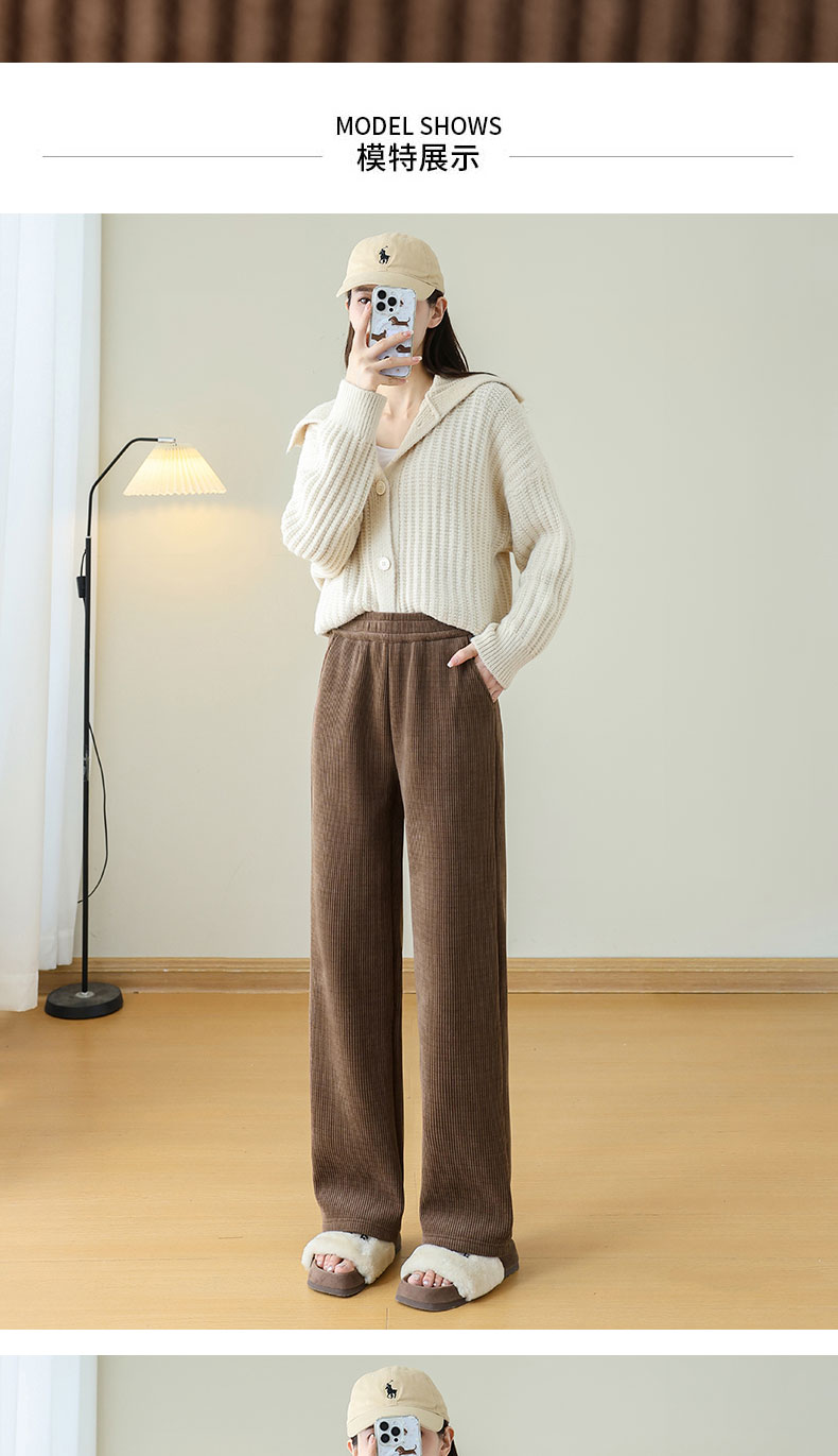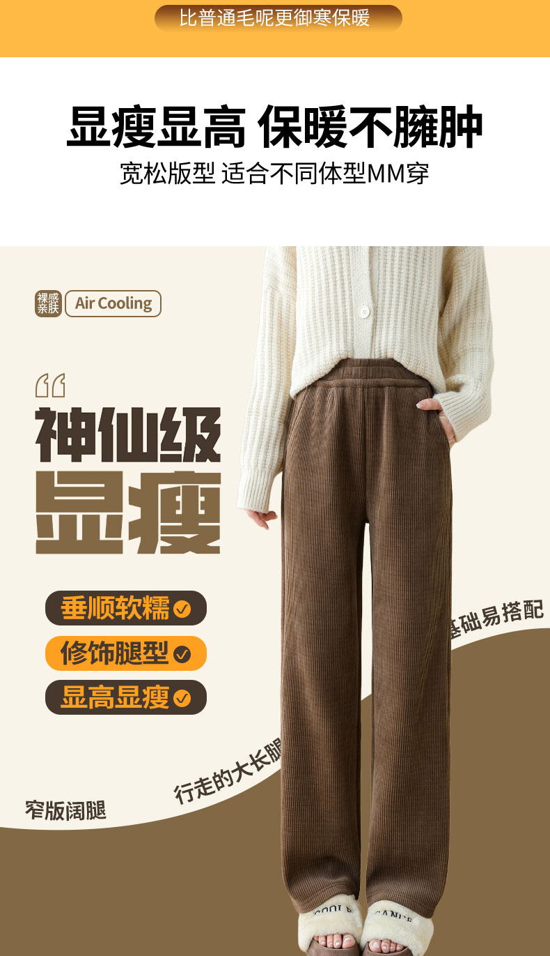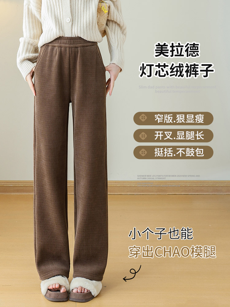La Chabel coffee wide-leg pants for women fall and winter Maillard narrow straight-leg pants with fleece drape corduroy pants