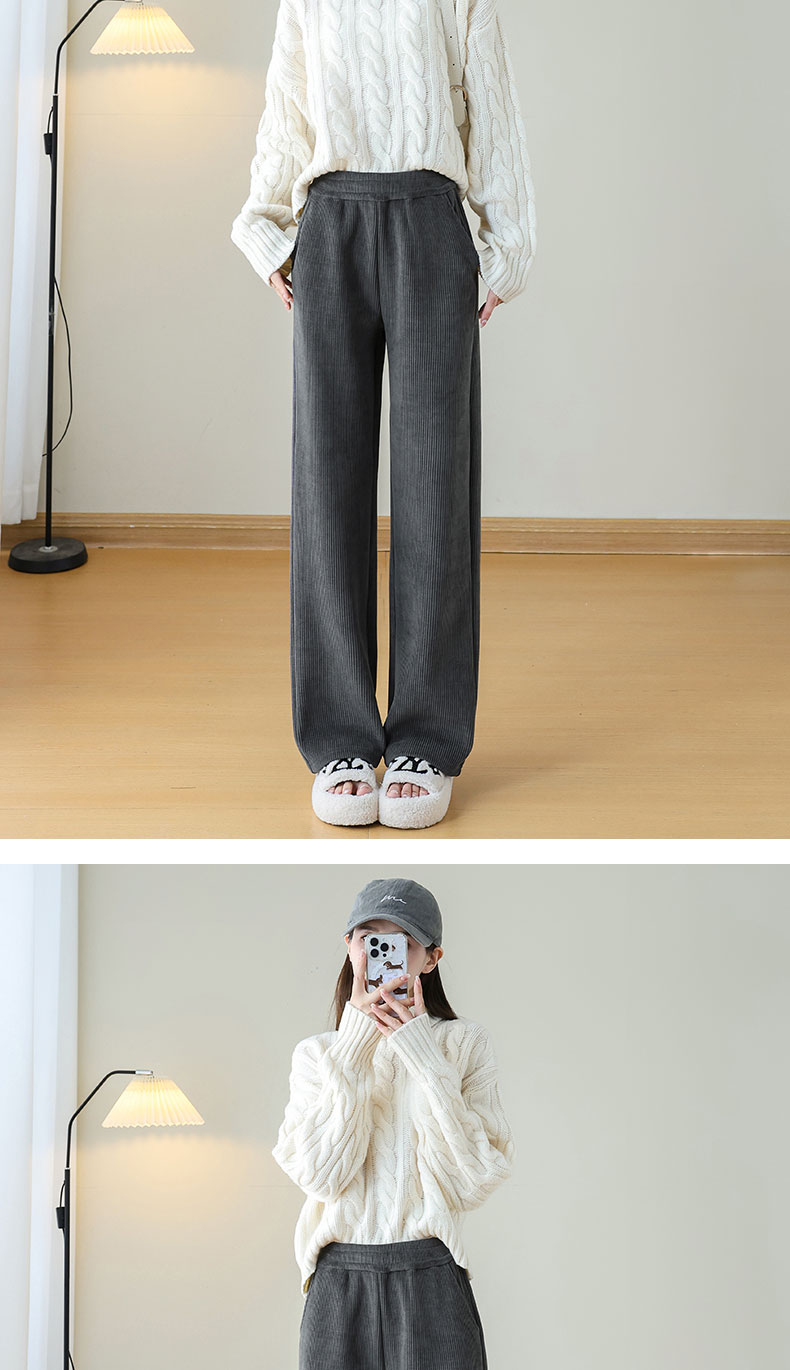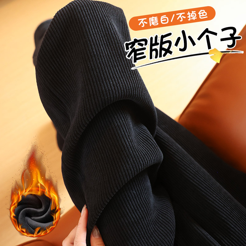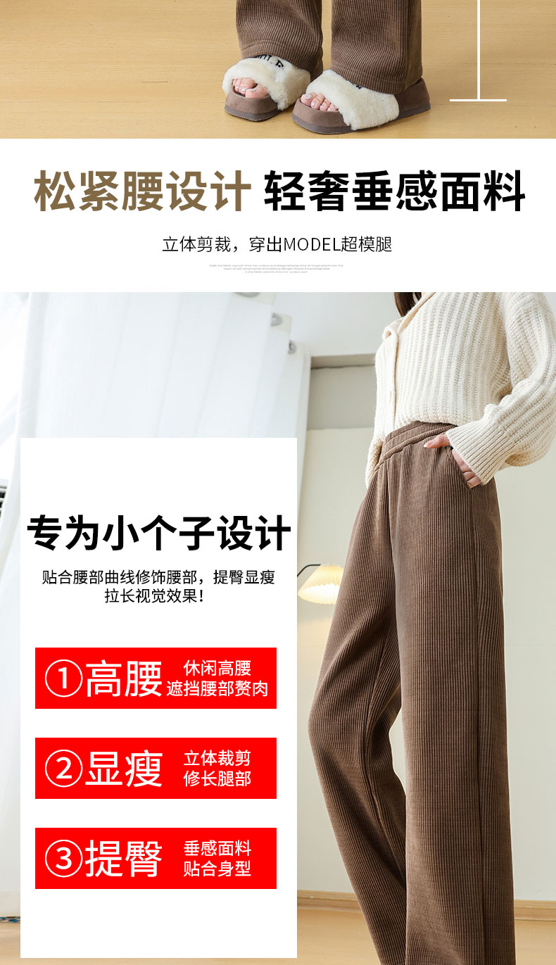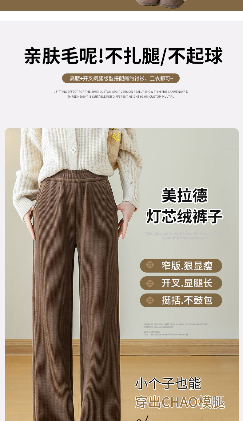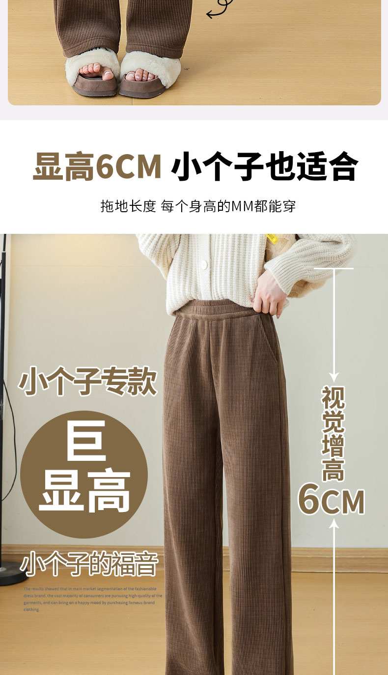 La Chabel coffee wide-leg pants for women fall and winter Maillard narrow straight-leg pants with fleece drape corduroy pants