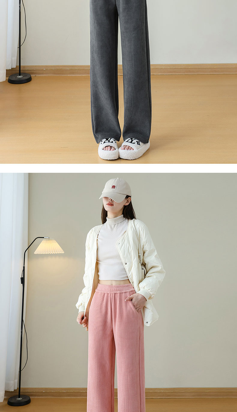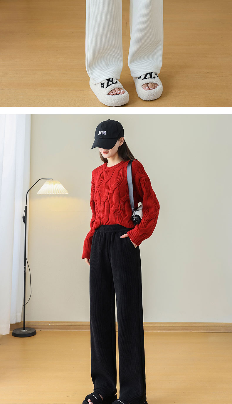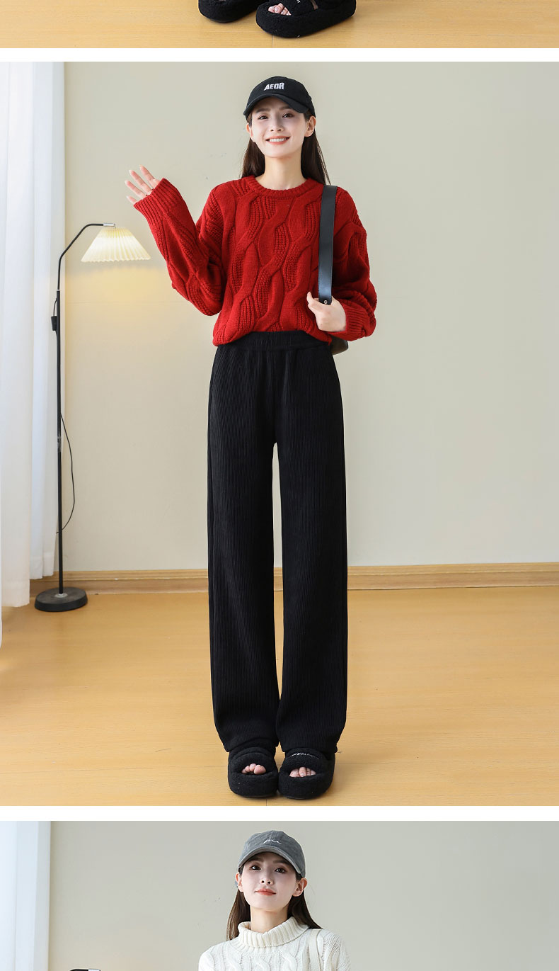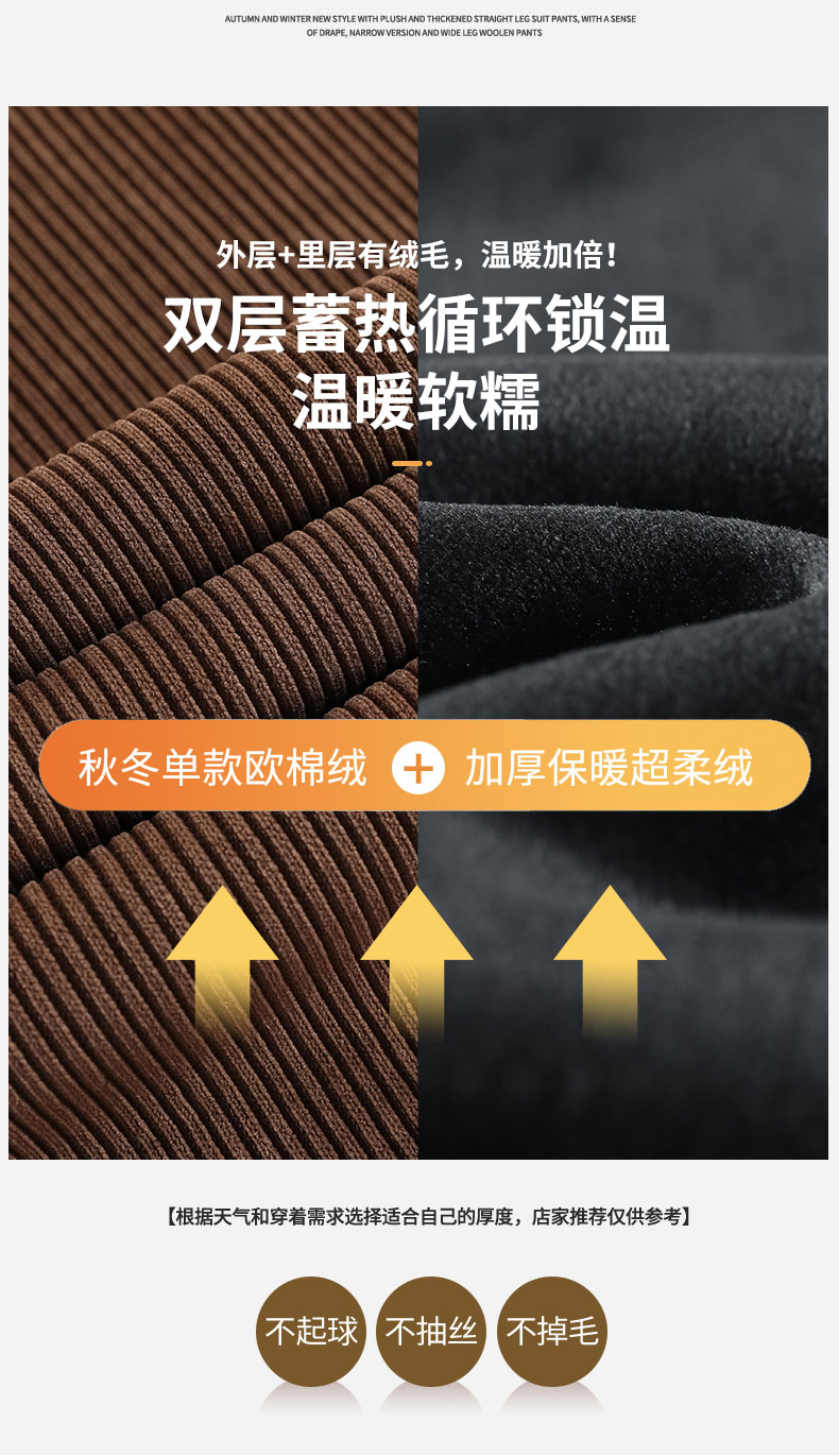La Chabel coffee wide-leg pants for women fall and winter Maillard narrow straight-leg pants with fleece drape corduroy pants