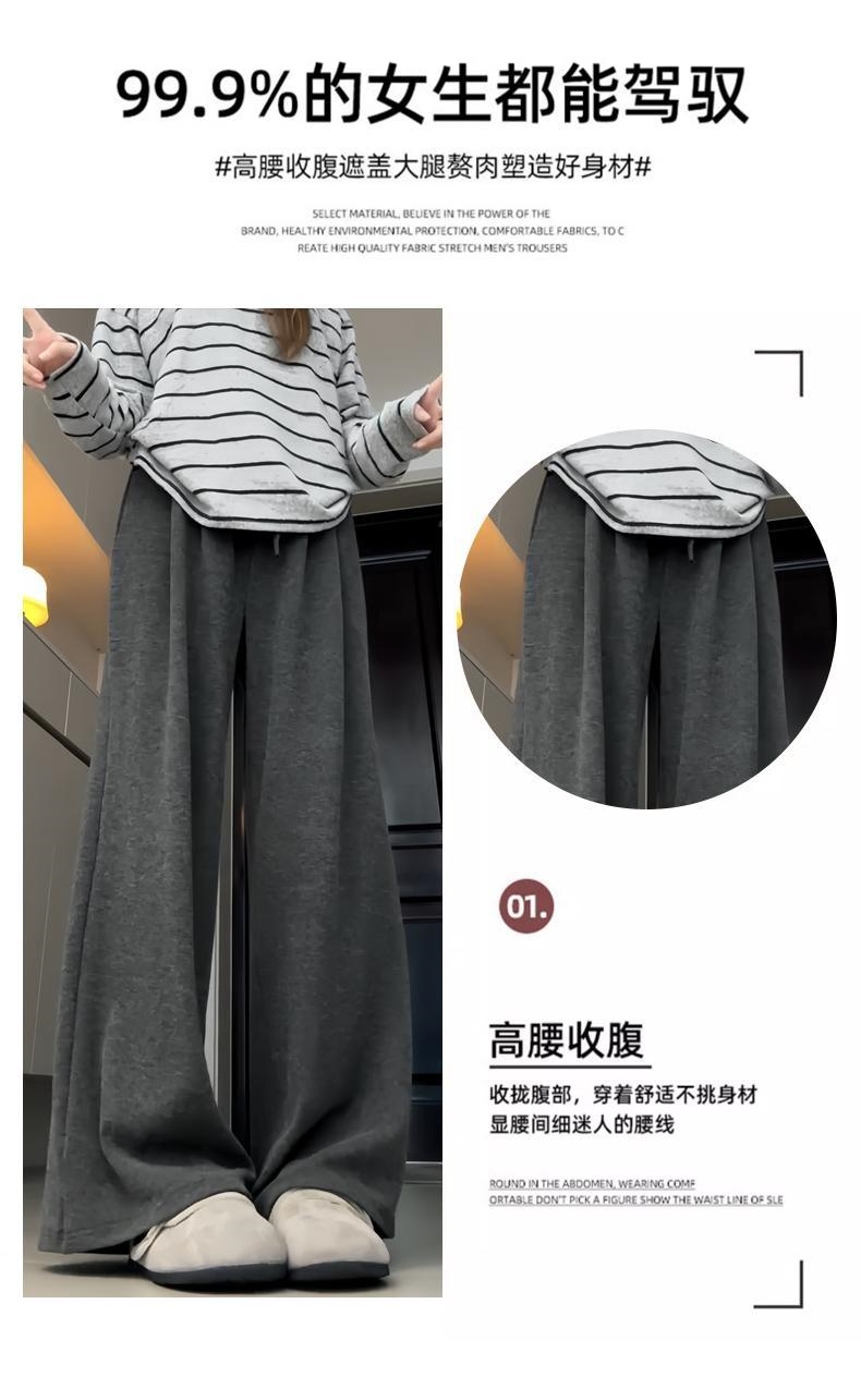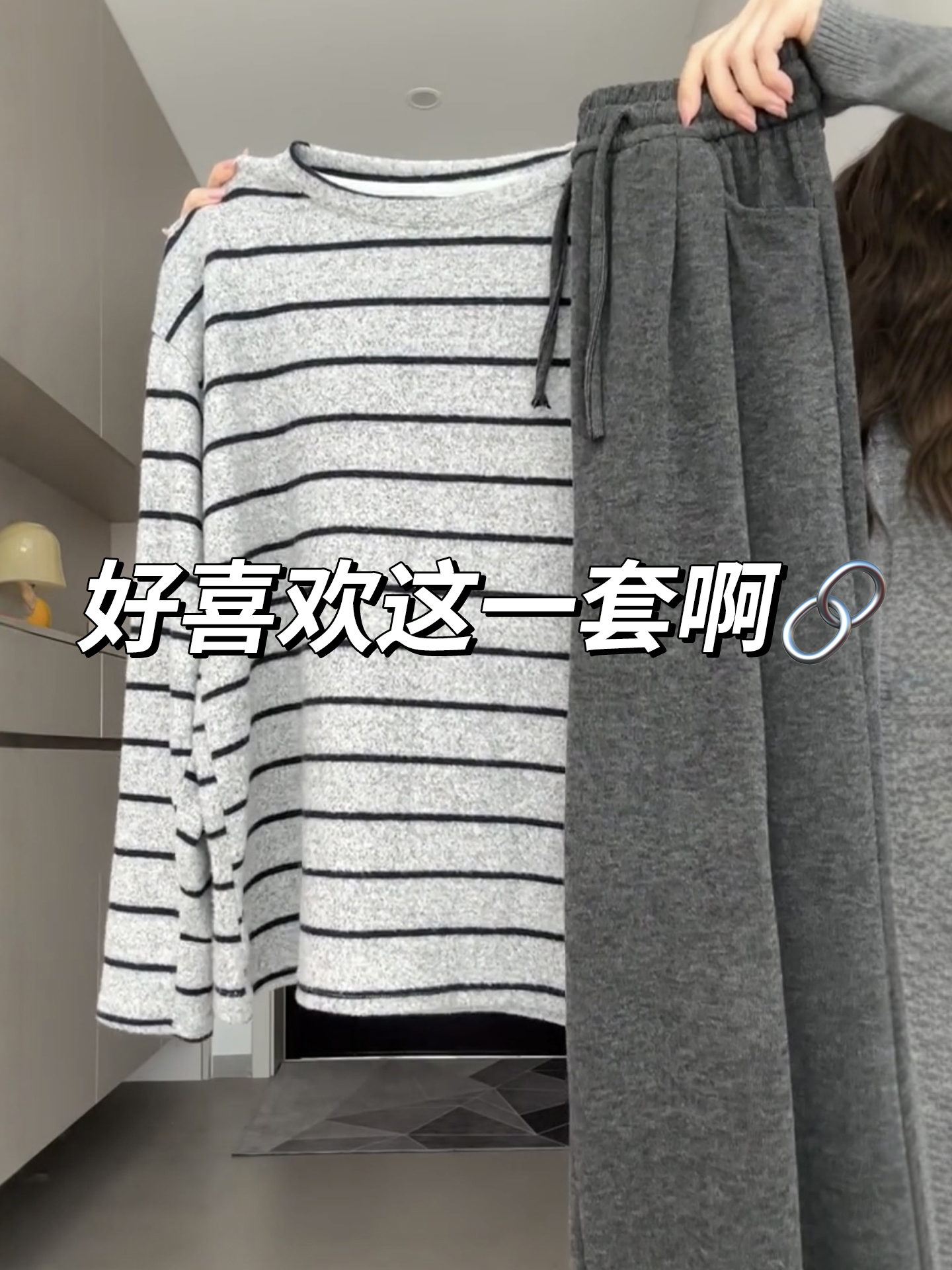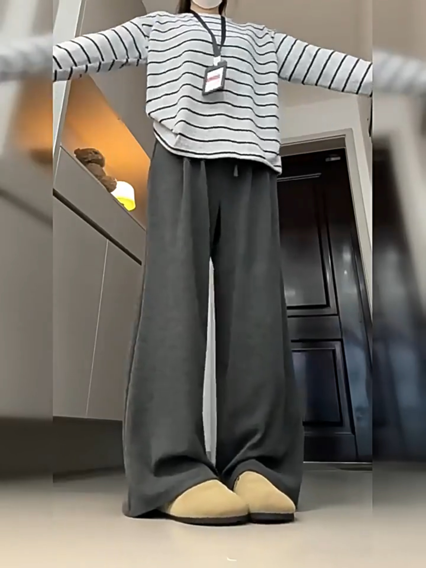 Korean set women's autumn and winter fleece 2025 new striped top loose slim wide-leg pants small women's clothing