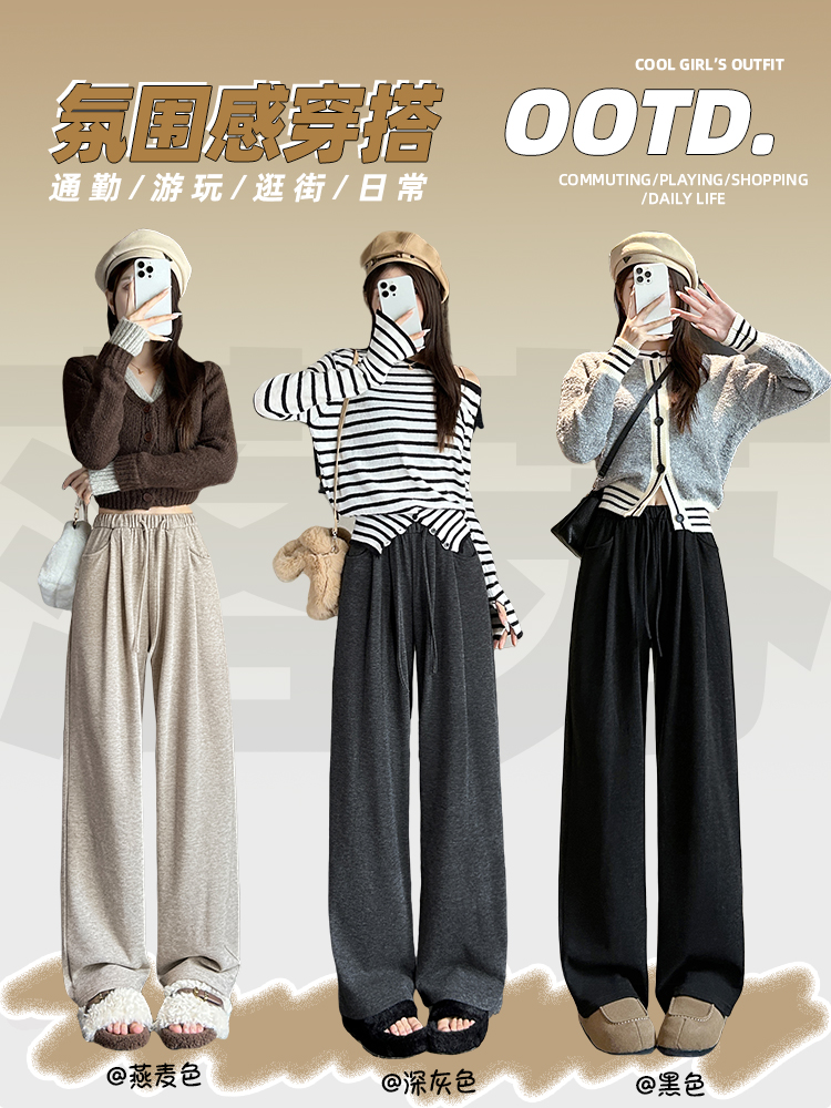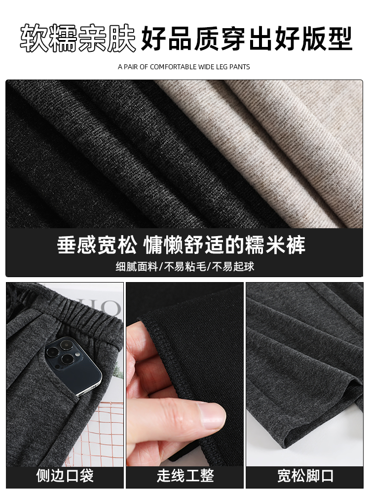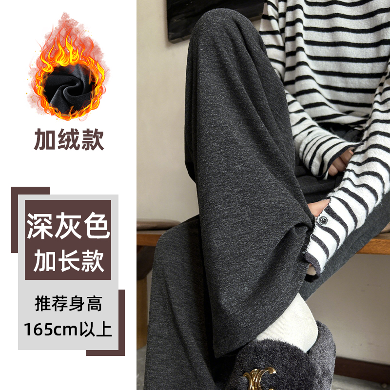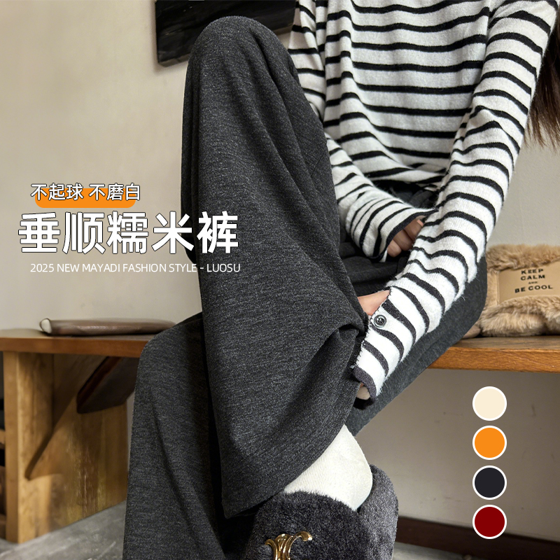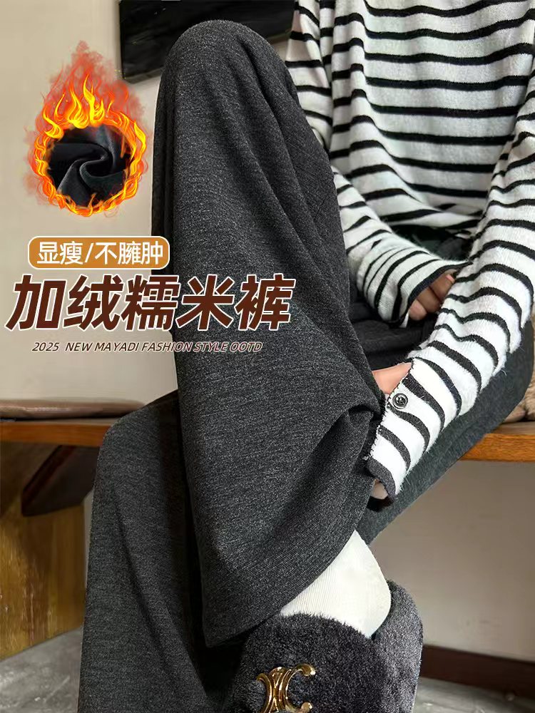 Narrow glutinous rice pants women's 2025 new autumn and winter casual straight small draped gray fleece wide-leg pants