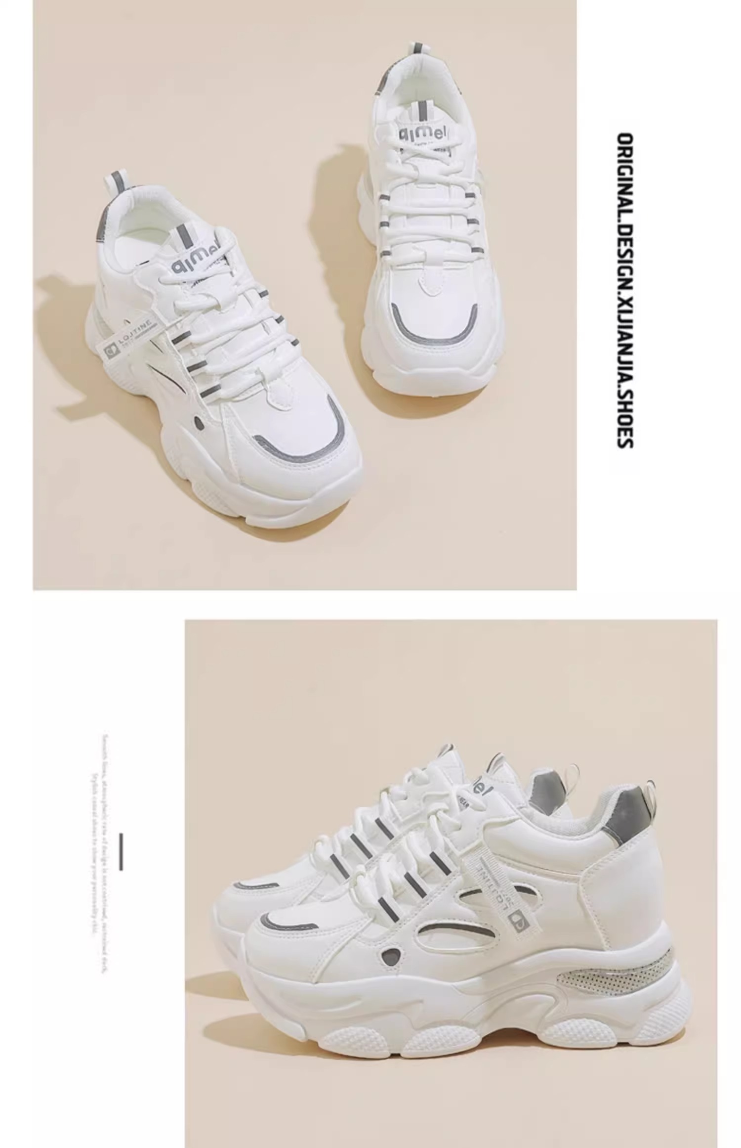 The brand withdraws leather thick-soled daddy shoes for women's 2025 autumn and winter explosive soft-soled small people to increase the height of casual sneakers
