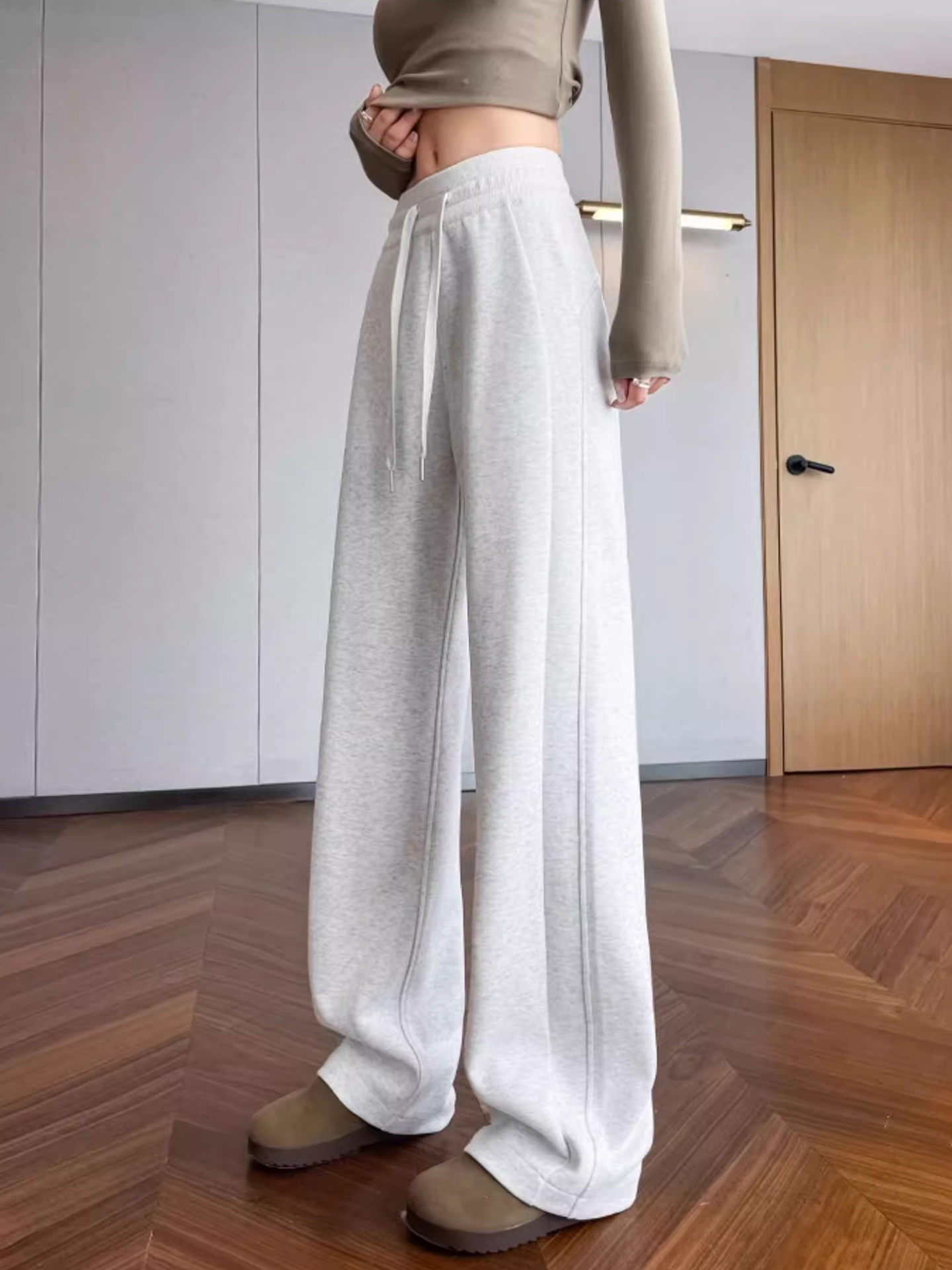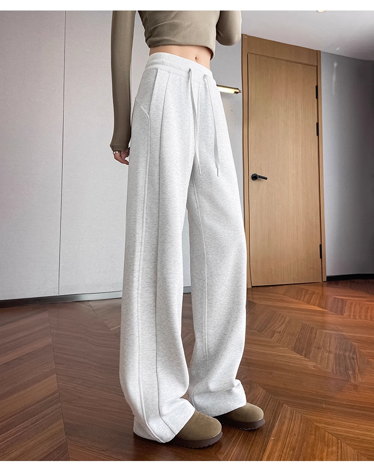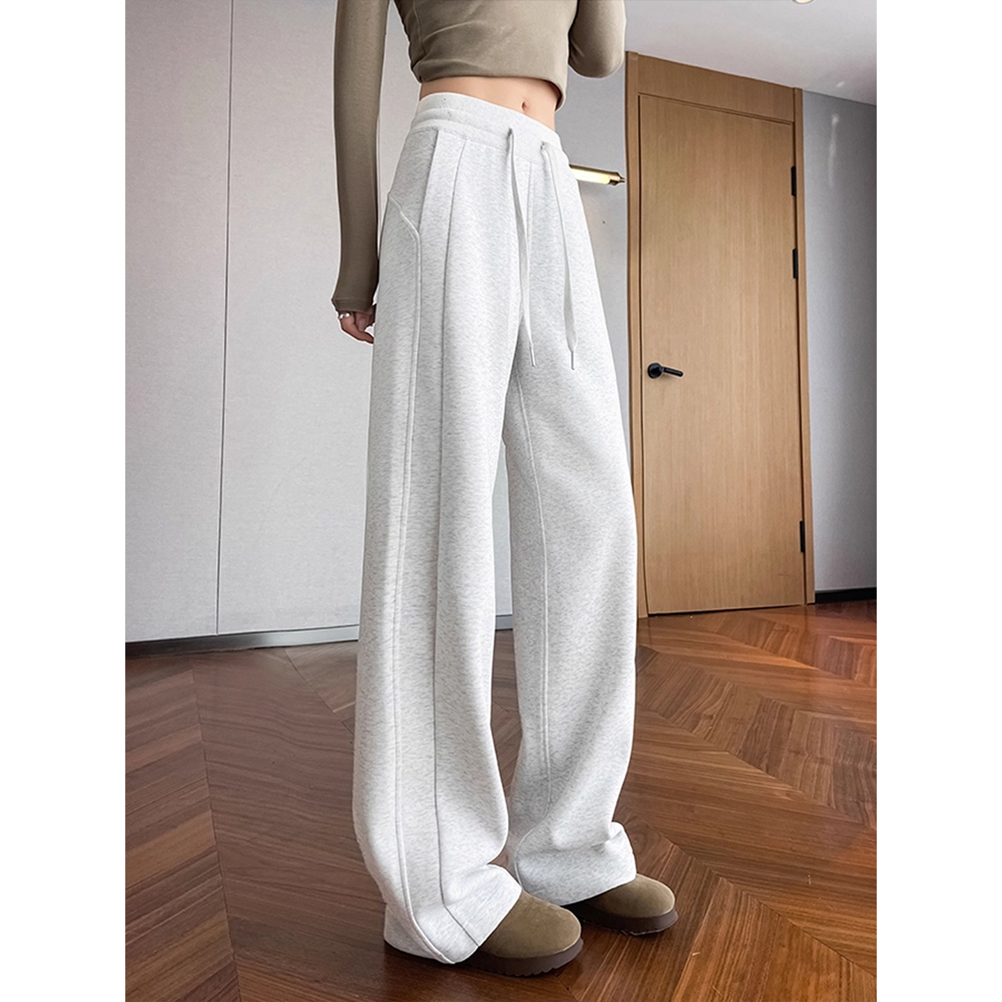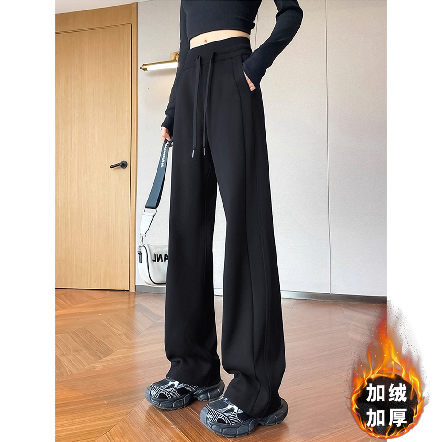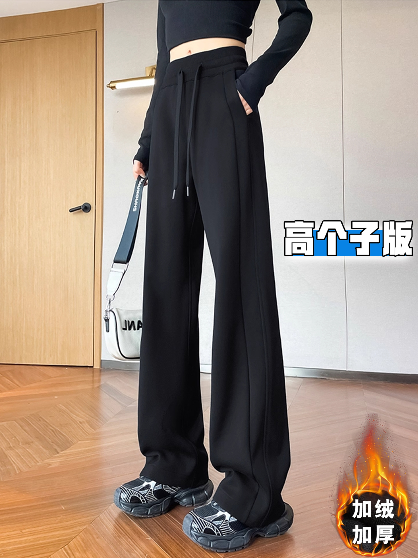 Tall elongated American sports straight-leg sweatpants for women in autumn and winter fleece thickened narrow casual floor-length wide-leg pants