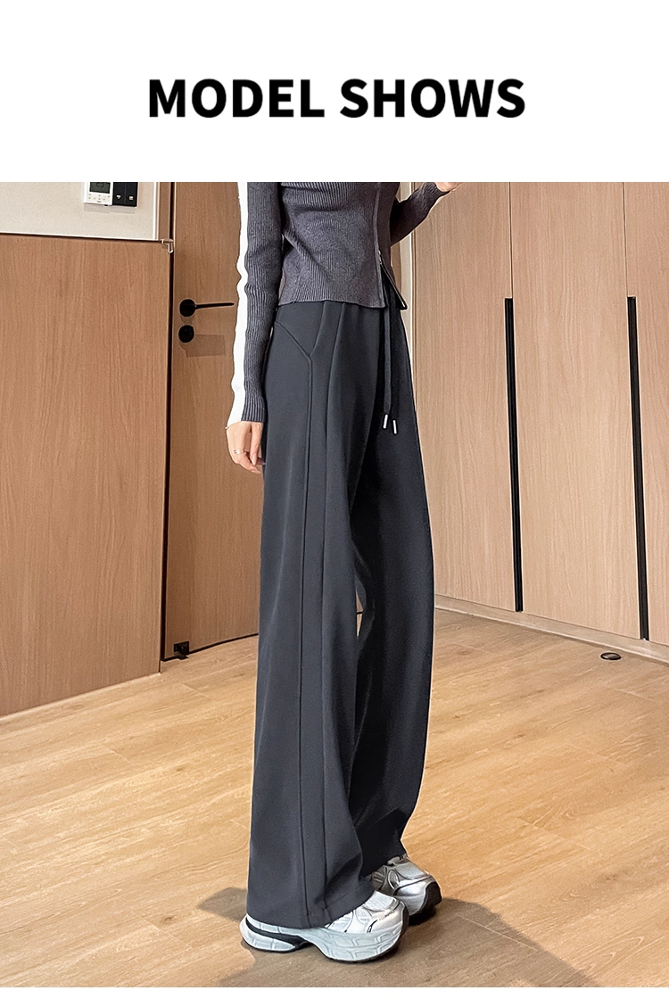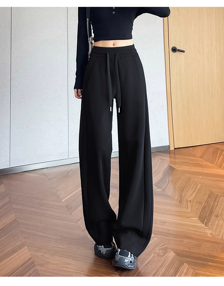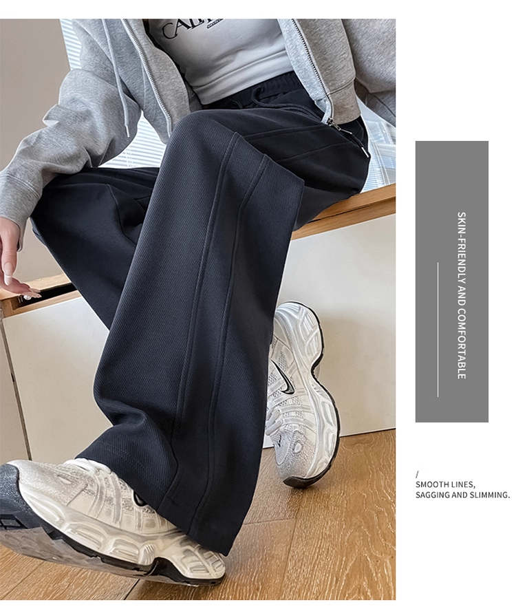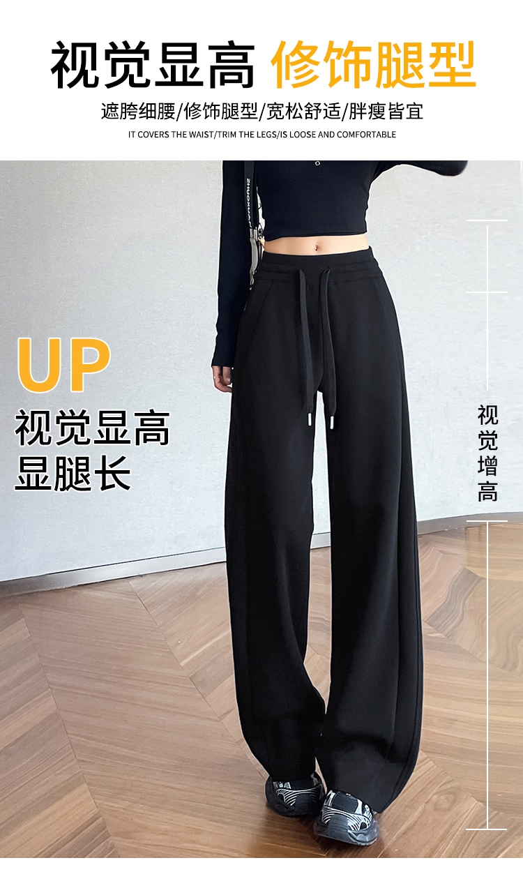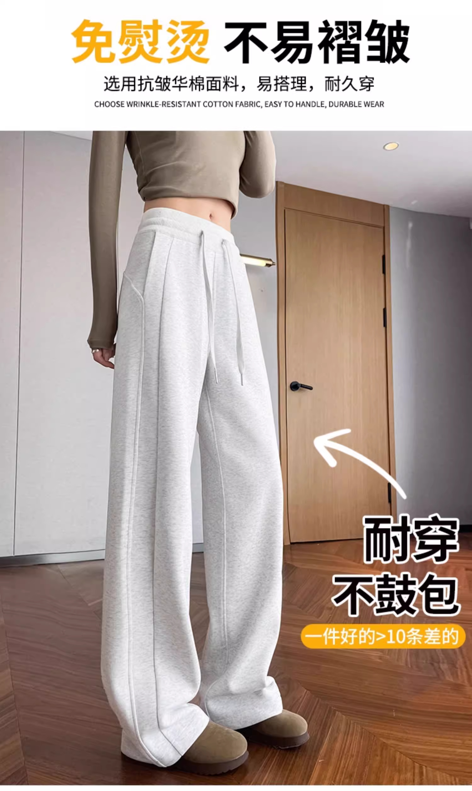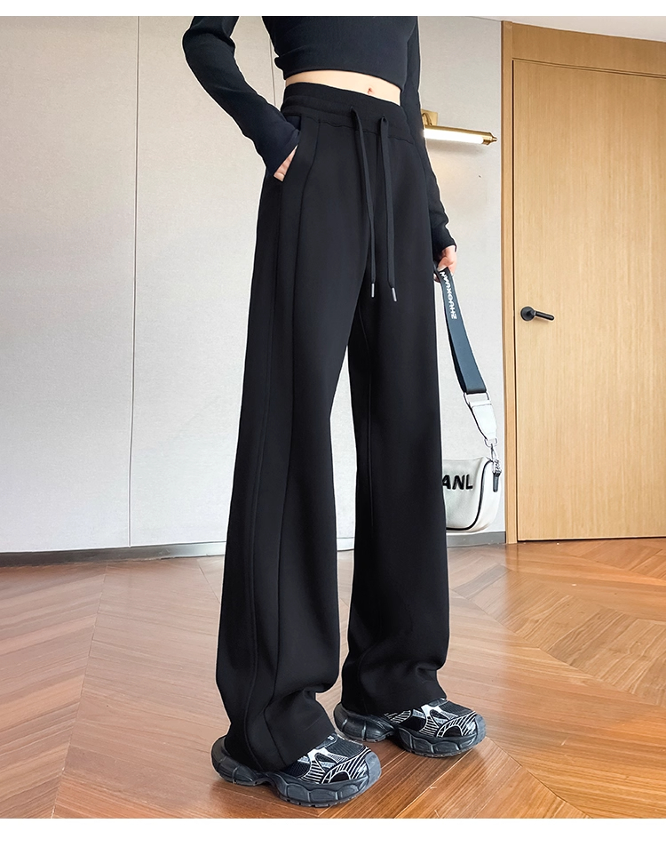 Tall elongated American sports straight-leg sweatpants for women in autumn and winter fleece thickened narrow casual floor-length wide-leg pants