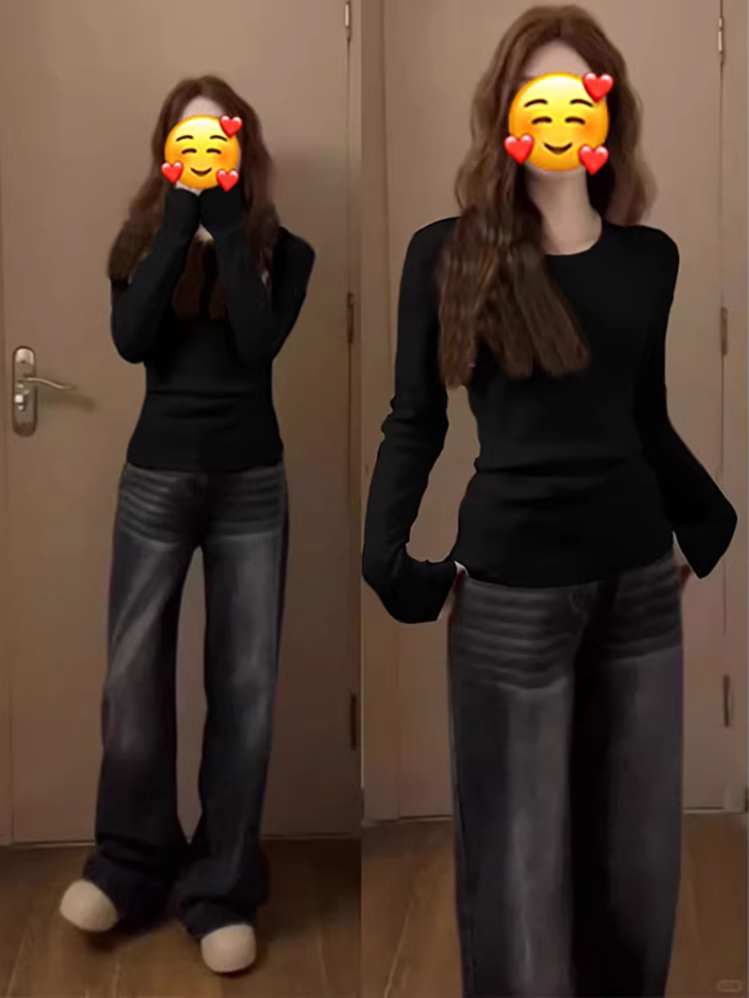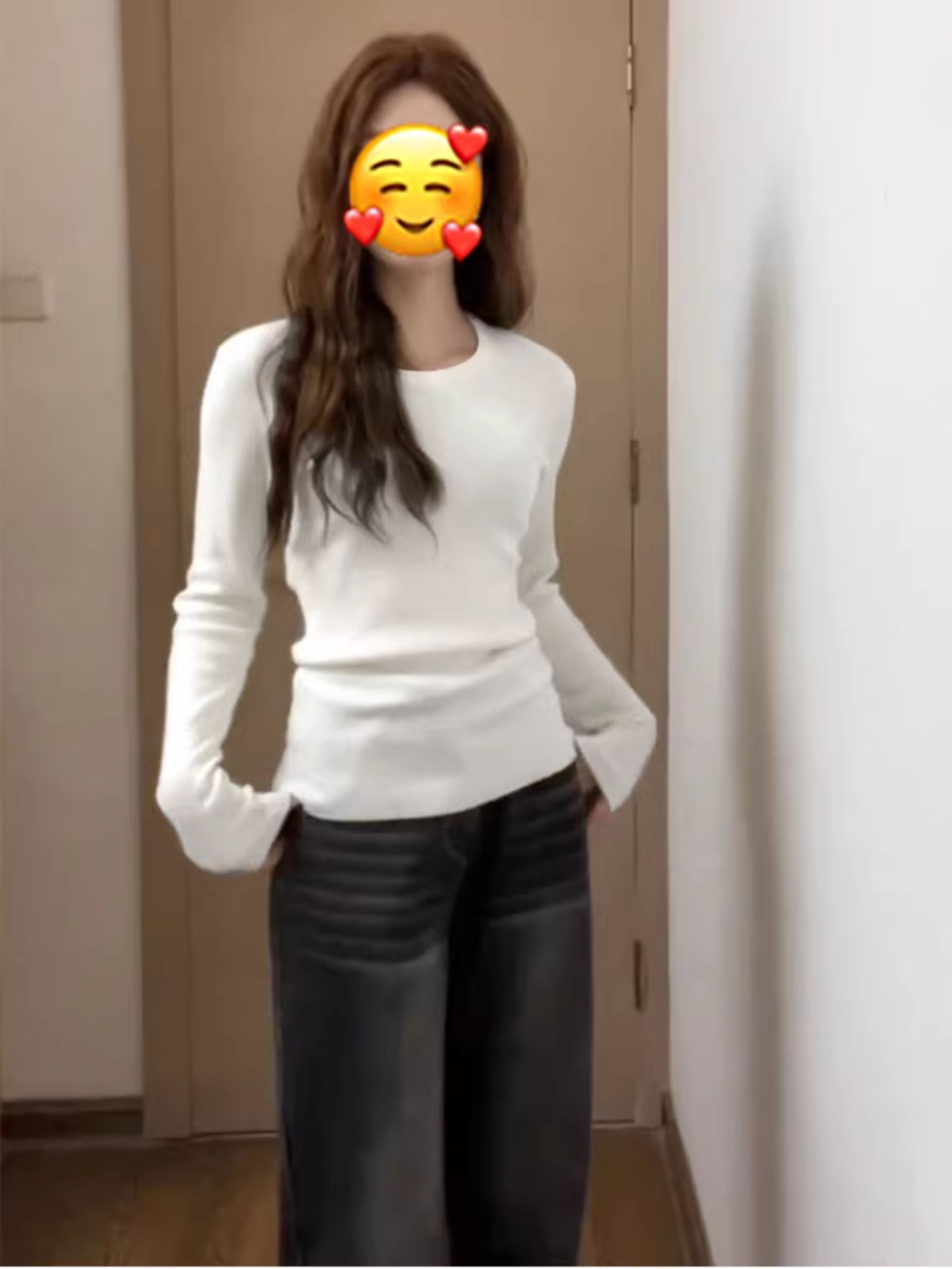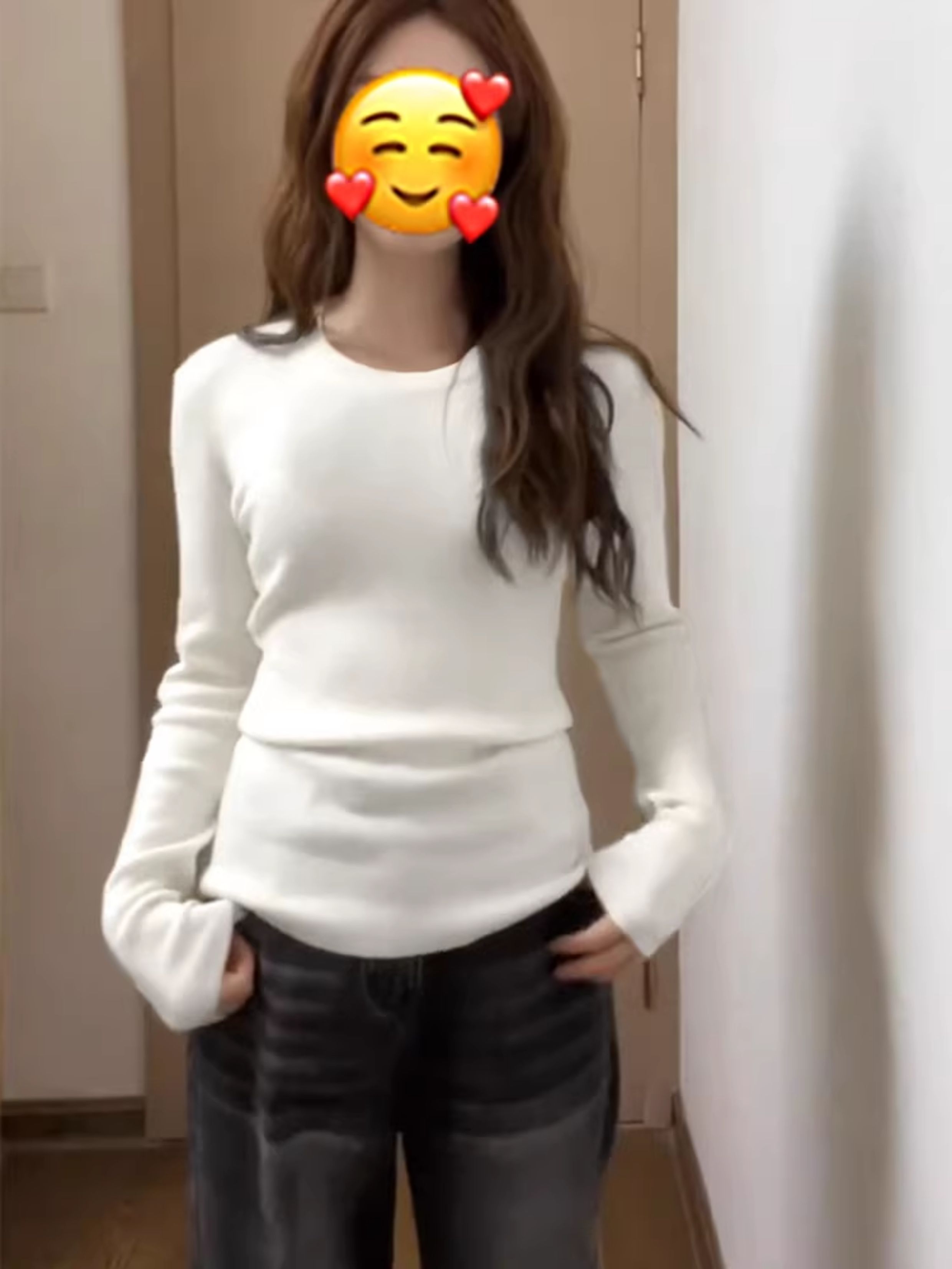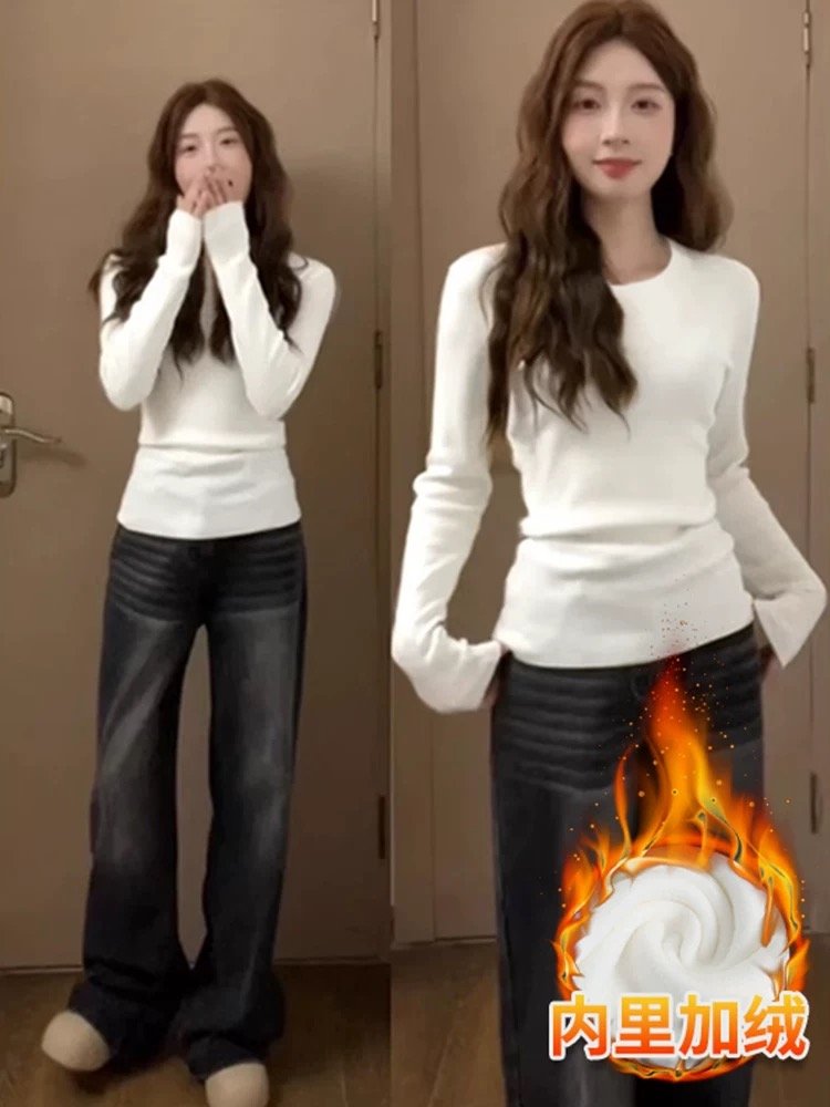 White fleece inner base shirt long-sleeved T-shirt women can wear a round neck slim slim shoulder top in spring and autumn