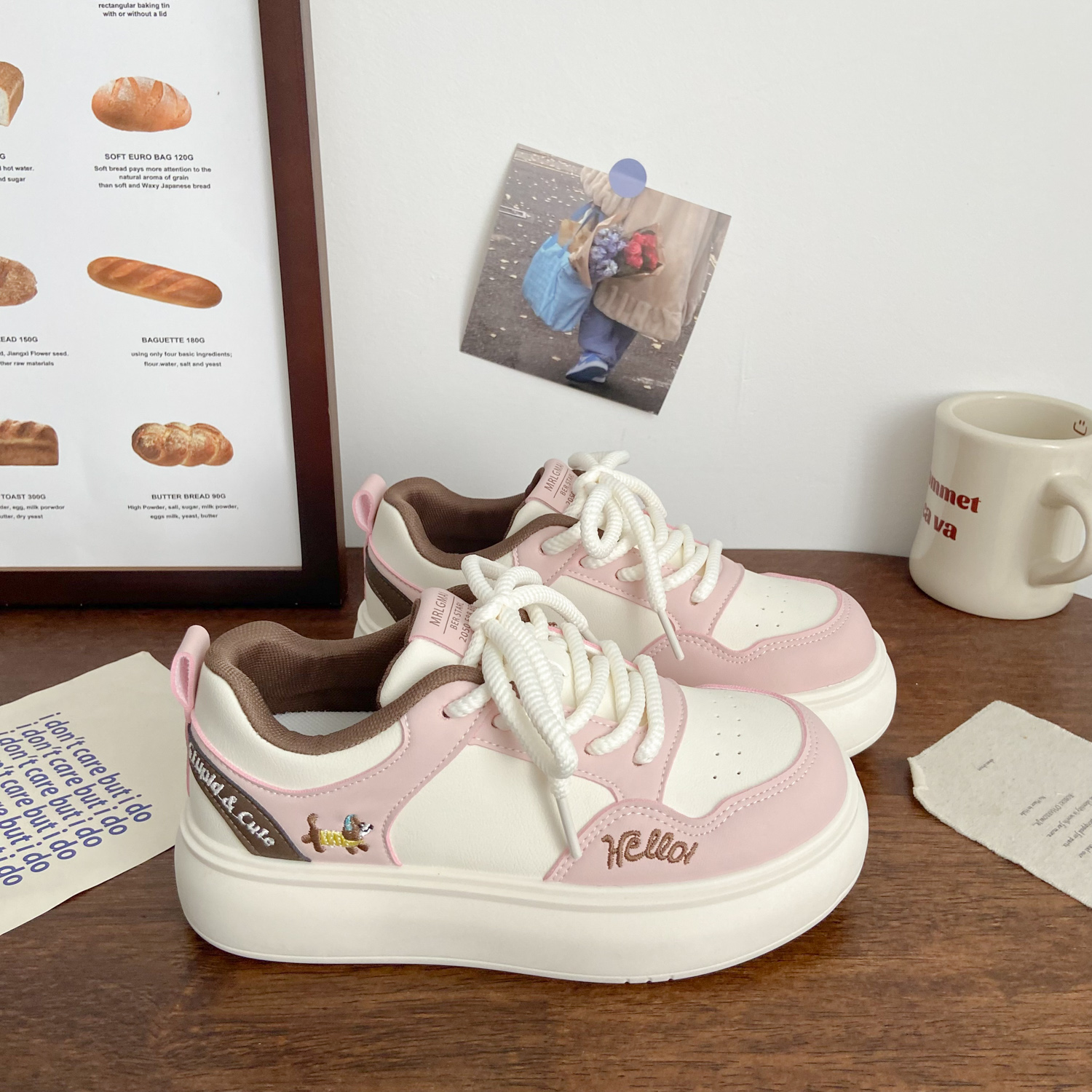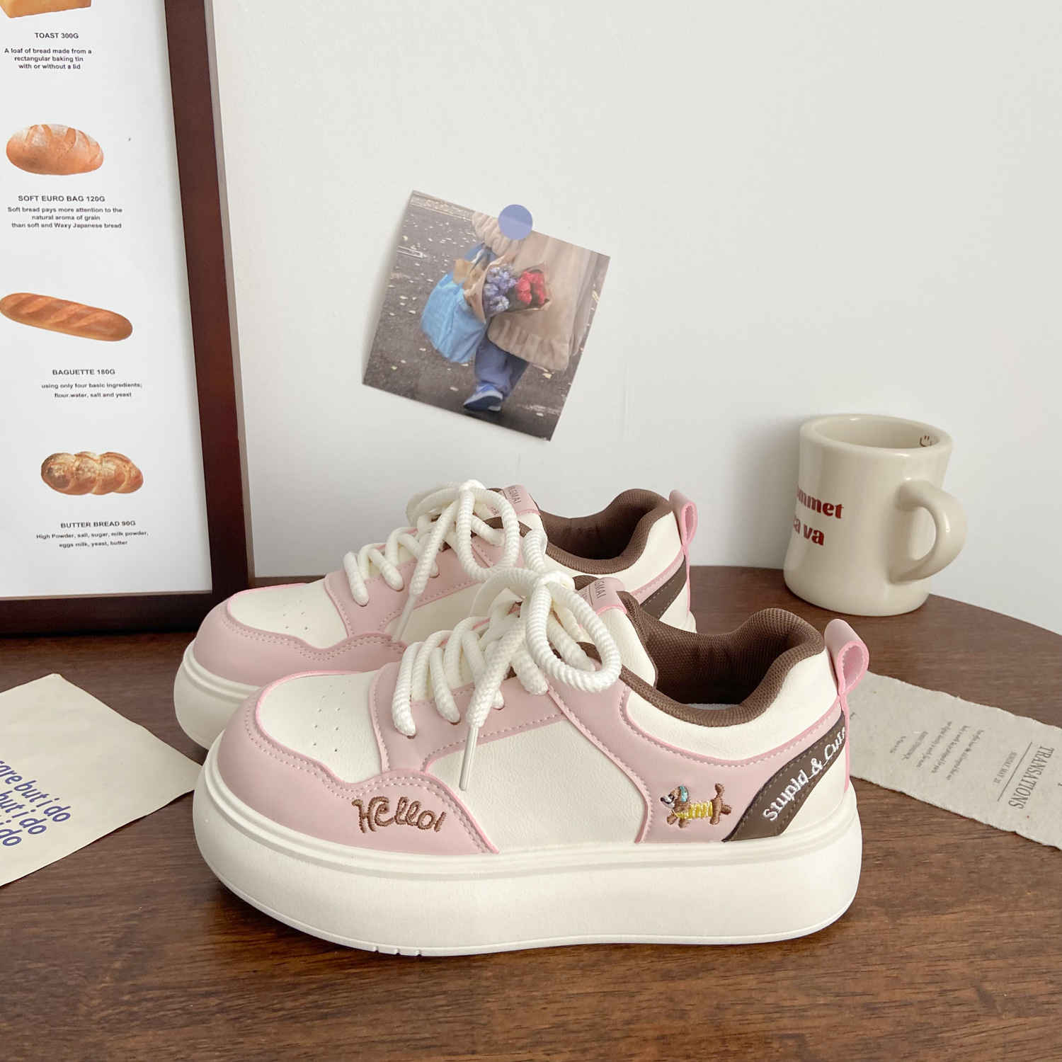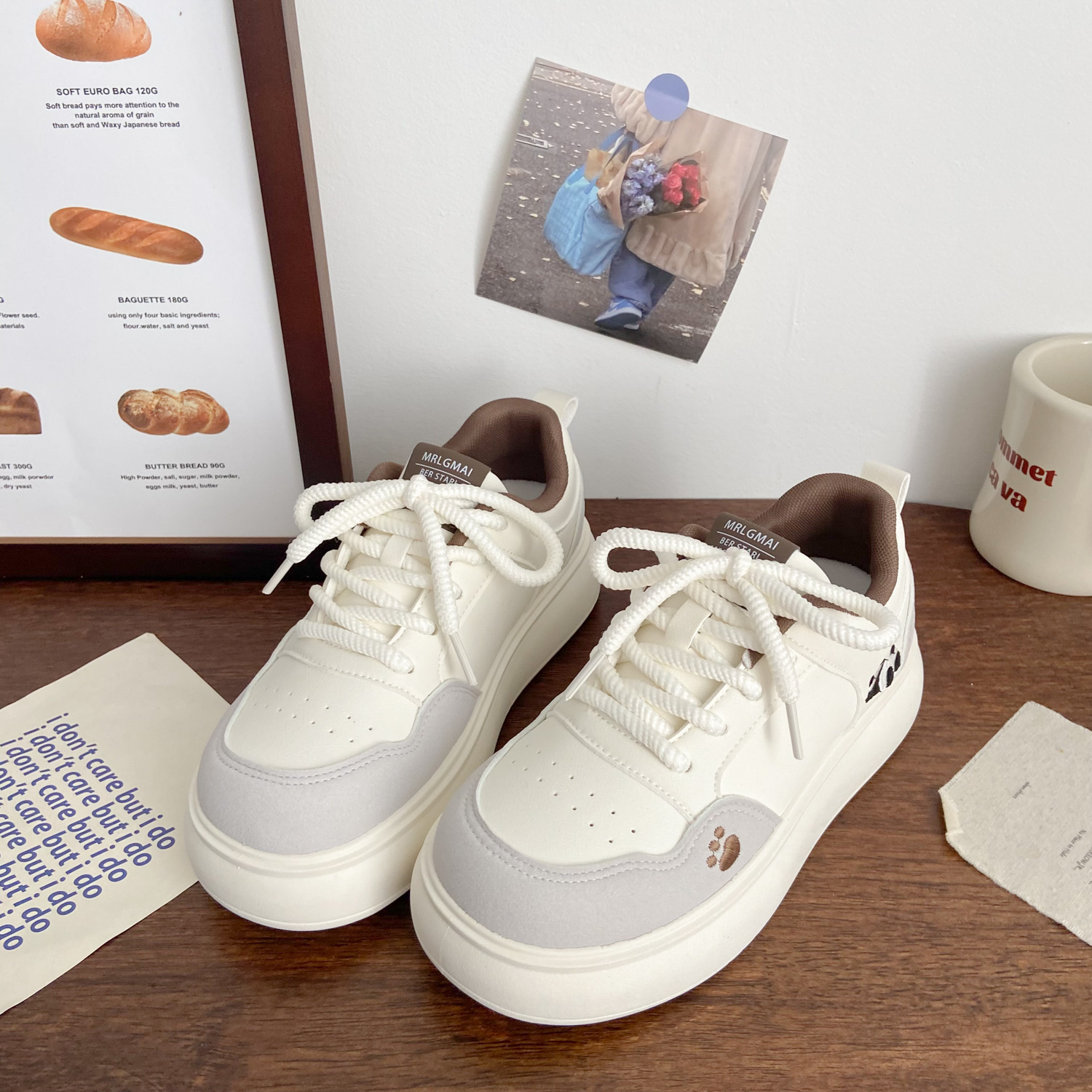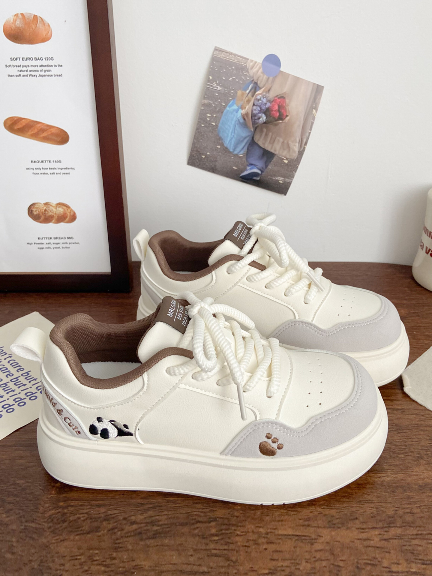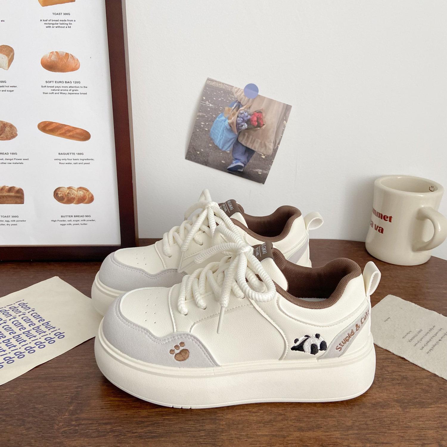 Thick-soled versatile white shoes women's 2025 autumn and winter new CIC niche panda embroidery student sports and leisure board shoes