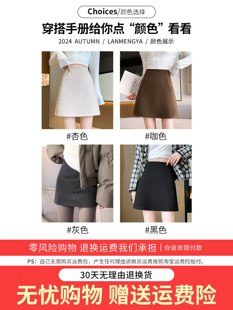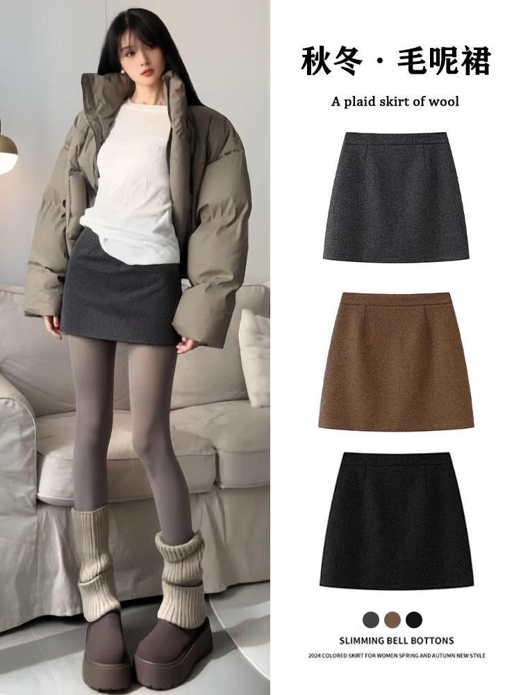 Gray woolen skirt women's spring and autumn 2025 new high-waisted thin small man thickened a-line hip skirt