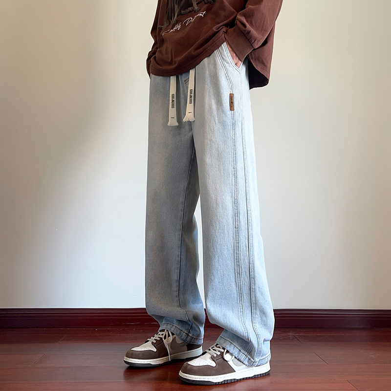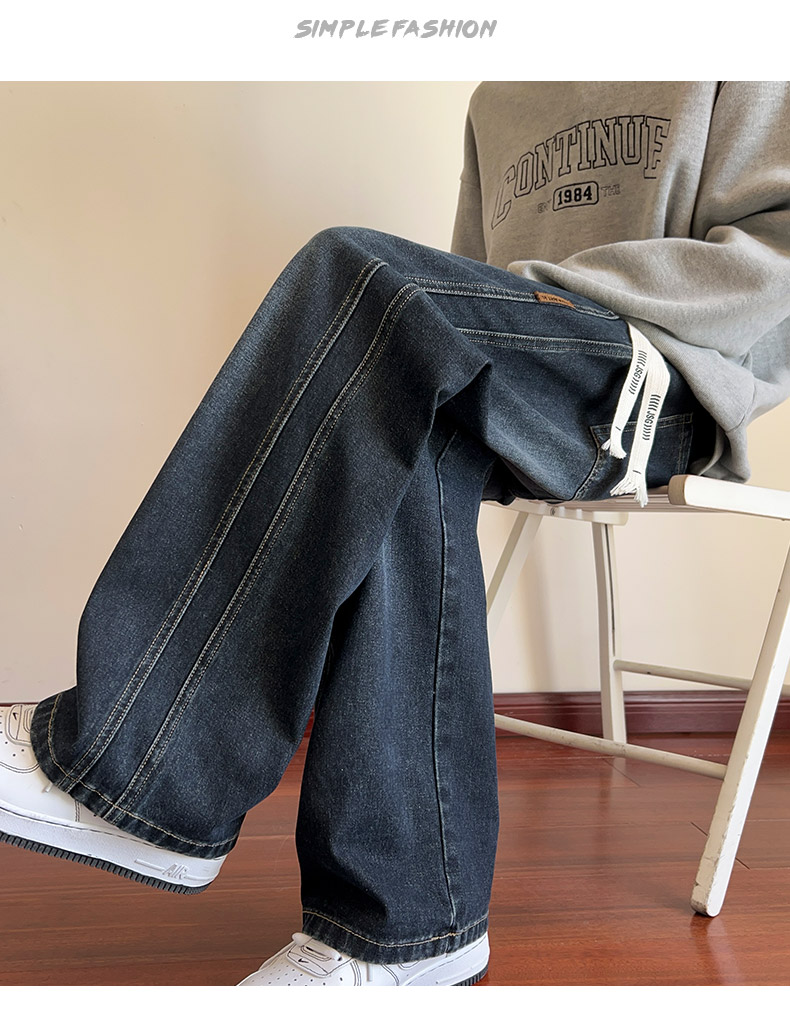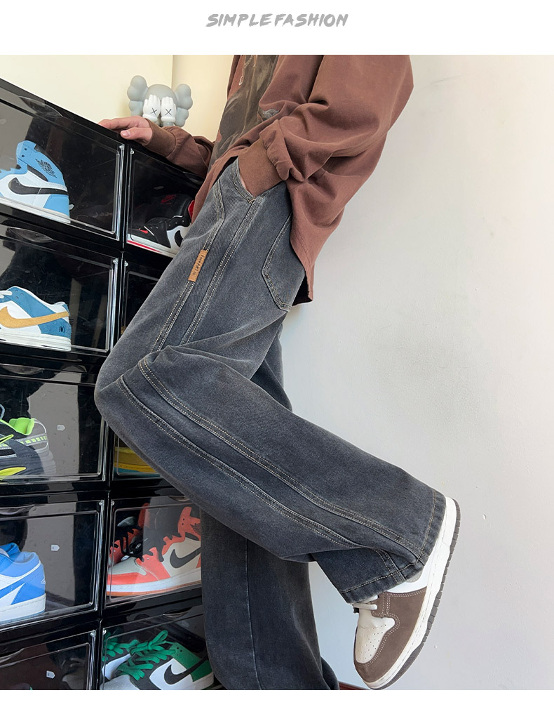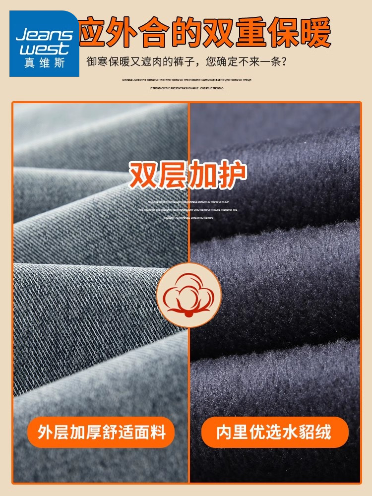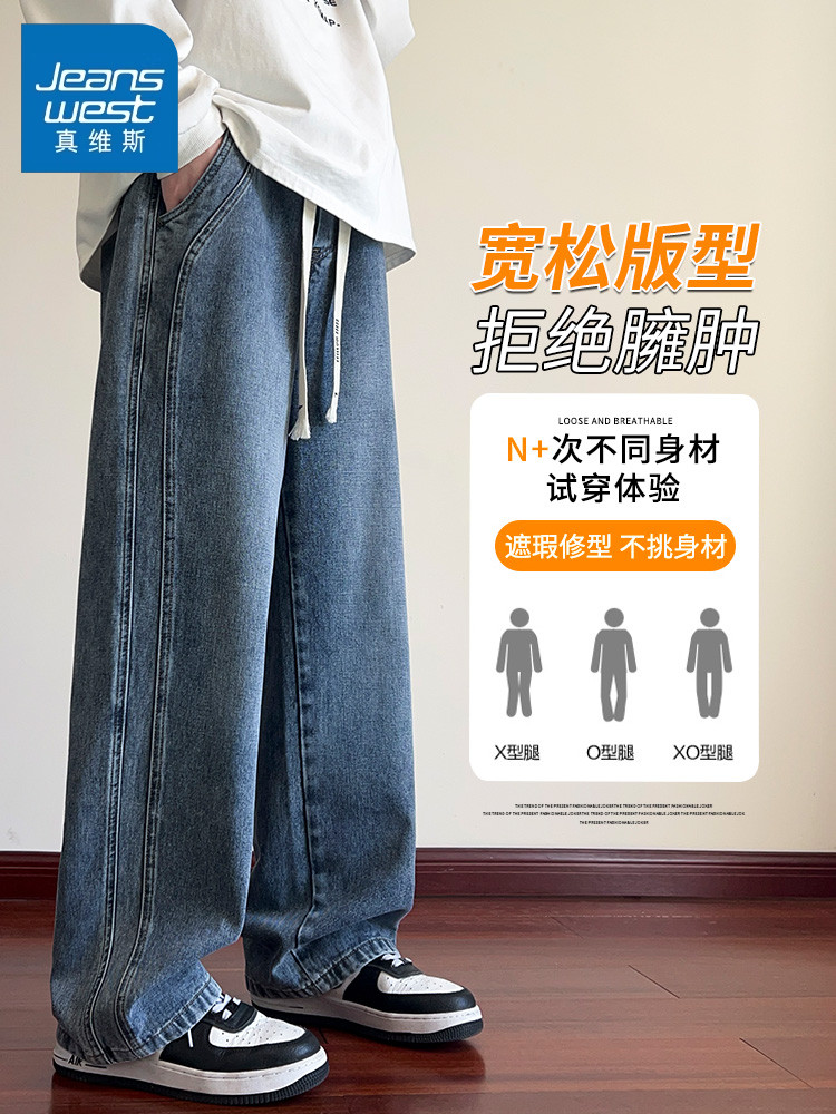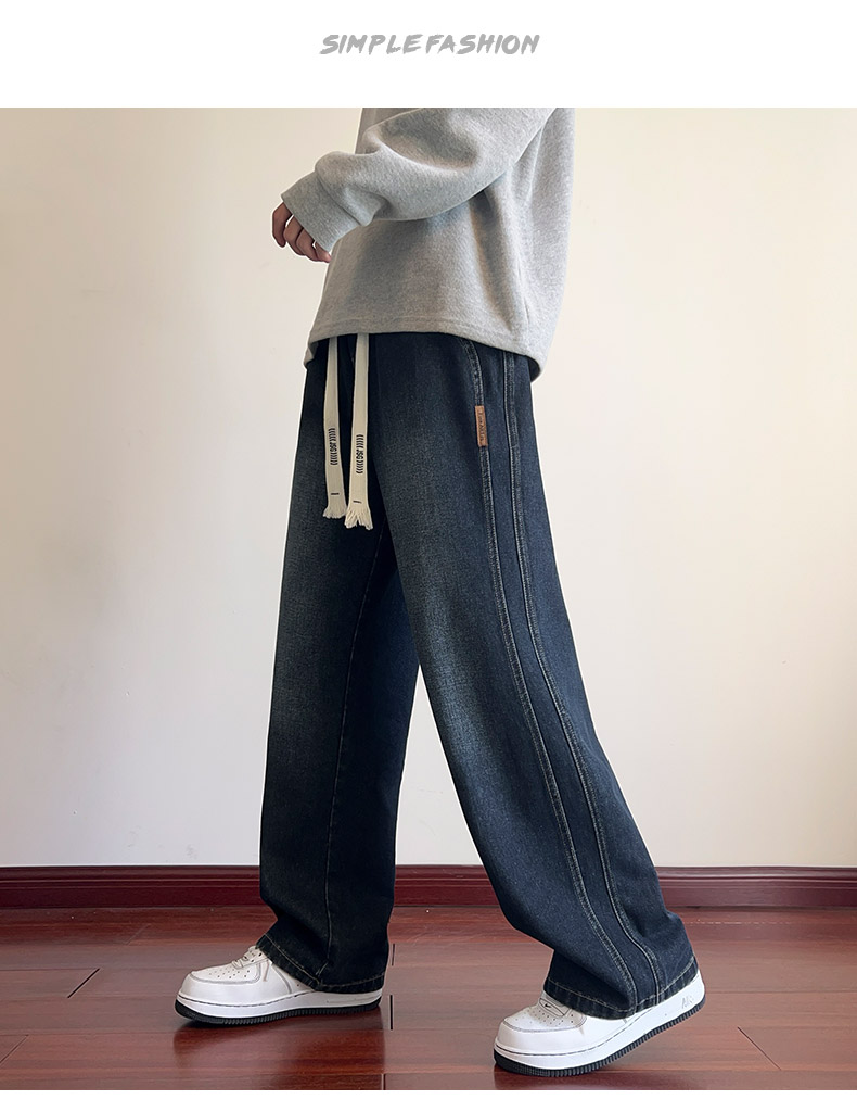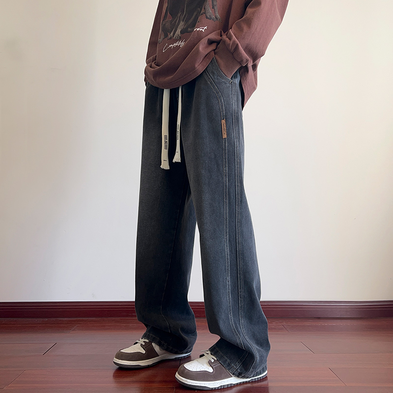 True Vista fleece thickened jeans for men 2025 autumn and winter new loose straight trendy brand wide-leg pants for boys