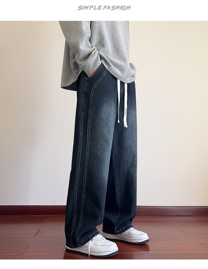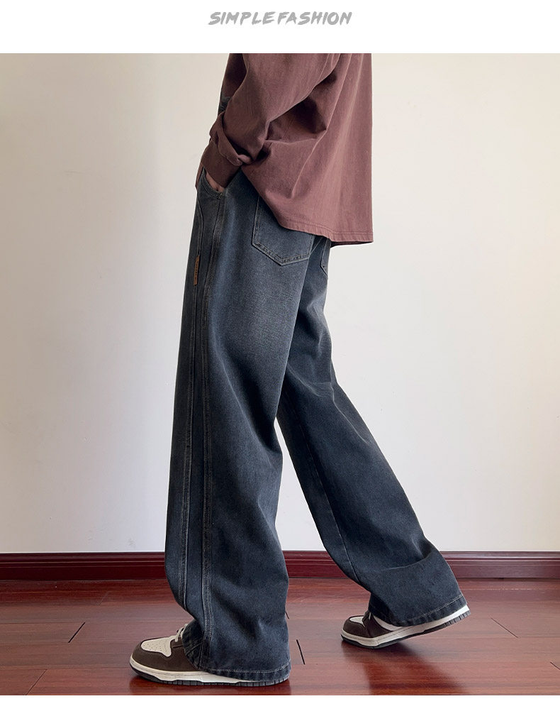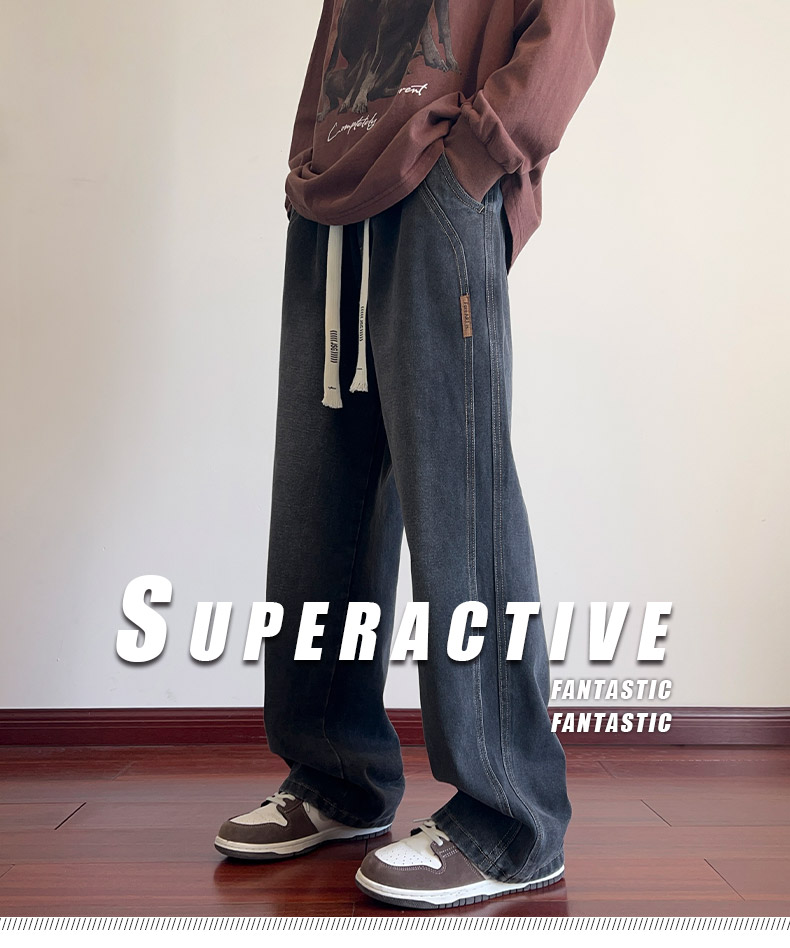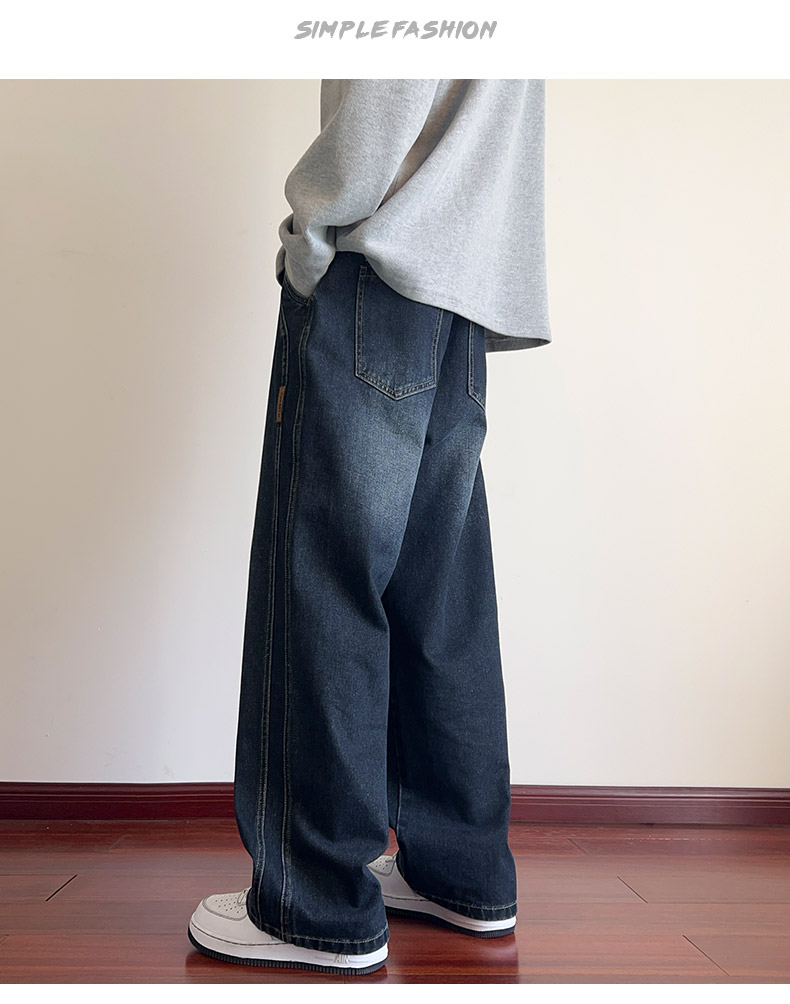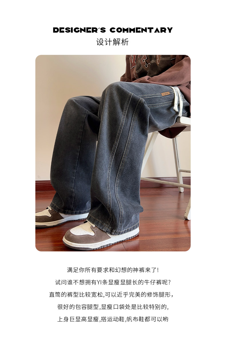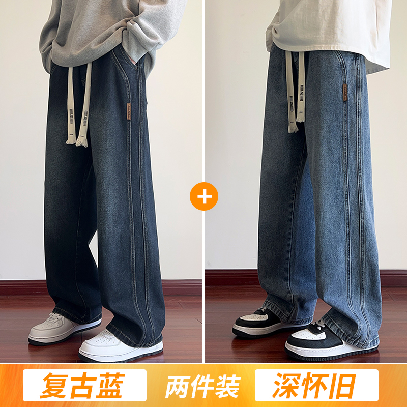 True Vista fleece thickened jeans for men 2025 autumn and winter new loose straight trendy brand wide-leg pants for boys