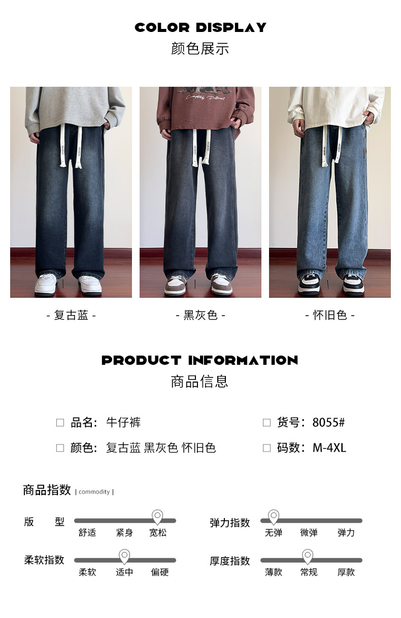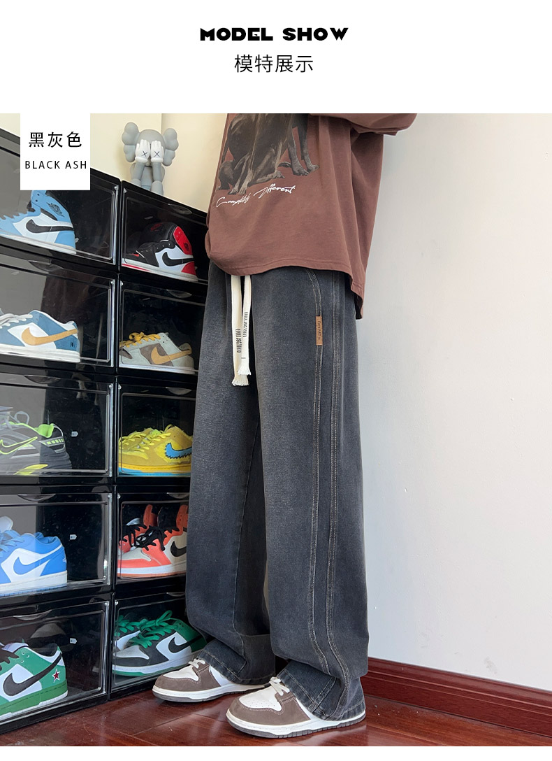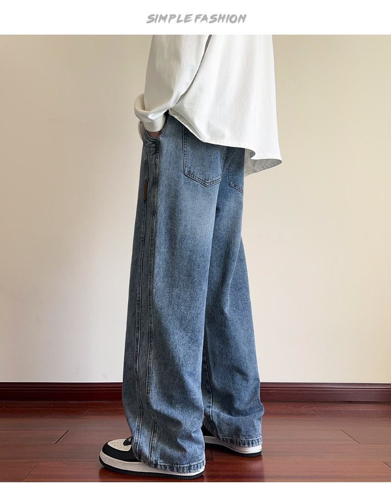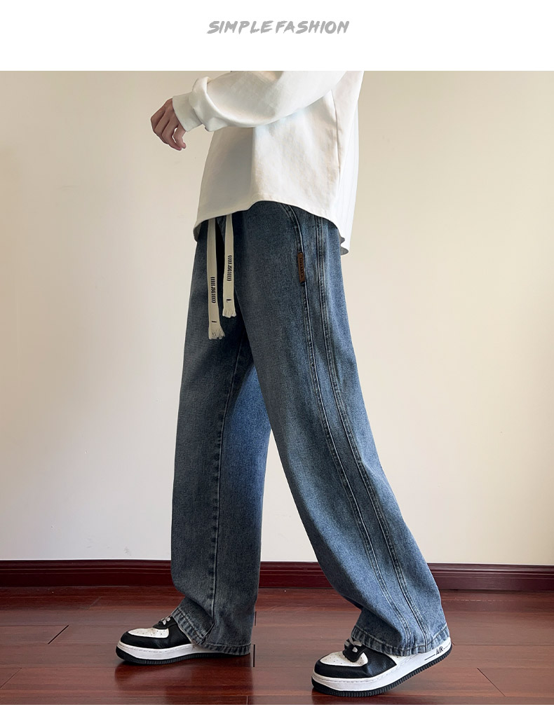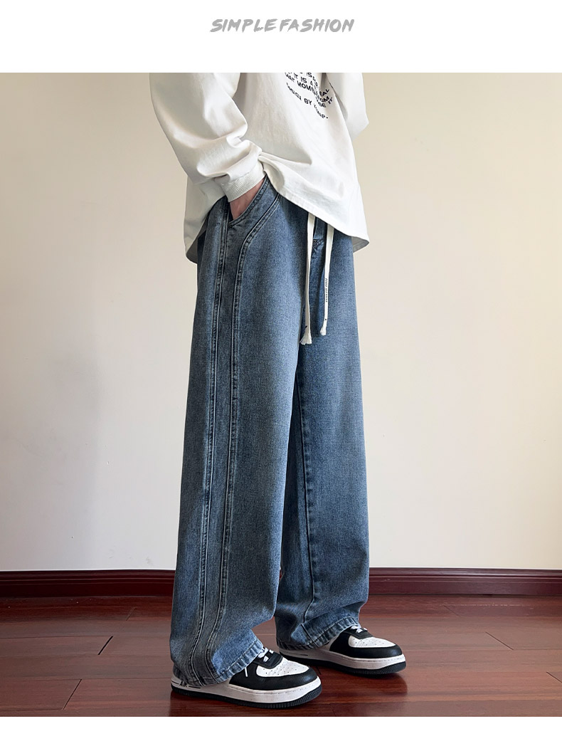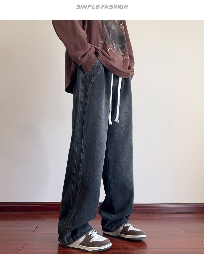 True Vista fleece thickened jeans for men 2025 autumn and winter new loose straight trendy brand wide-leg pants for boys