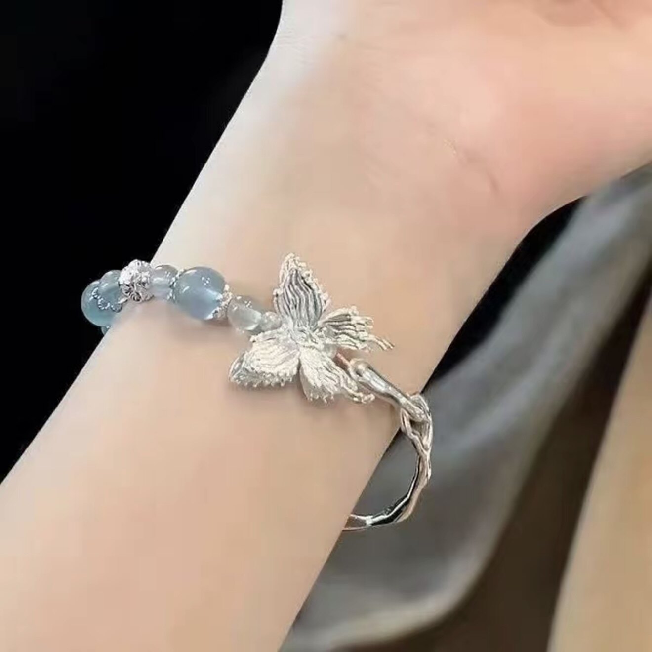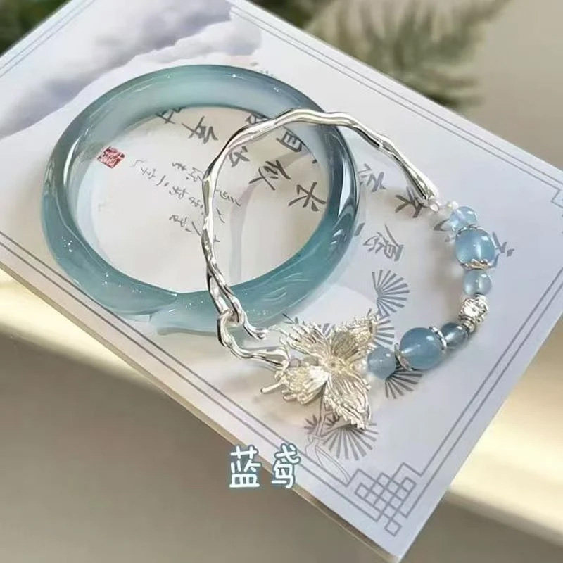 New Chinese Tushan fox bracelet stacked with butterfly bracelet retro cool sense is versatile, super white antique style hand jewelry