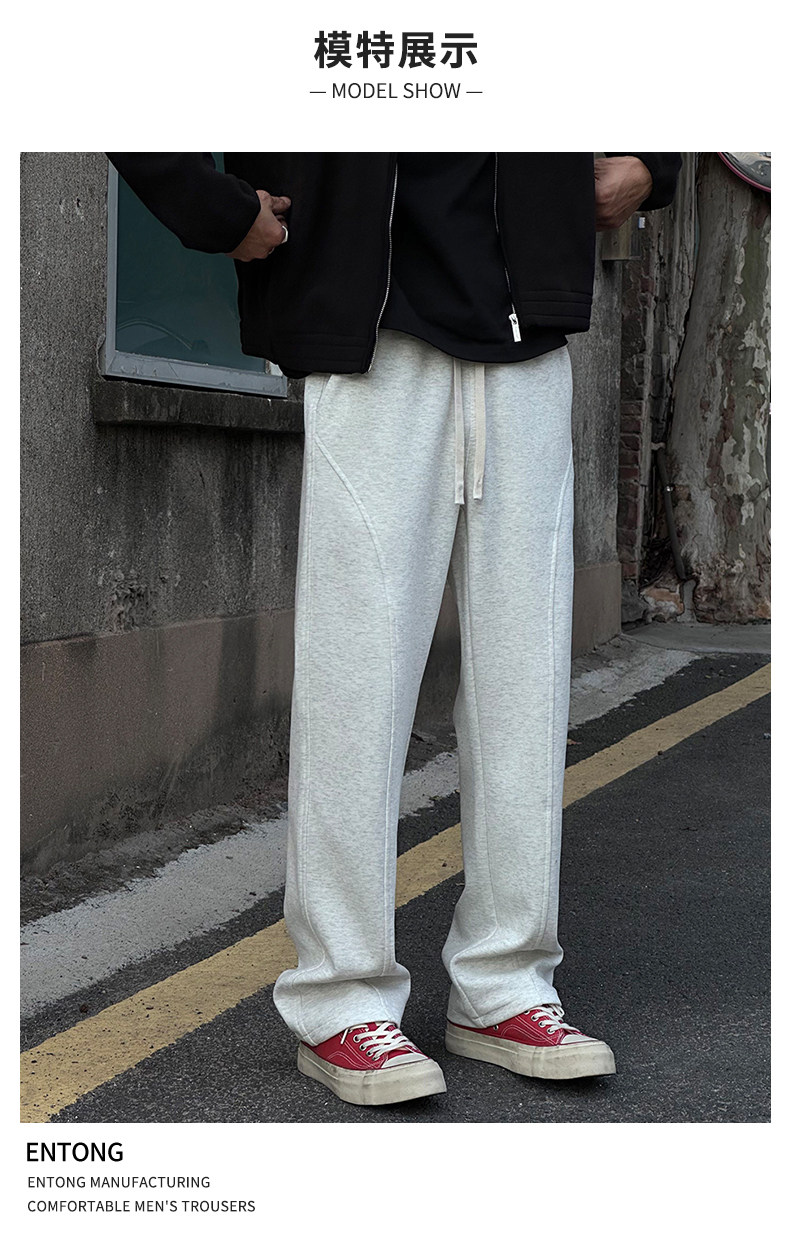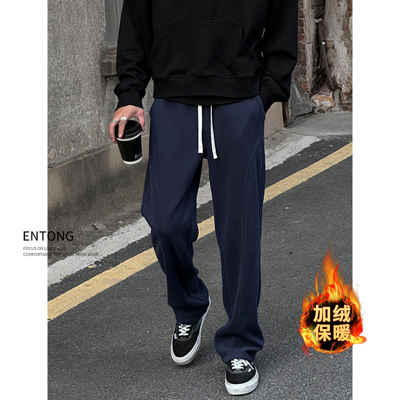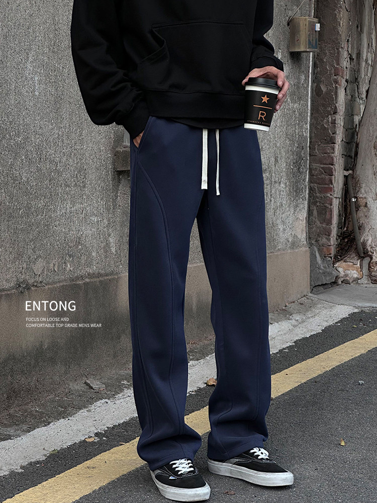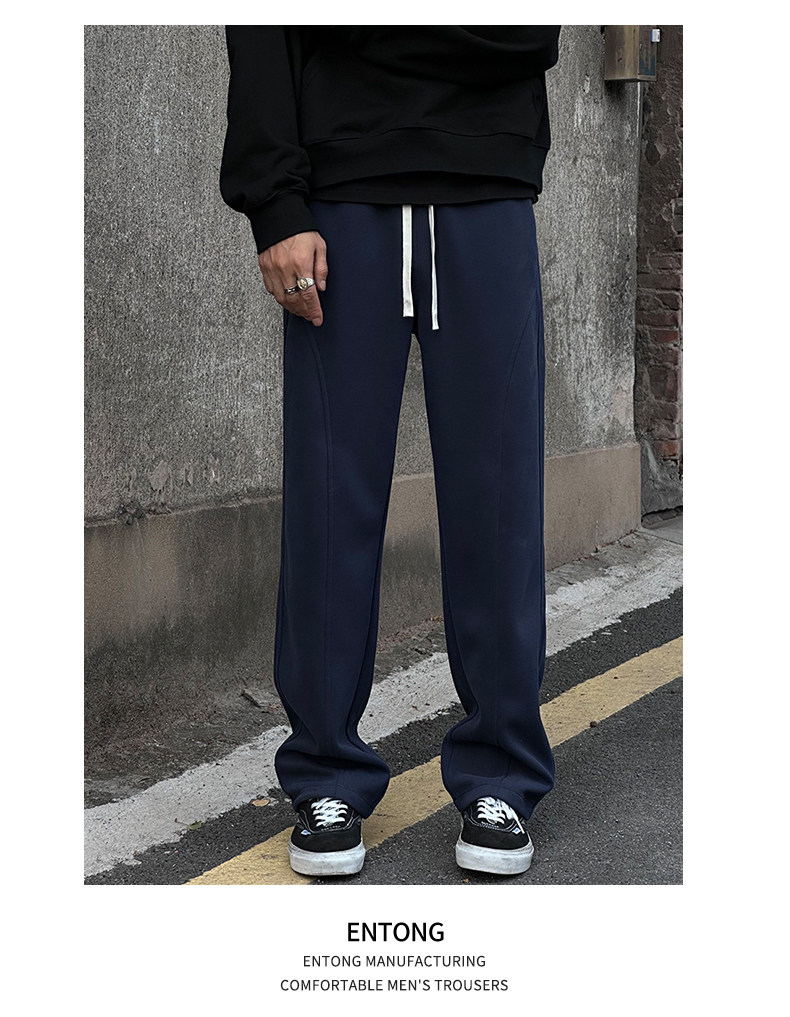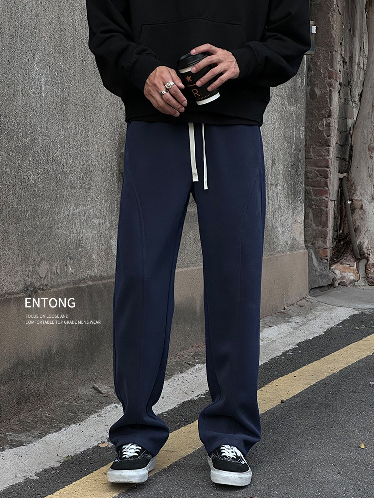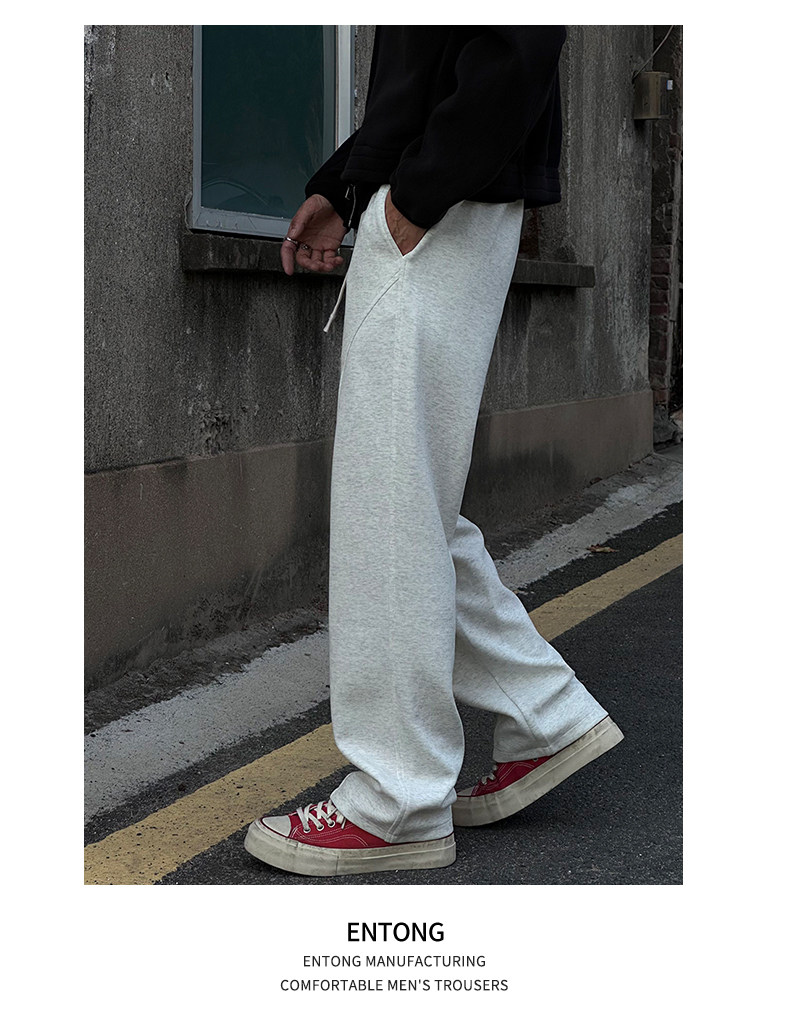 Entong American trendy bias knit sweatpants boys' pants loose and versatile drawstring sweatpants casual trousers