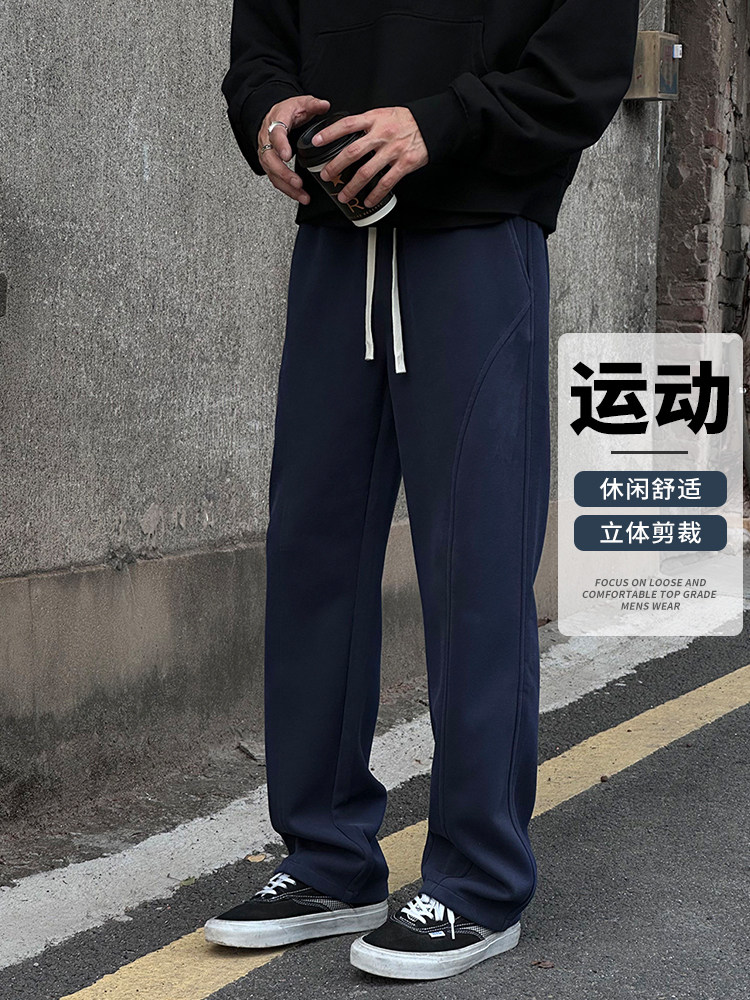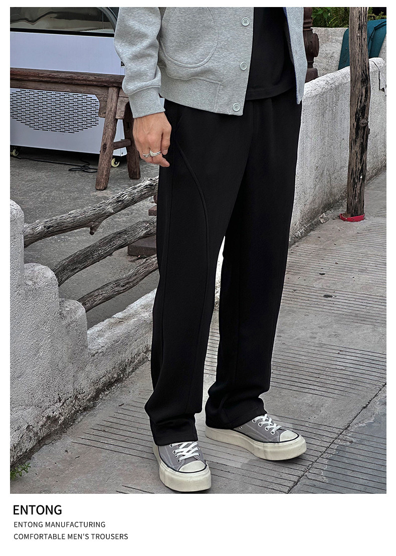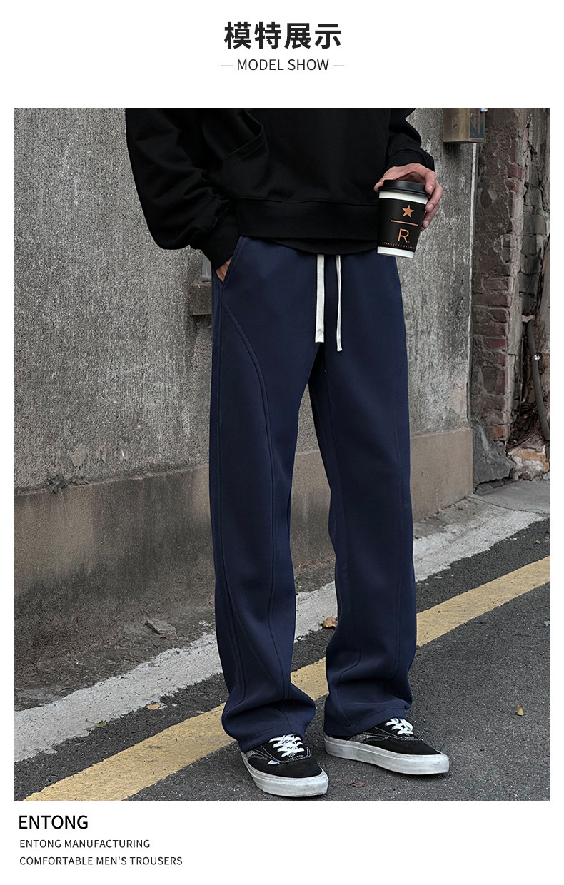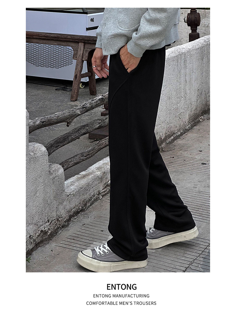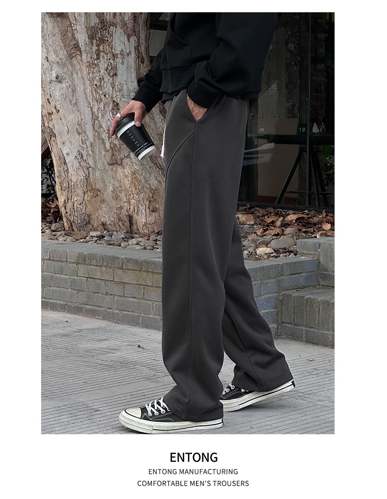 Entong American trendy bias knit sweatpants boys' pants loose and versatile drawstring sweatpants casual trousers